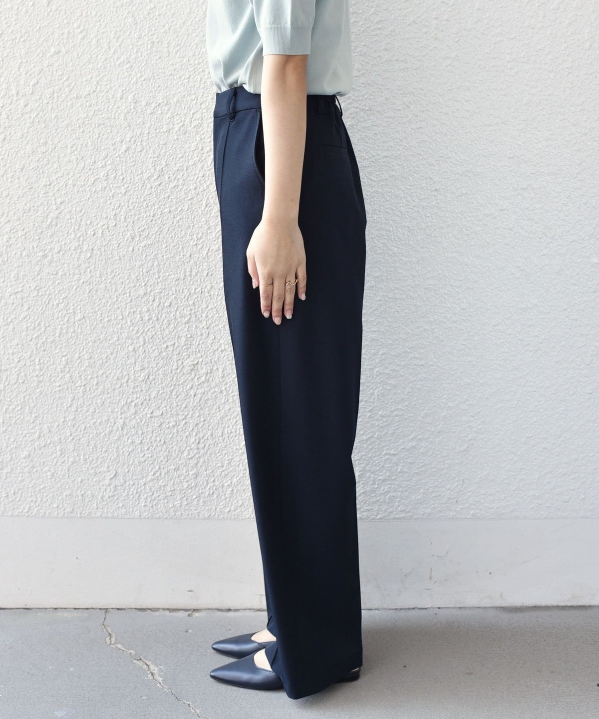 センタープレス施すことできちんと感があり、、オフィスカジュアルやセレモニーにもおすすめです。
