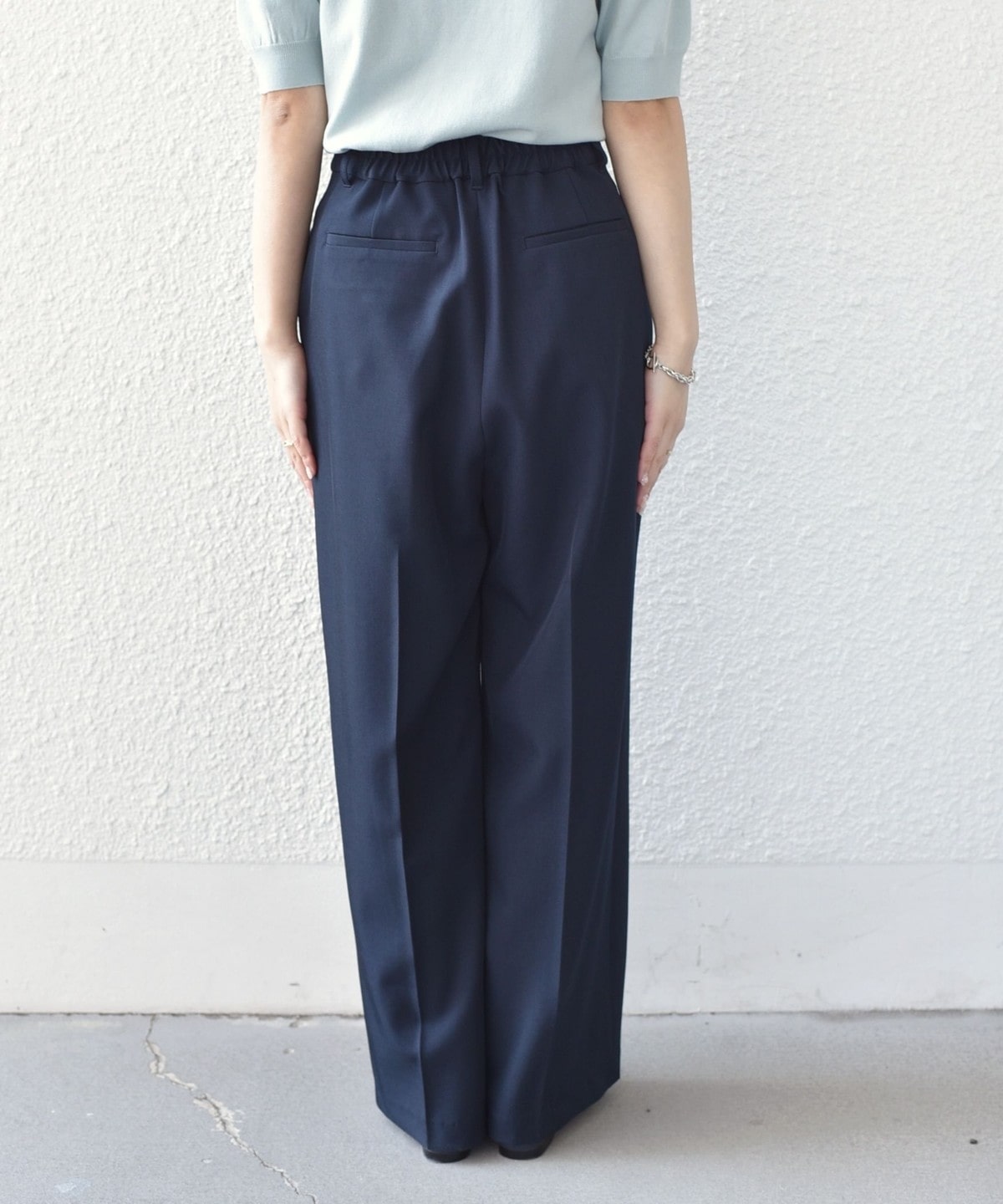 ウエスト後ろはゴム仕様で、見た目のきれいさと快適な穿き心地を両立しています。