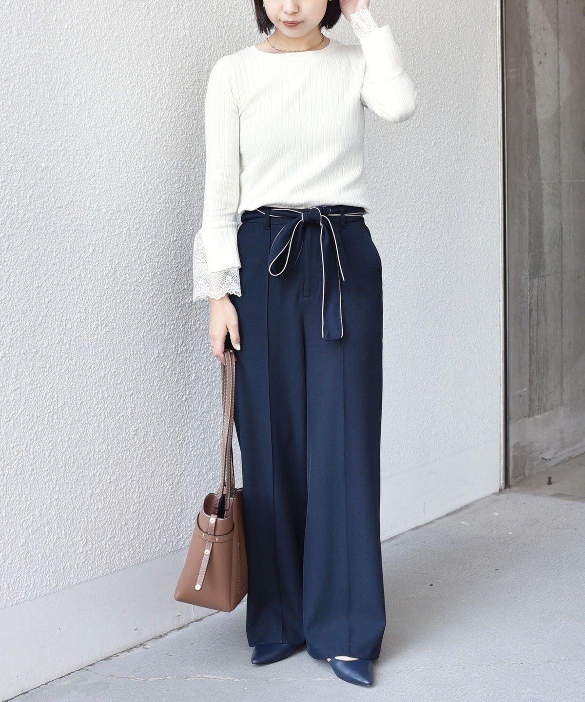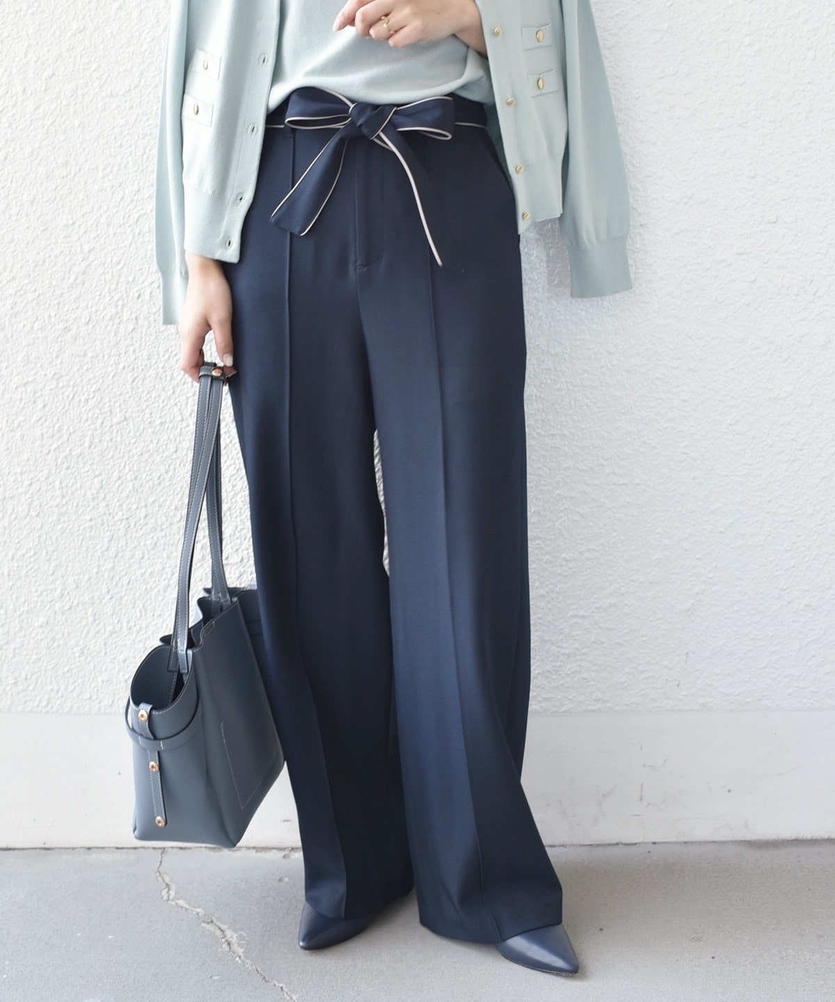 フェミニンさと大人の上品さを兼ね備えたリボンパンツ。