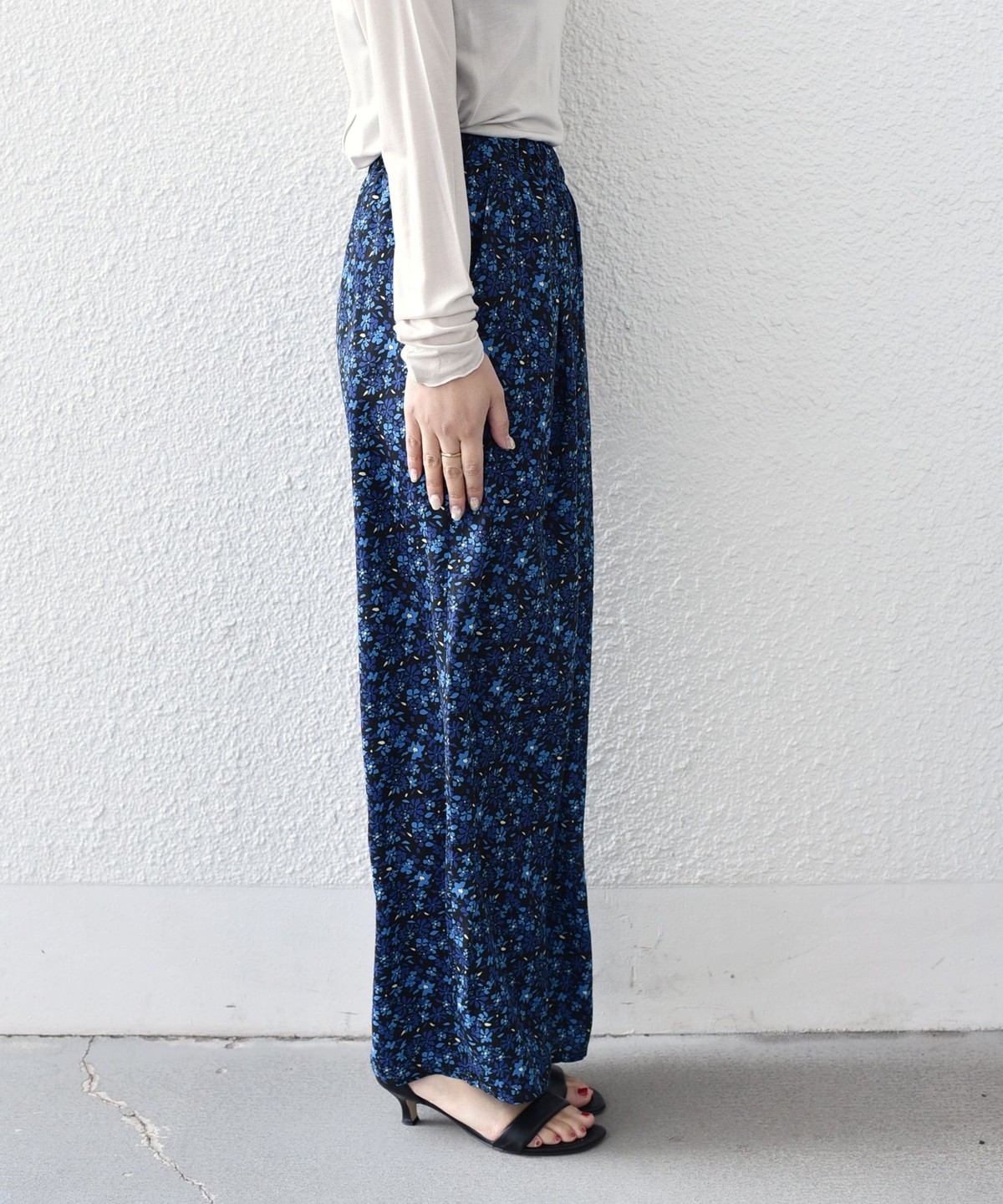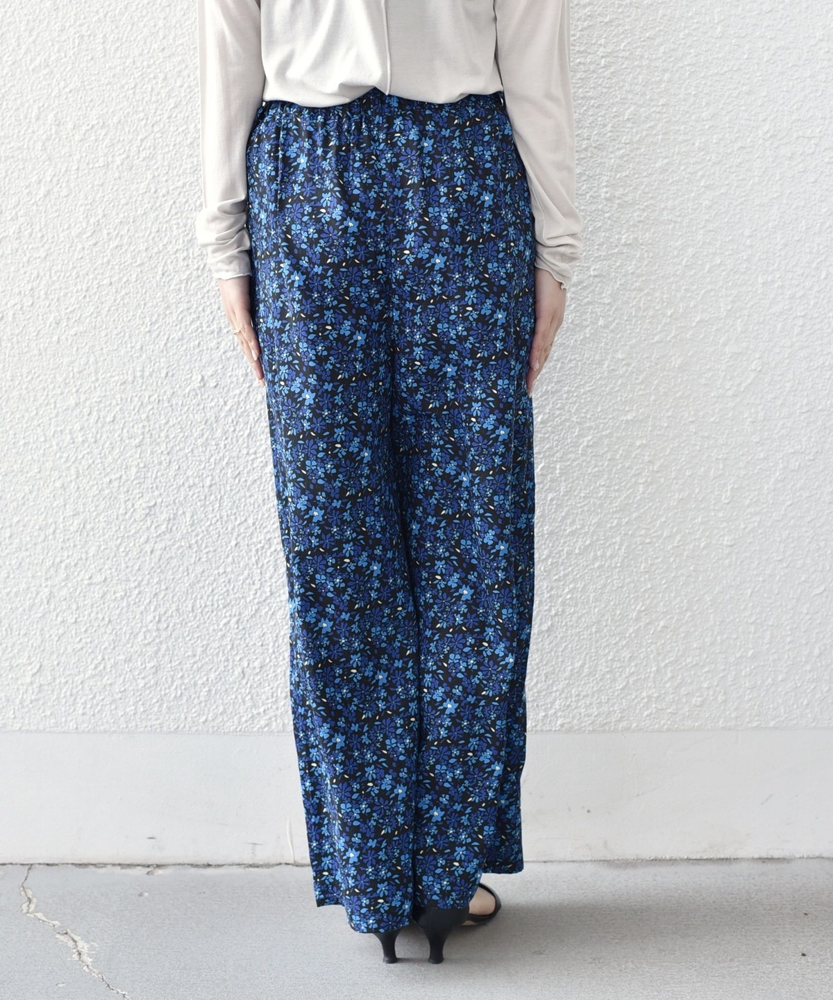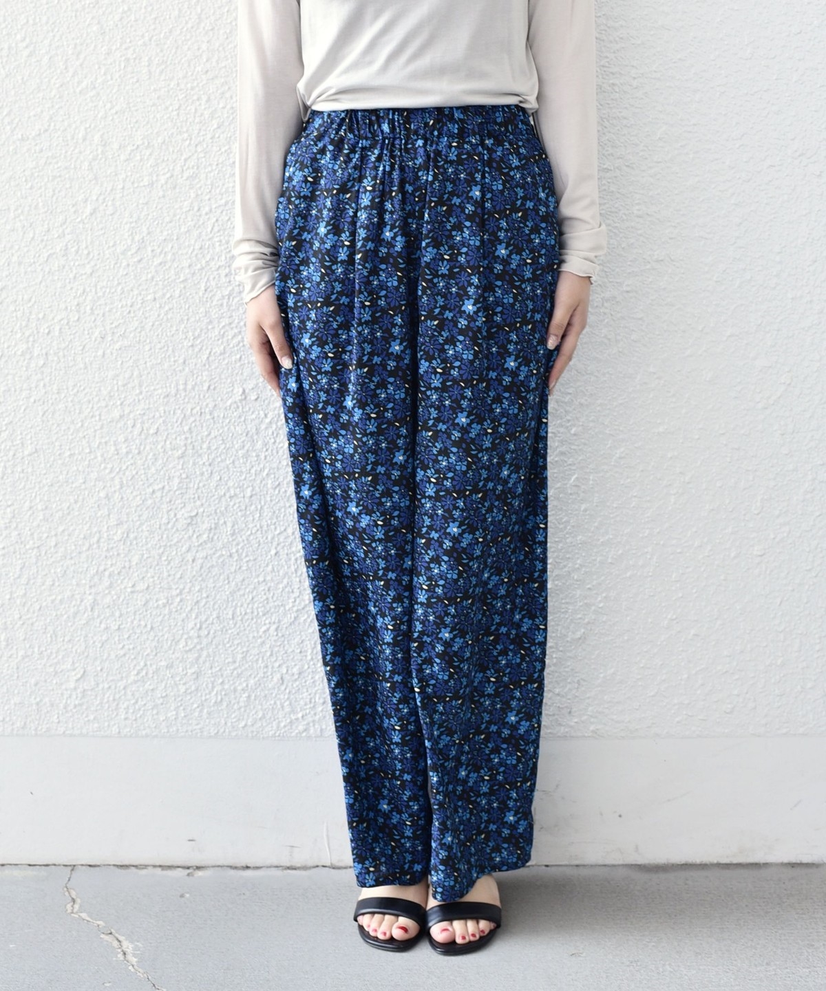 細かな花柄がスタイリングを華やかに演出してくれるイージーパンツ。
