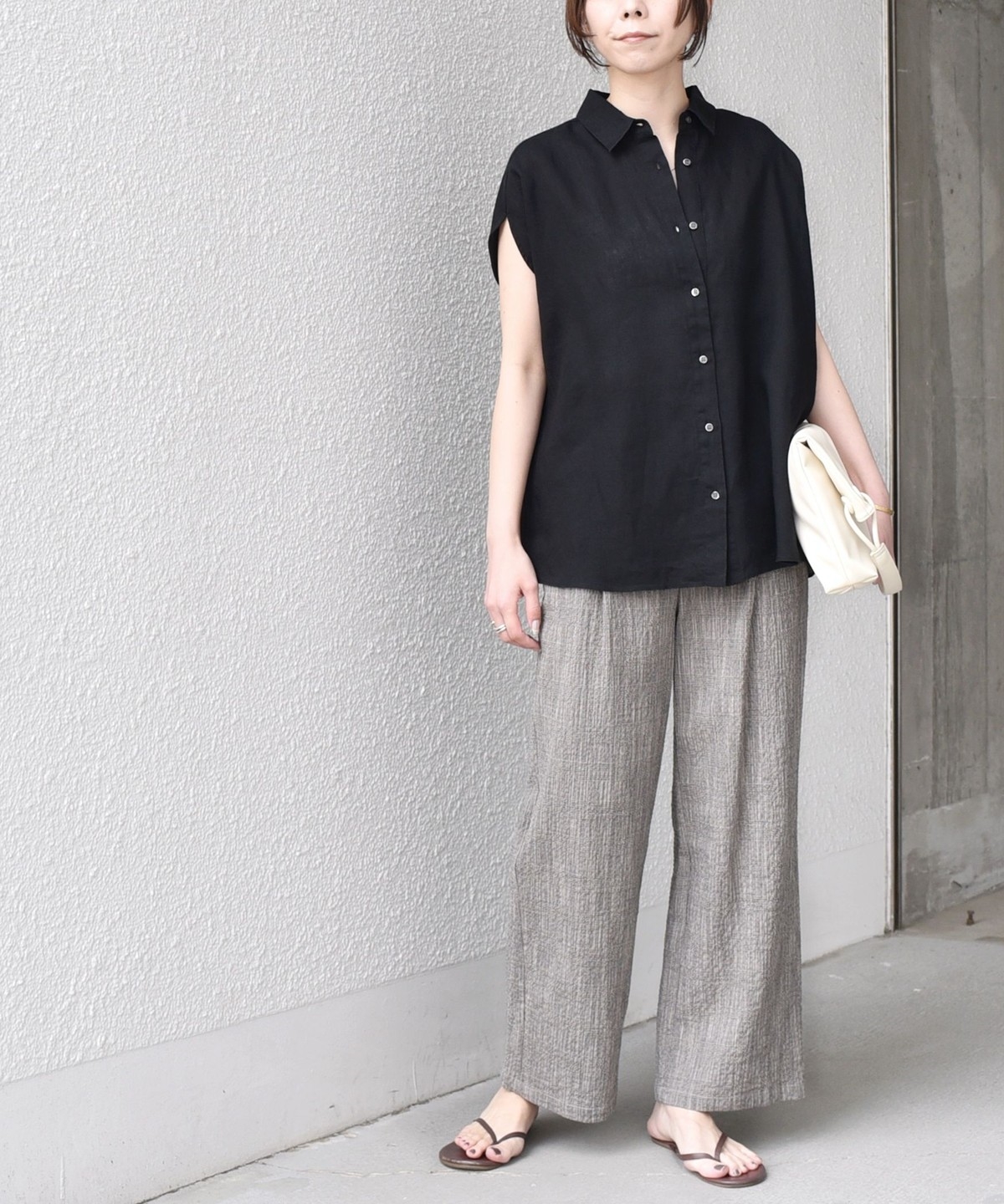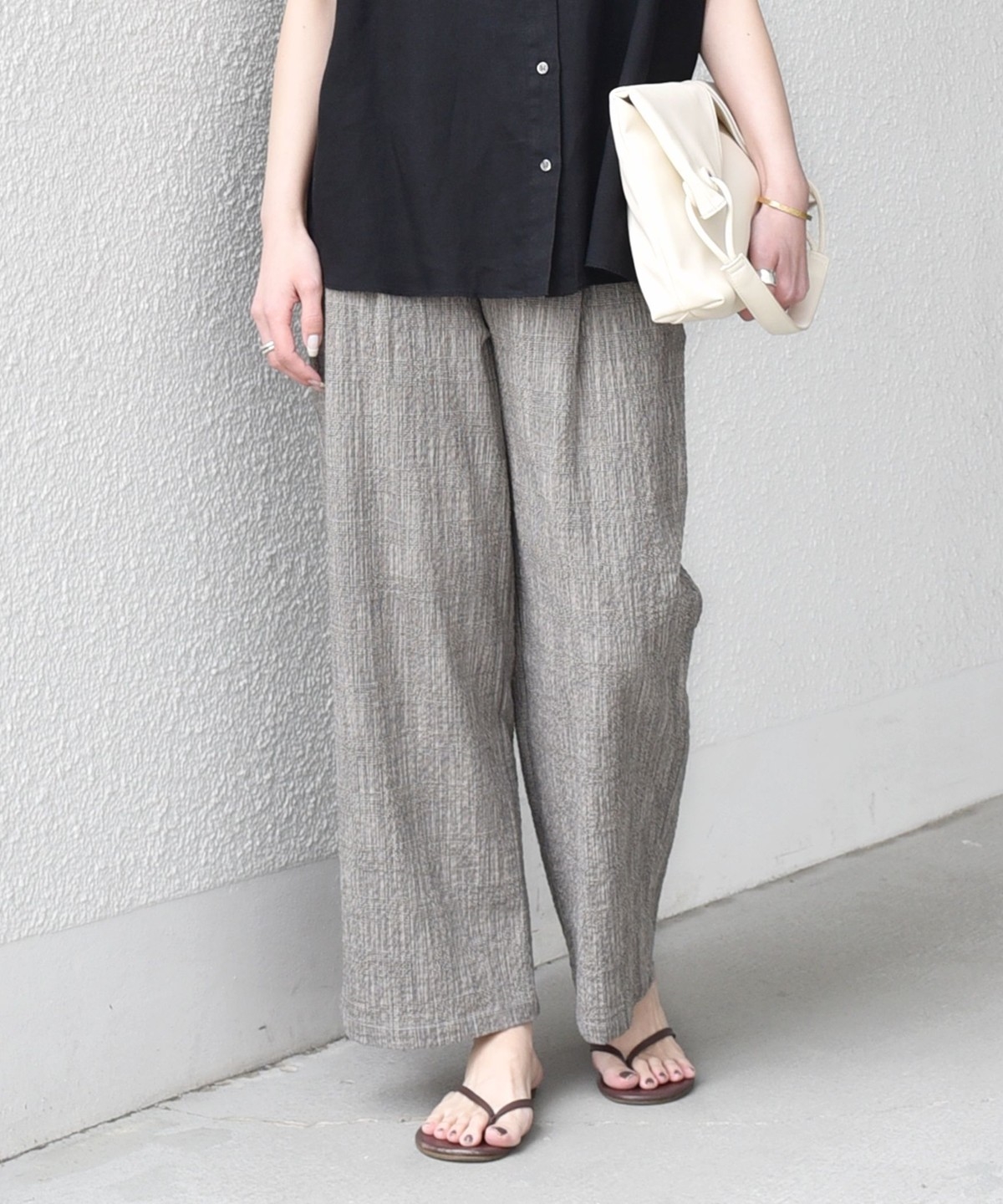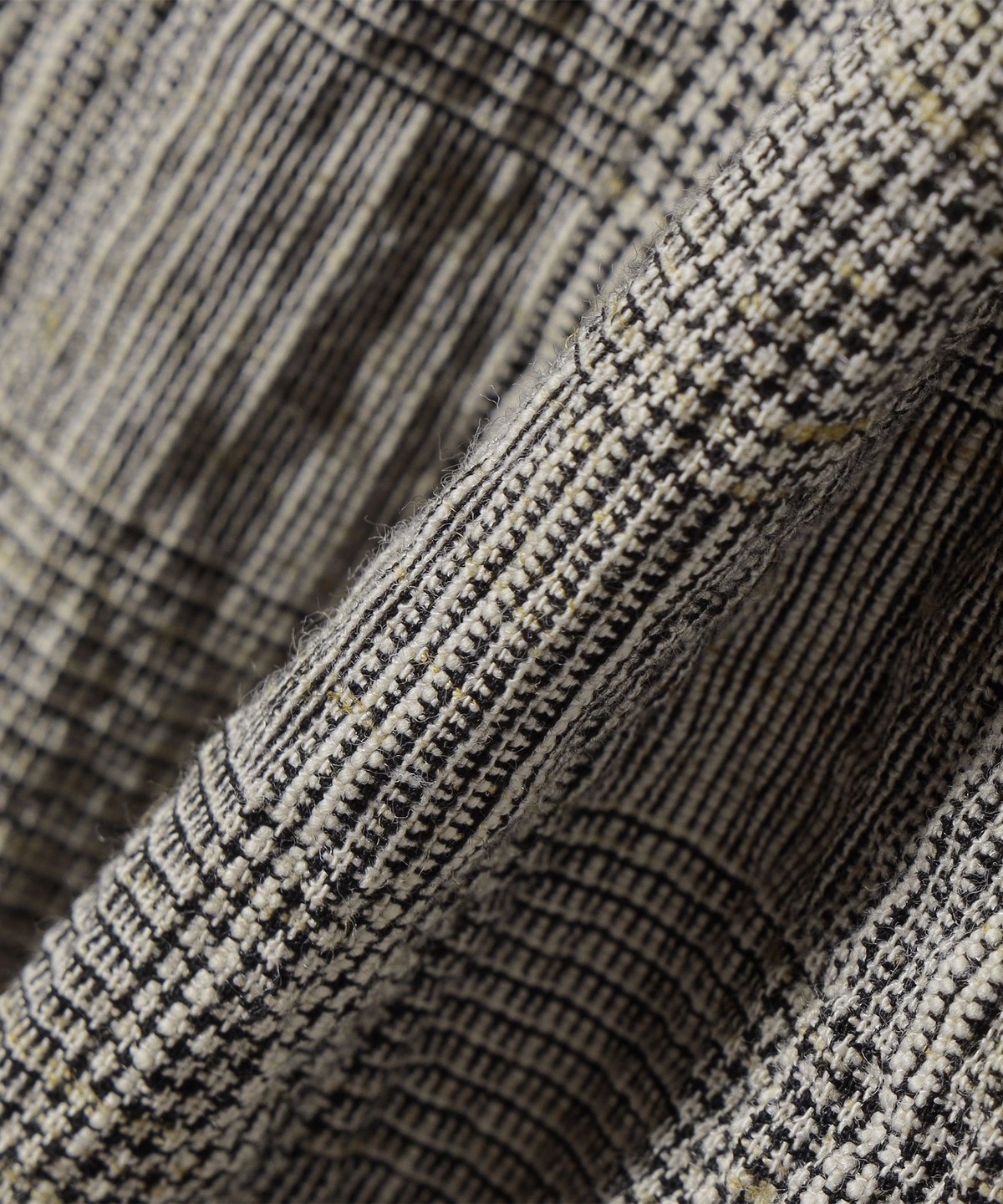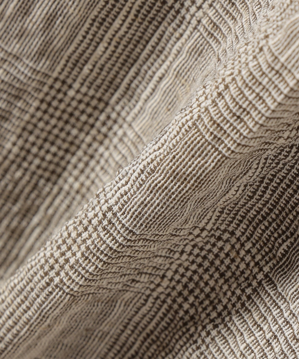 チェック柄としぼ感のある表情が、コーディネートにさりげない奥行きをプラスしてくれます。