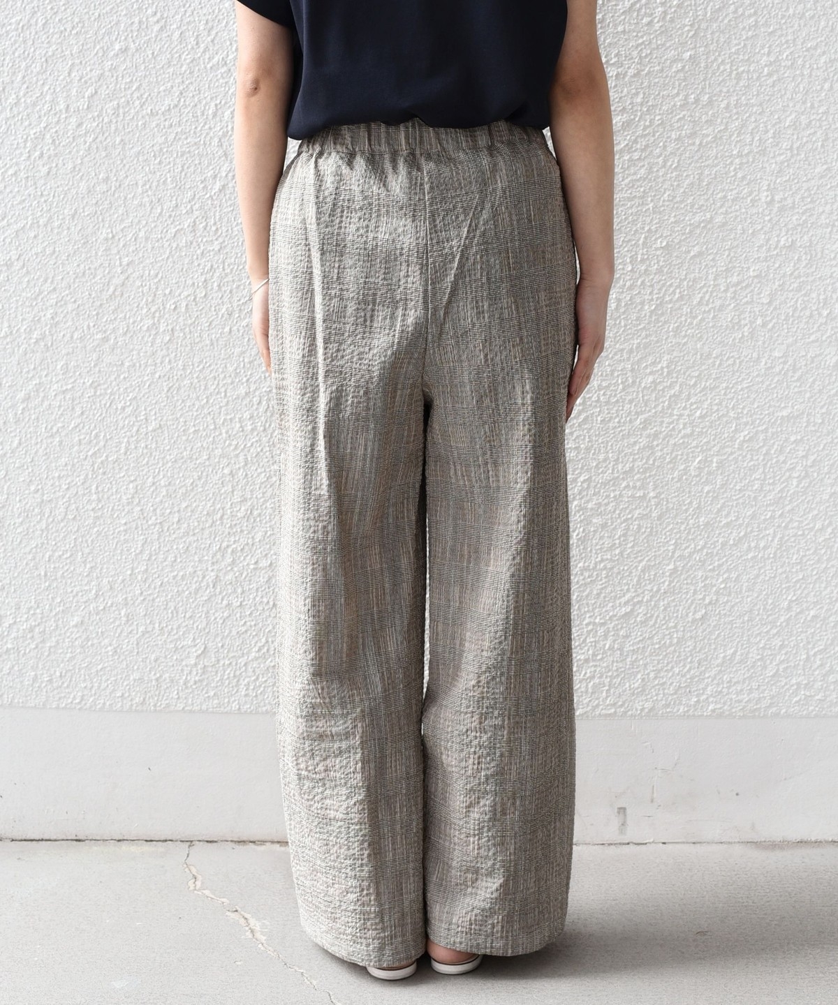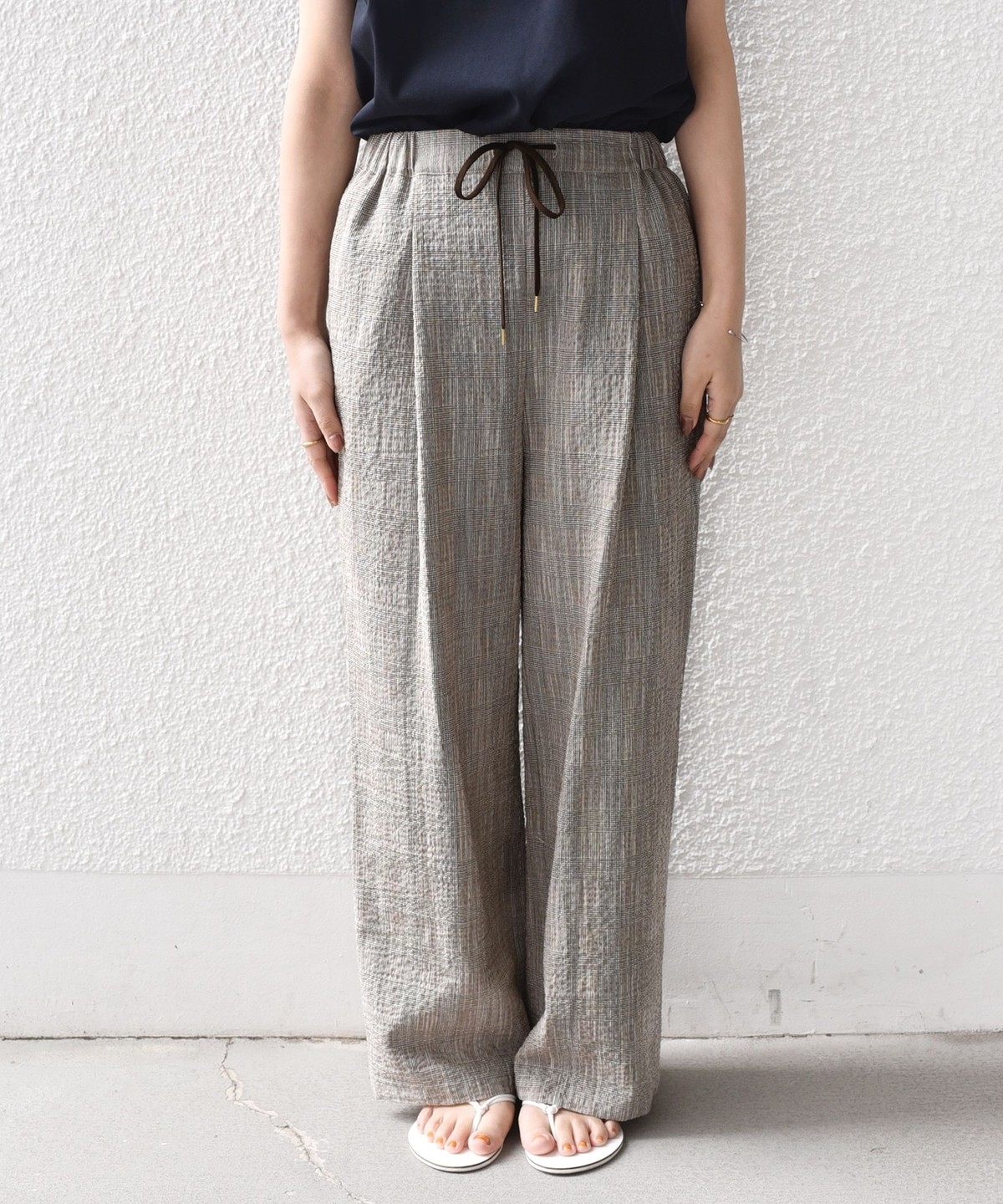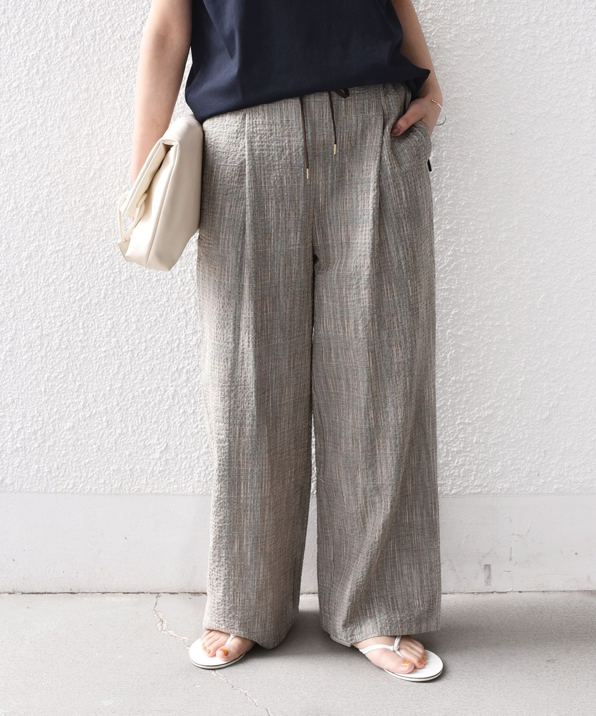 表面感のあるチェック柄生地がアクセントなったイージーパンツ。