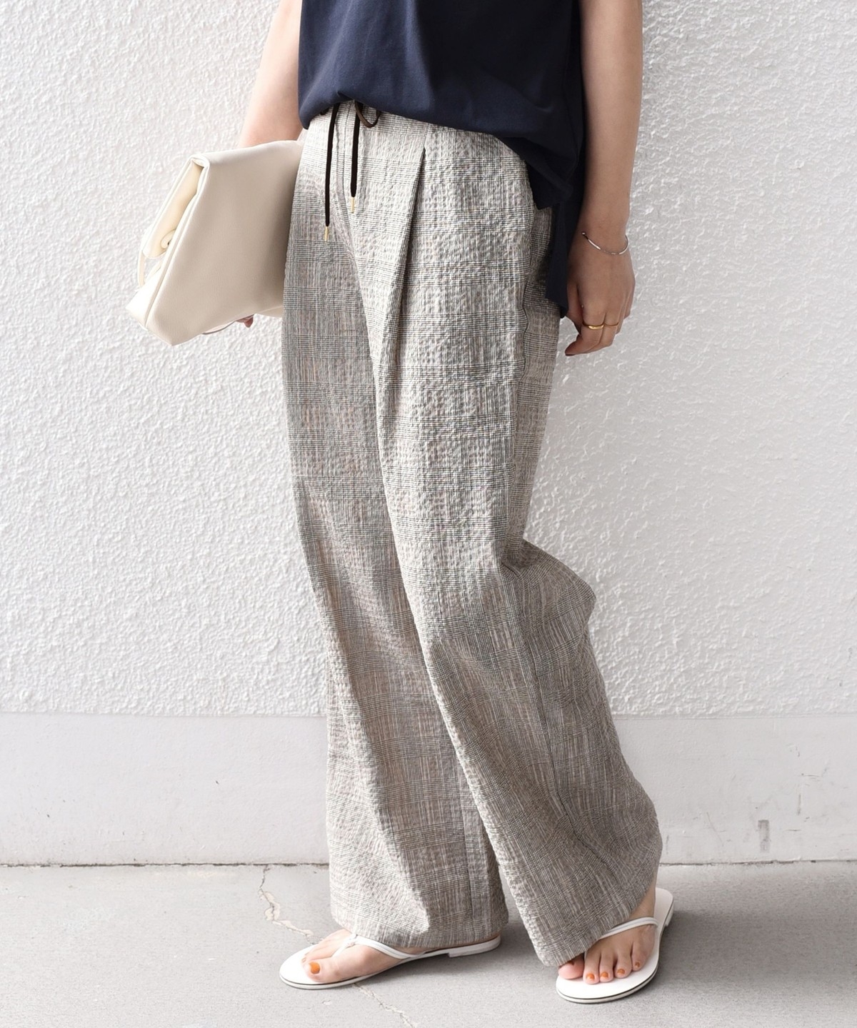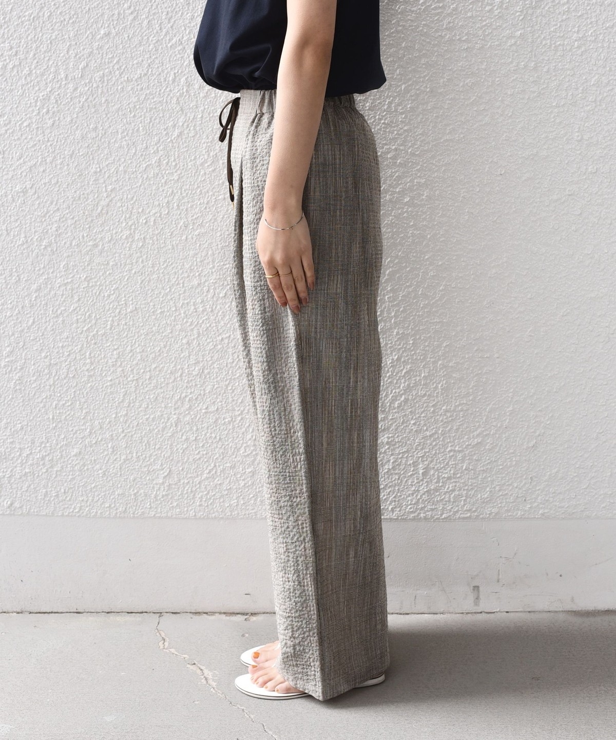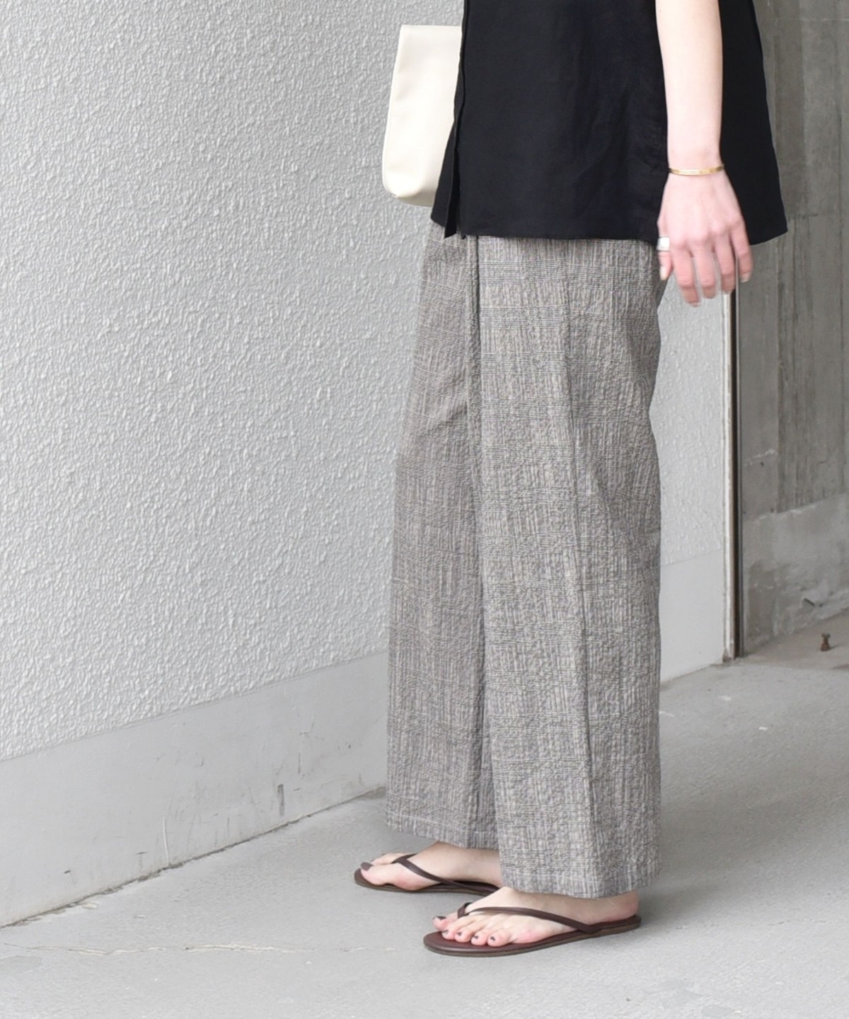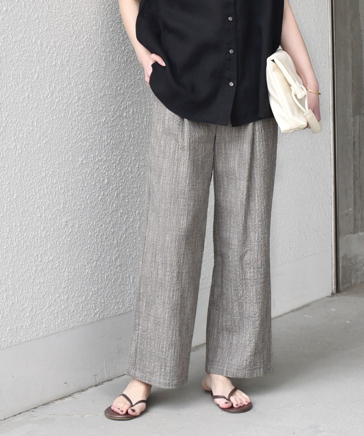 表面感のあるチェック柄生地がアクセントなったイージーパンツ。
