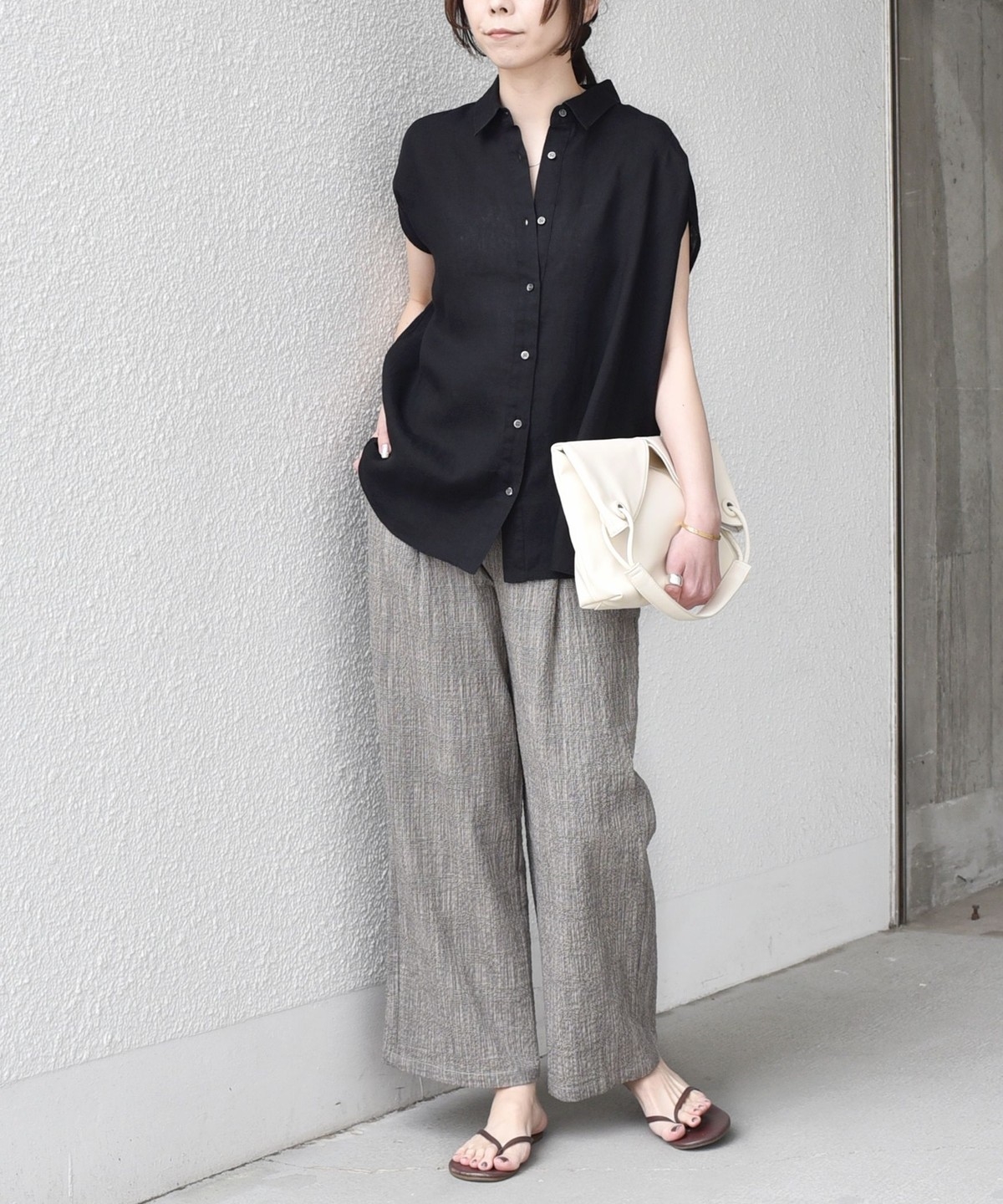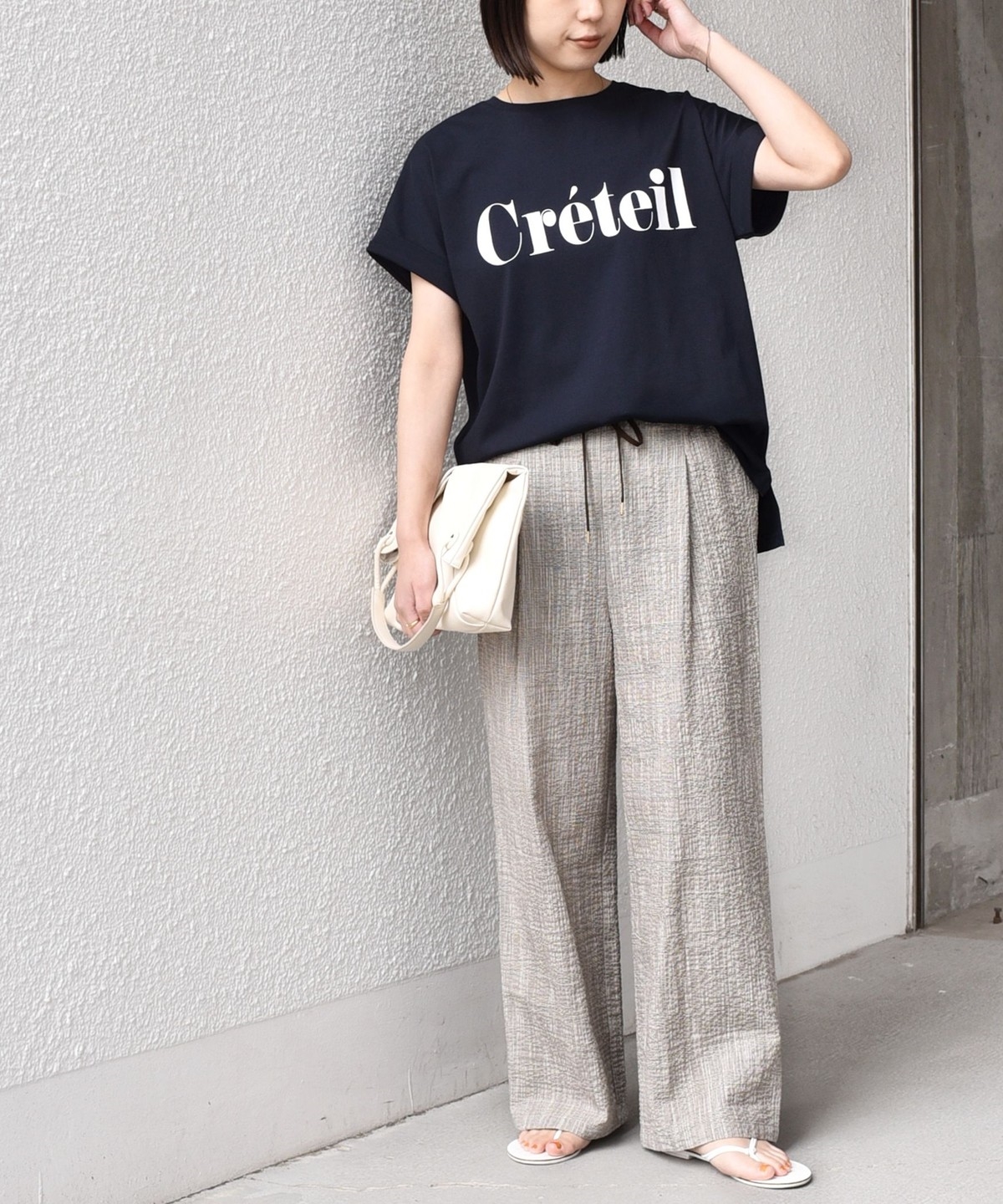 Tシャツやリネンシャツと合わせたラフなスタイルは、春夏のおでかけにもおすすめ。