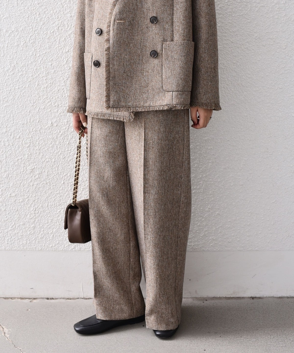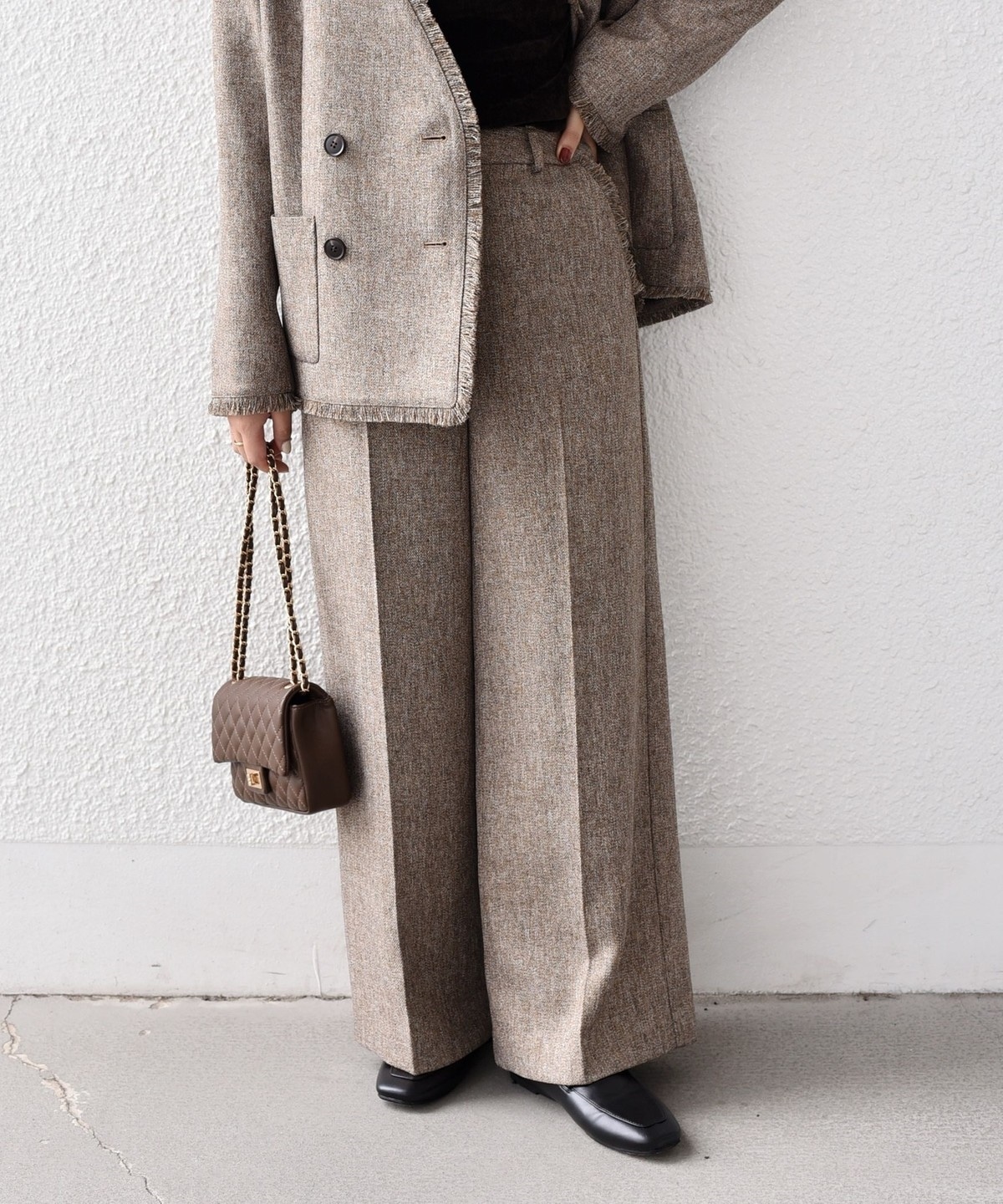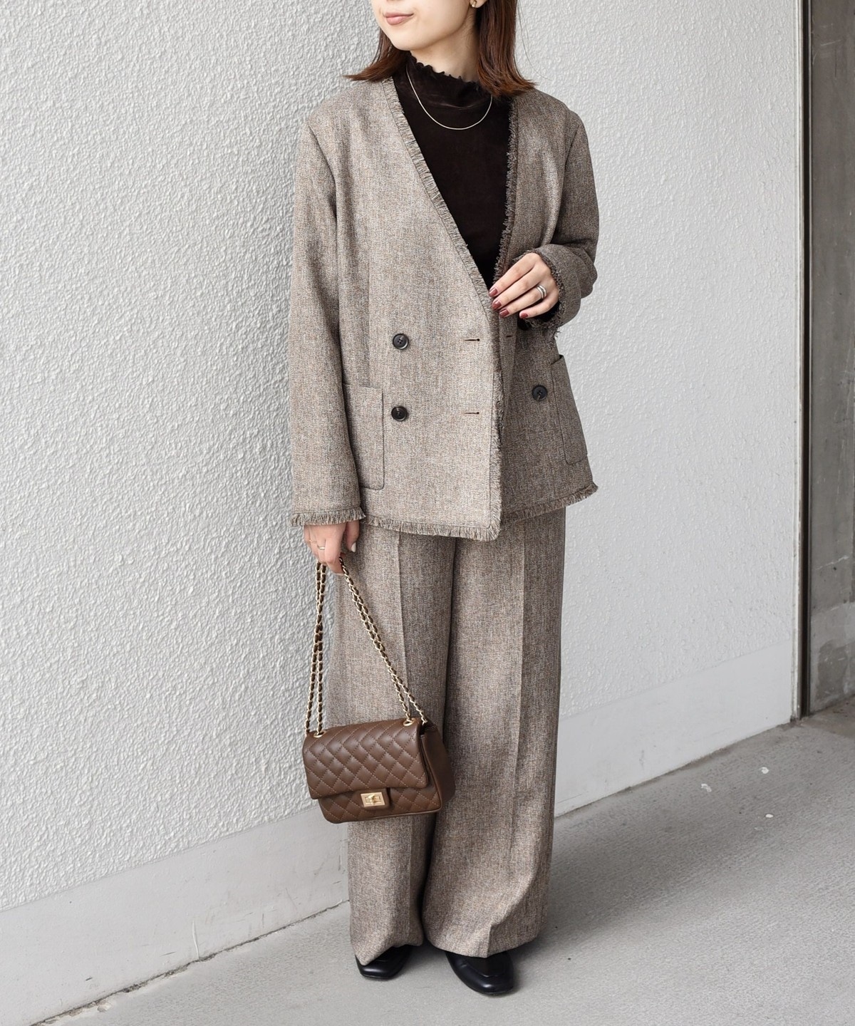 同素材のジャケットとセットアップでの着用も可能で、オケージョンシーンにも映える上品なスタイルが完成します。
