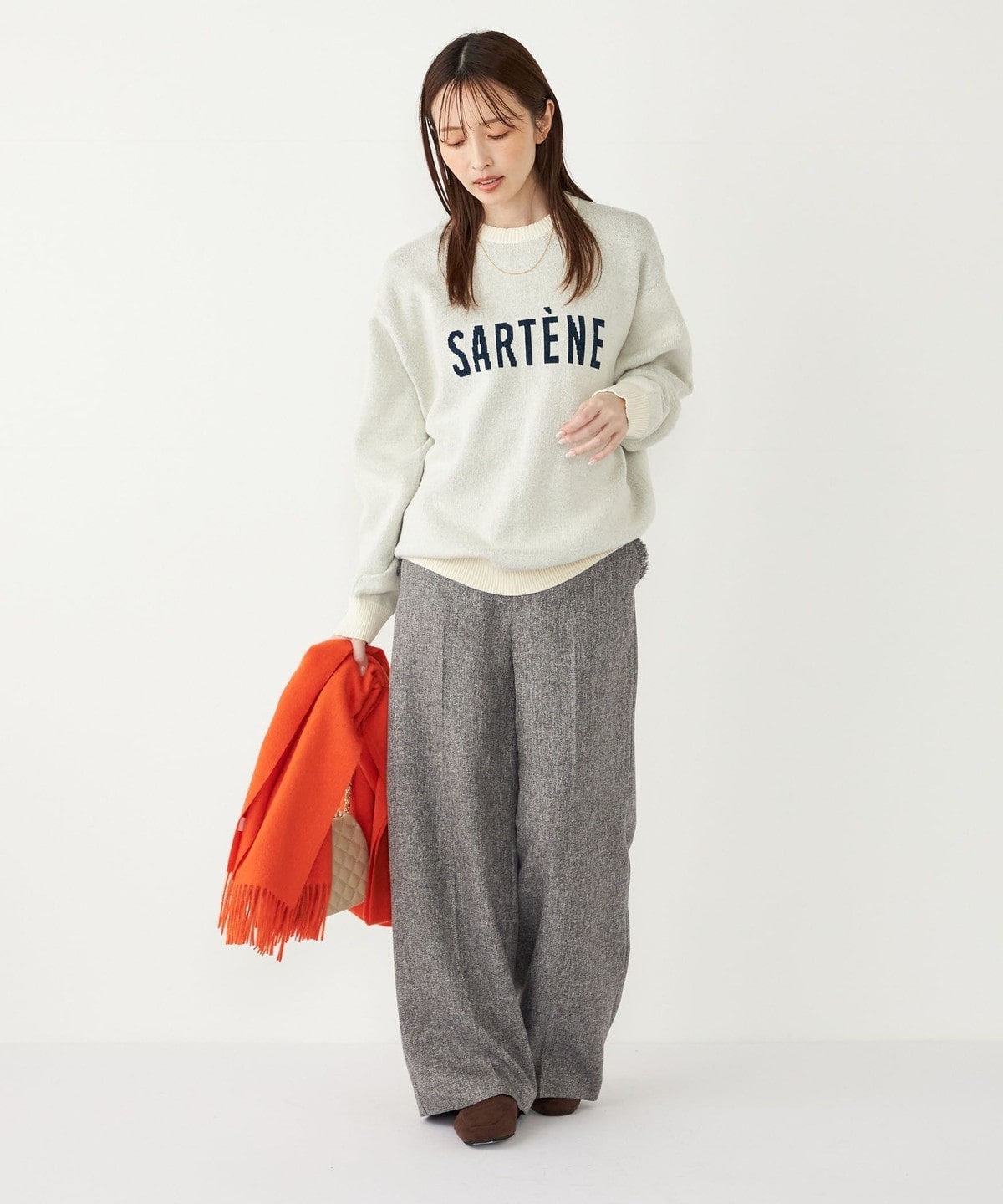 あえてオーバーサイズなスウェットやカジュアルなカットソー合わせ、きれいめカジュアルに着こなしていただくのもおすすめです。