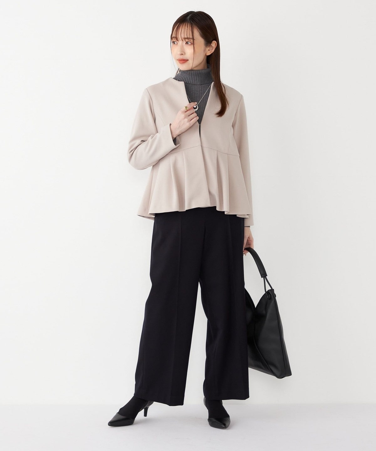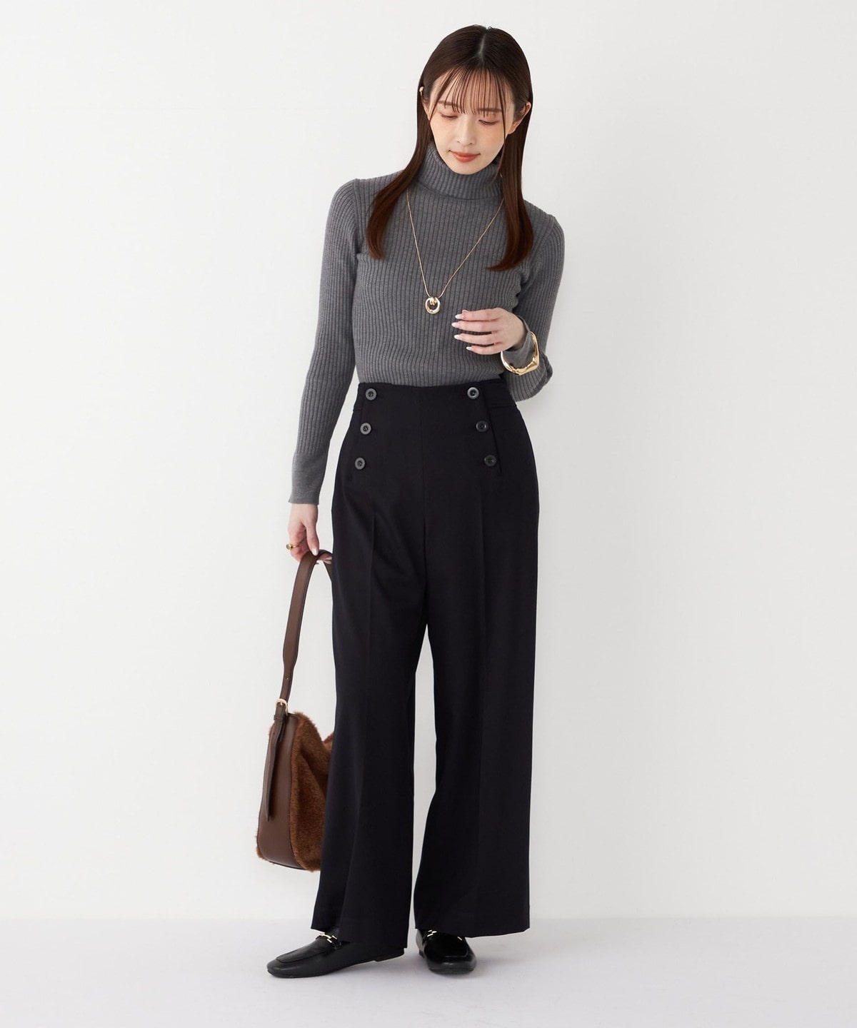 厚手すぎず落ち感があり、上品な雰囲気で履いていただけます。