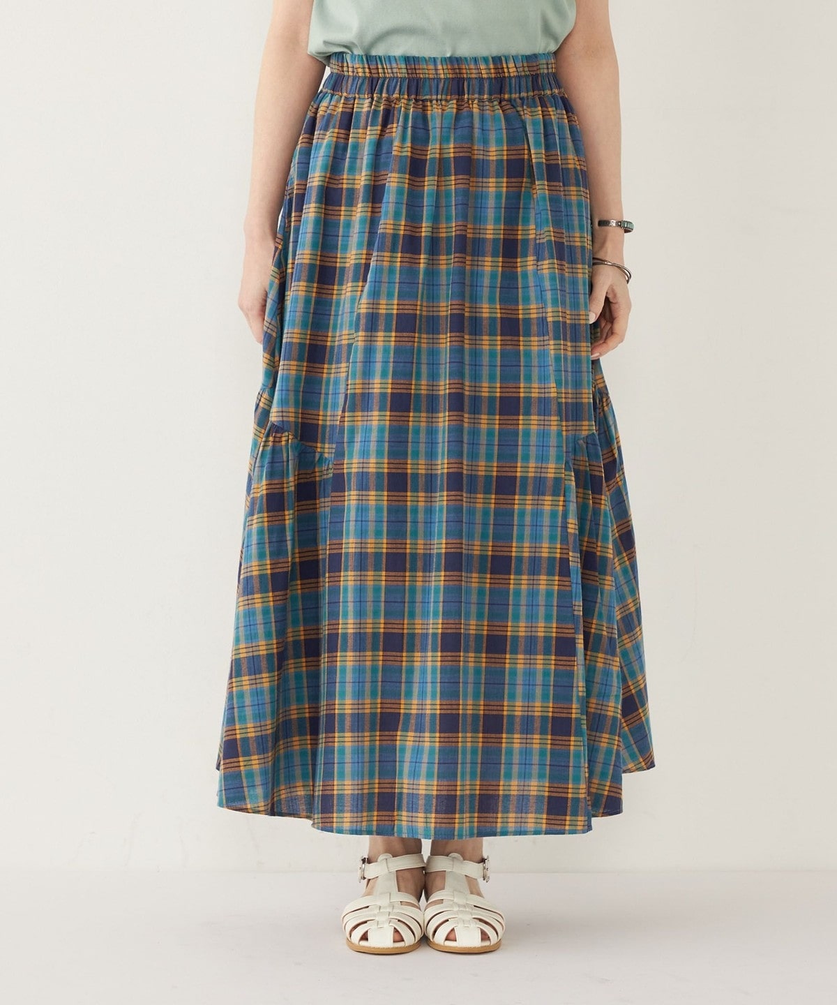 1. SHIPS Colors:〈手洗い可能〉マドラスチェック ギャザー スカート◇ ブルー