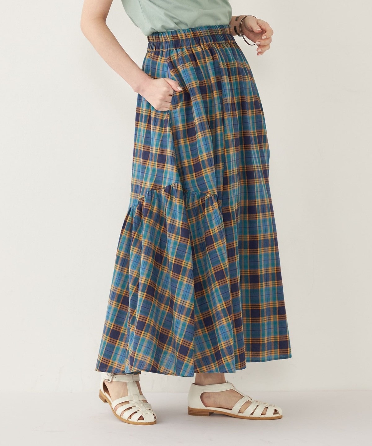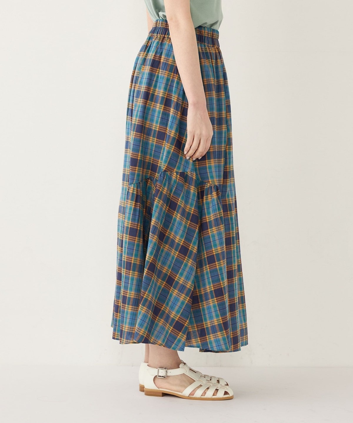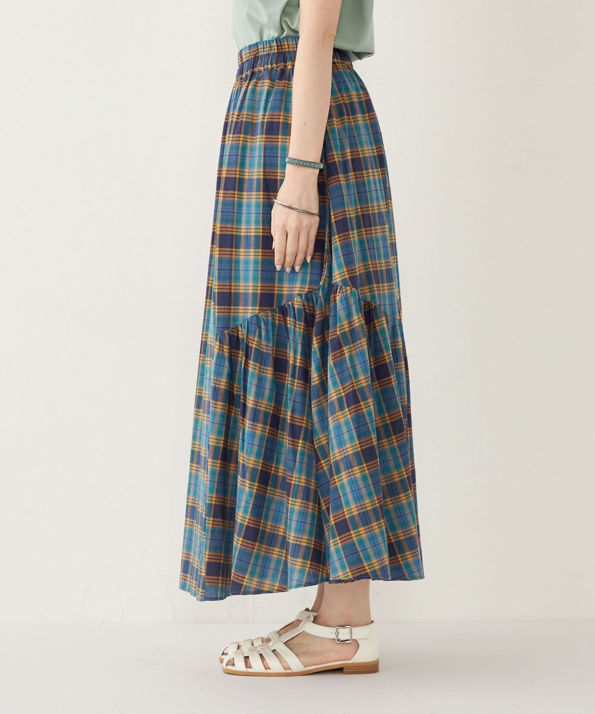 5. SHIPS Colors:〈手洗い可能〉マドラスチェック ギャザー スカート◇