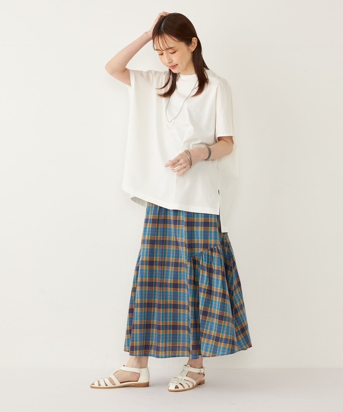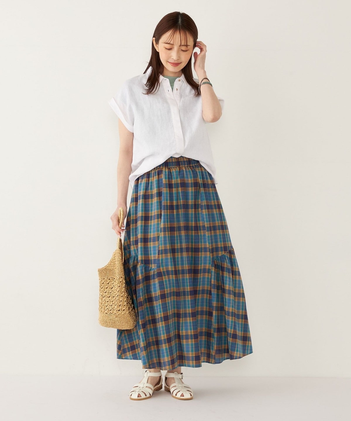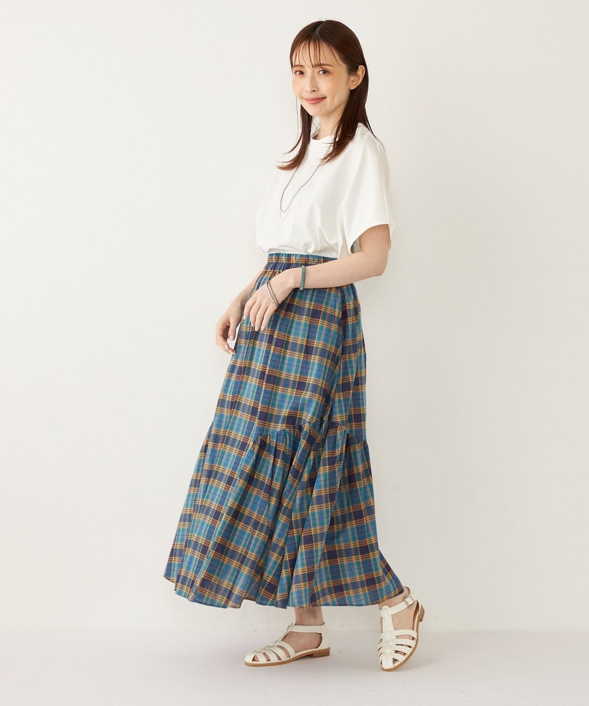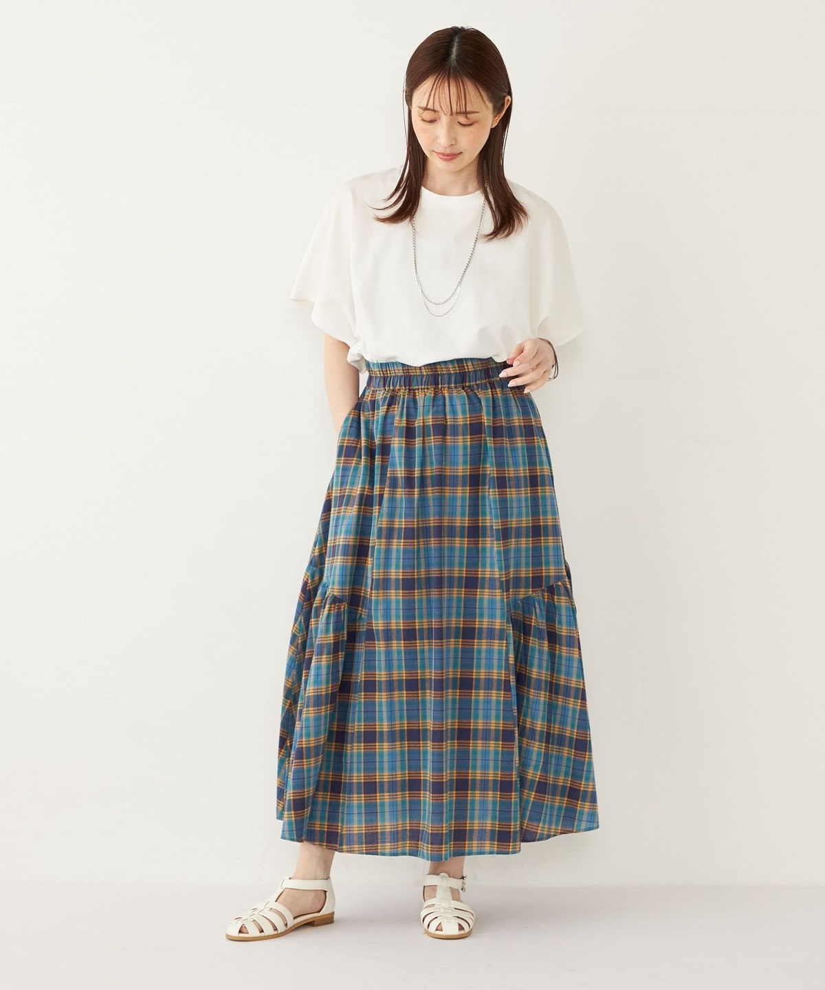 5. SHIPS Colors:〈手洗い可能〉マドラスチェック ギャザー スカート◇