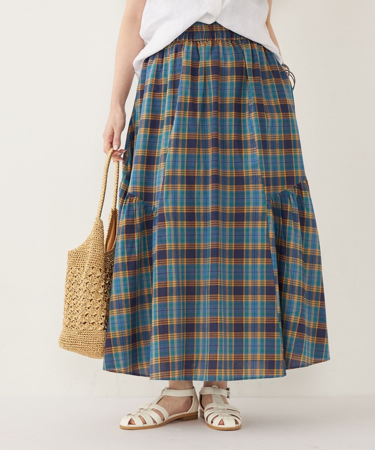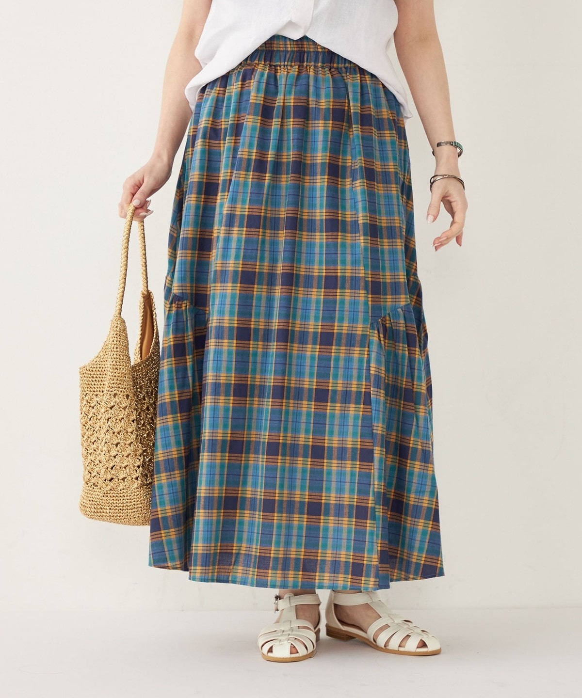 SHIPS Colors:〈手洗い可能〉マドラスチェック ギャザー スカート◇