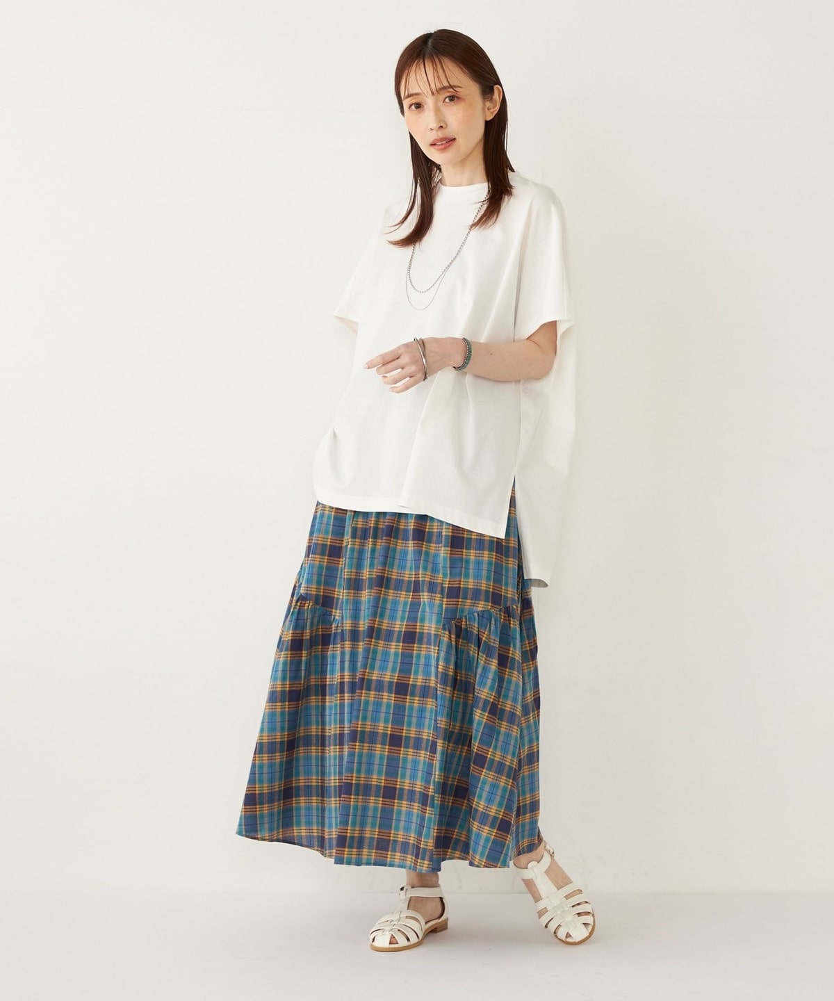 7. SHIPS Colors:〈手洗い可能〉マドラスチェック ギャザー スカート◇