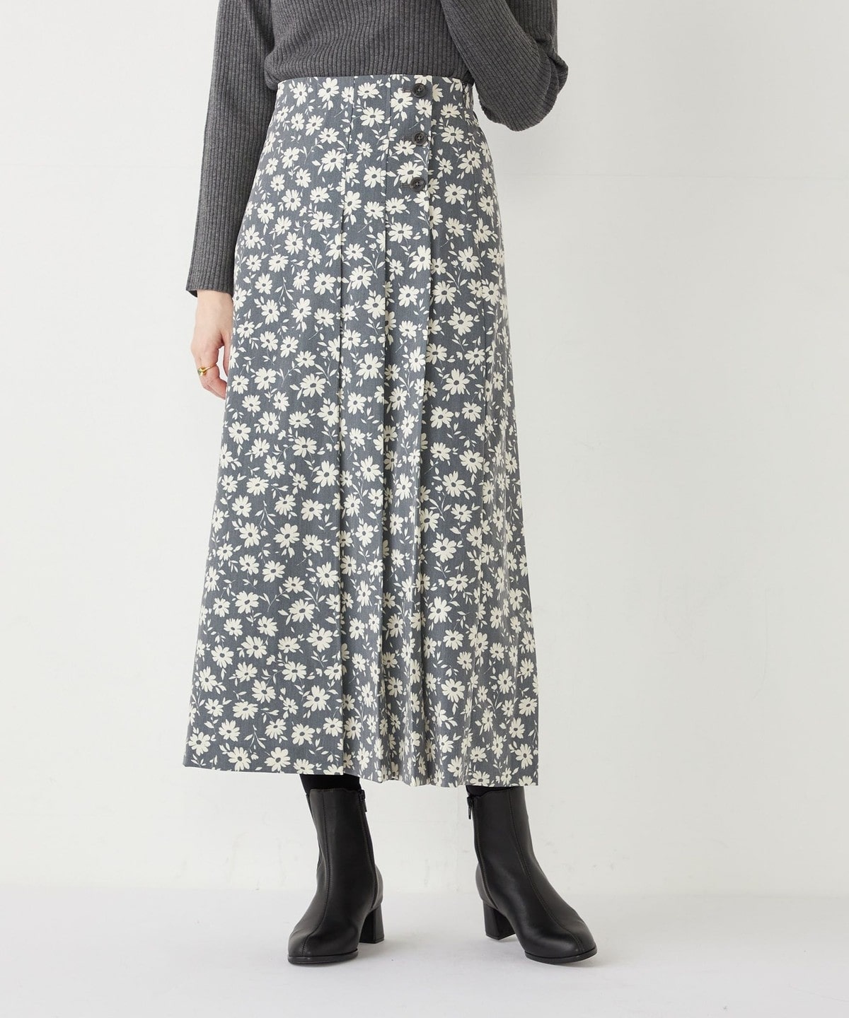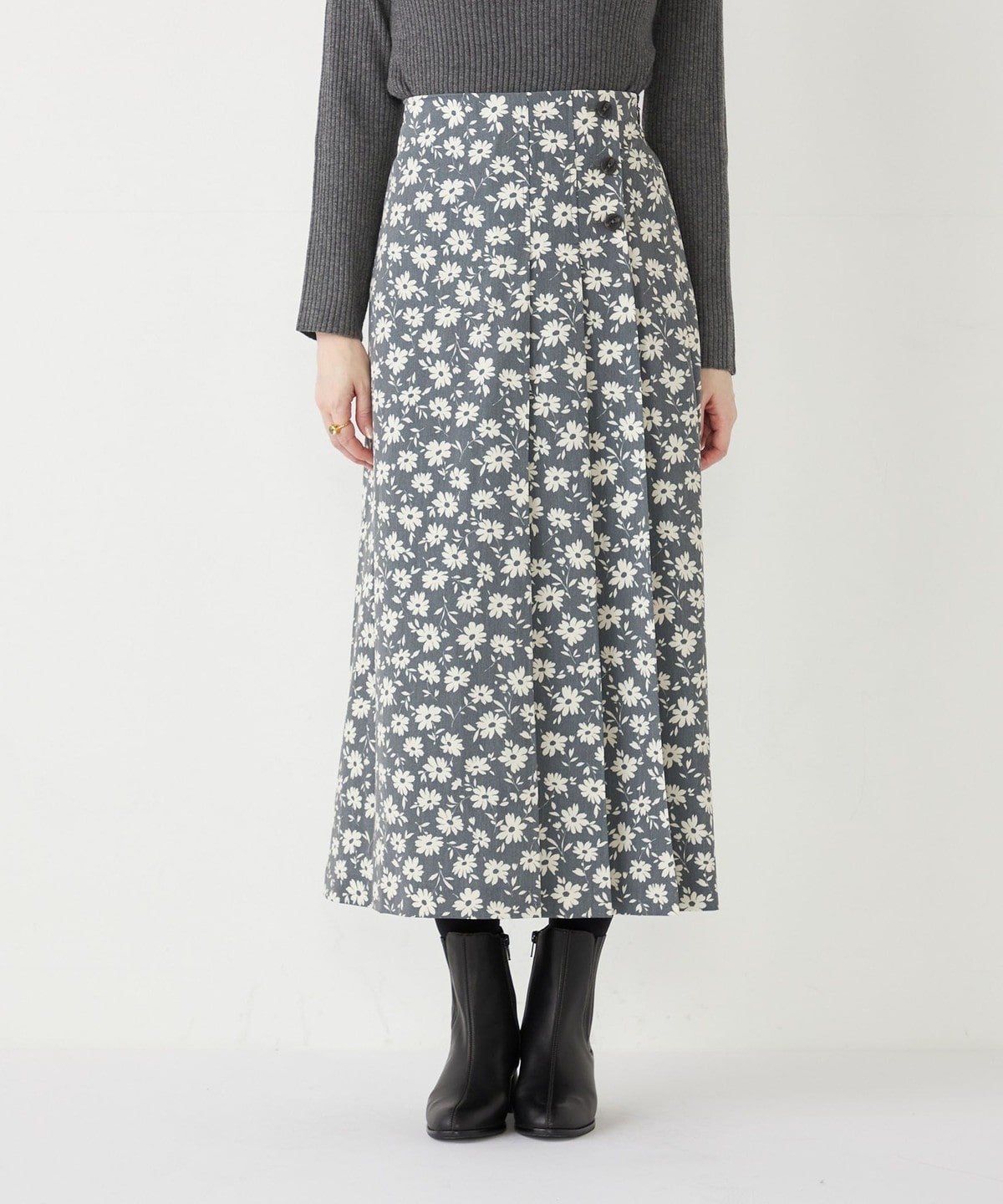 2. SHIPS Colors:〈手洗い可能〉フラワー プリント ラップ スカート グレー
