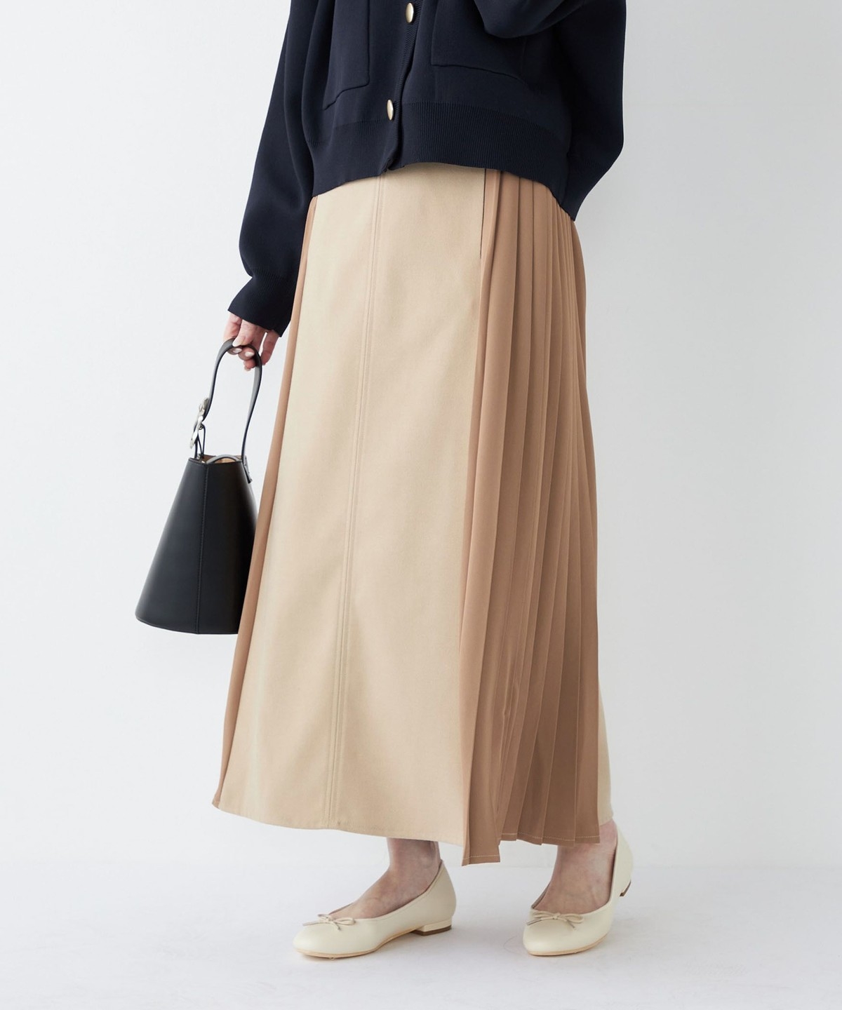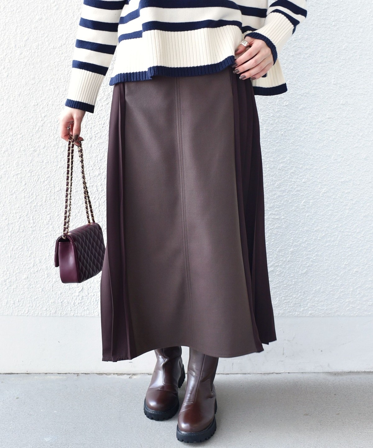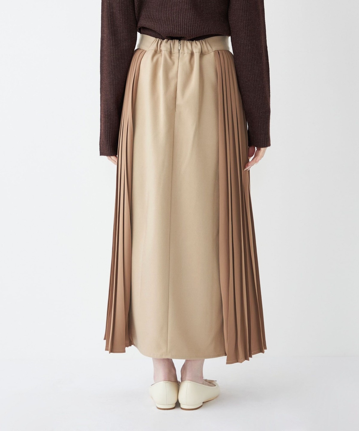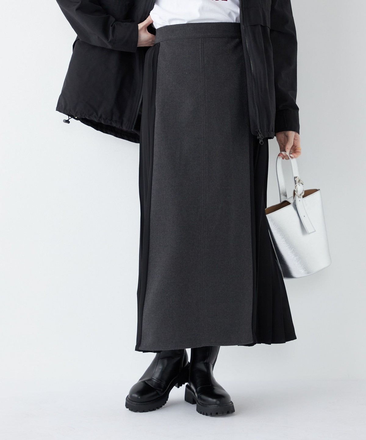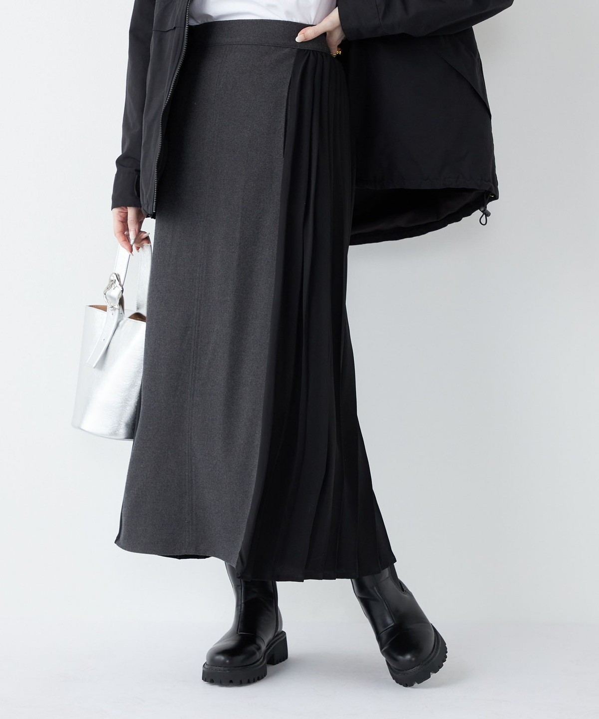 ウォーム感のある素材とプリーツをドッキングしたコンビスカート。