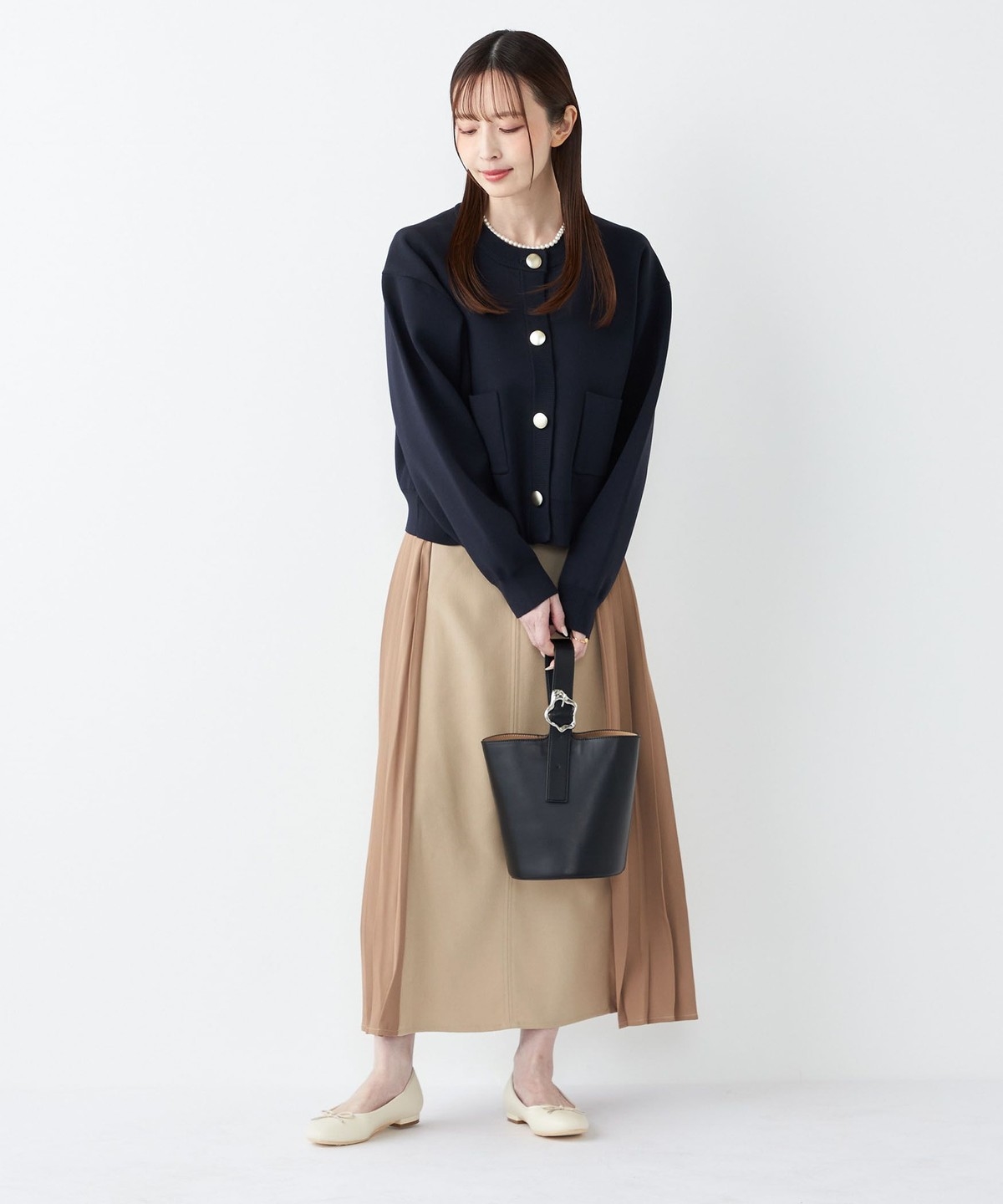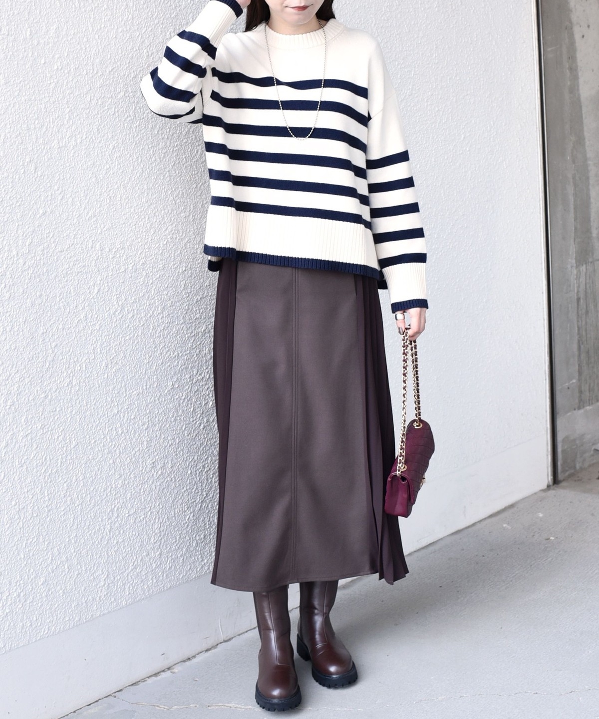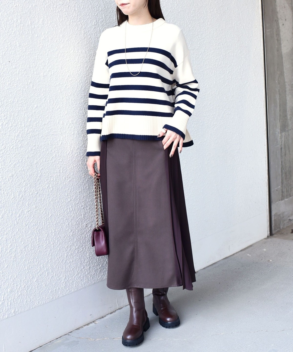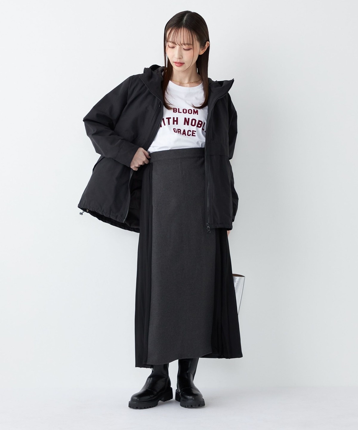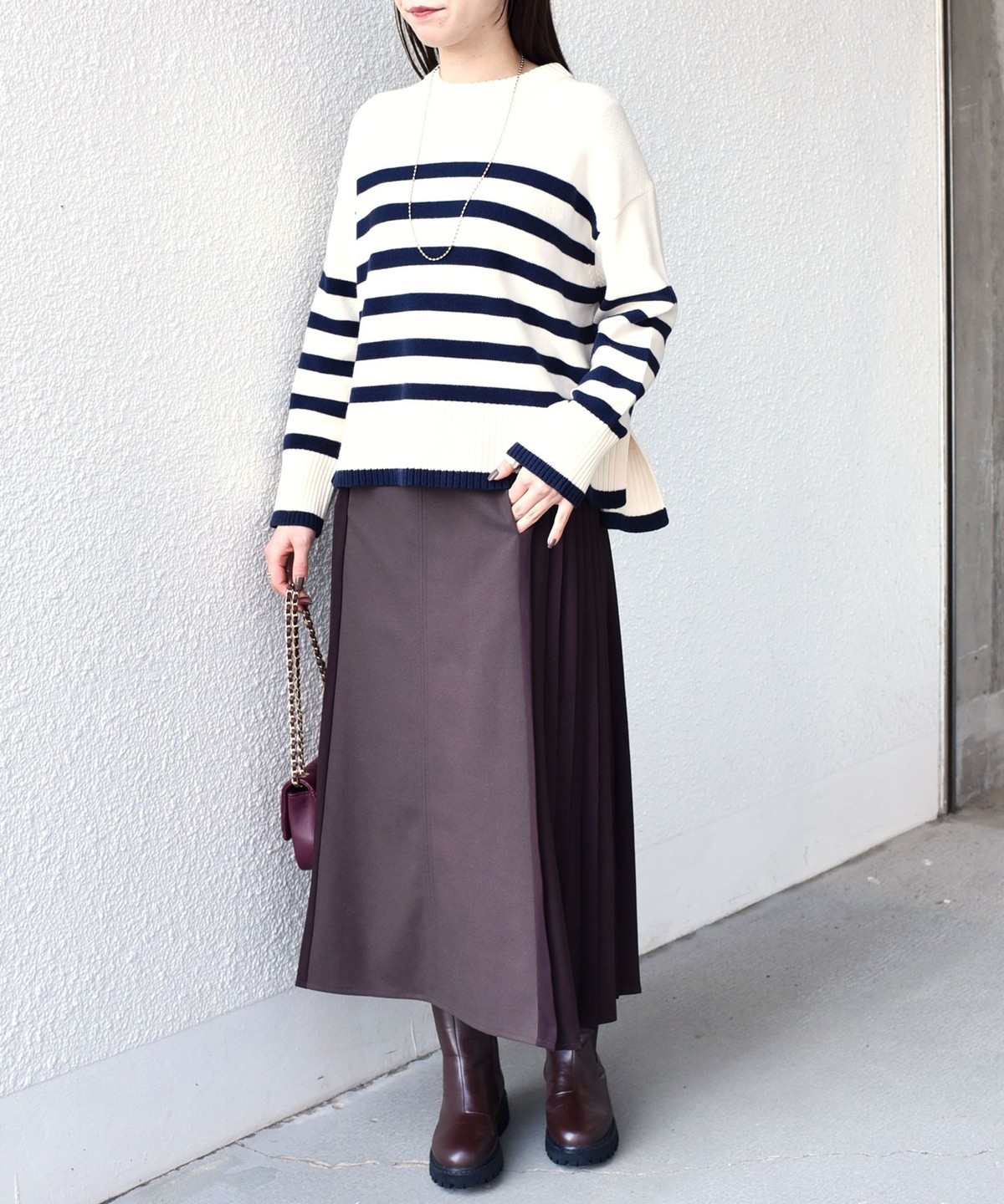 ウォーム感のある素材とプリーツをドッキングしたコンビスカート。