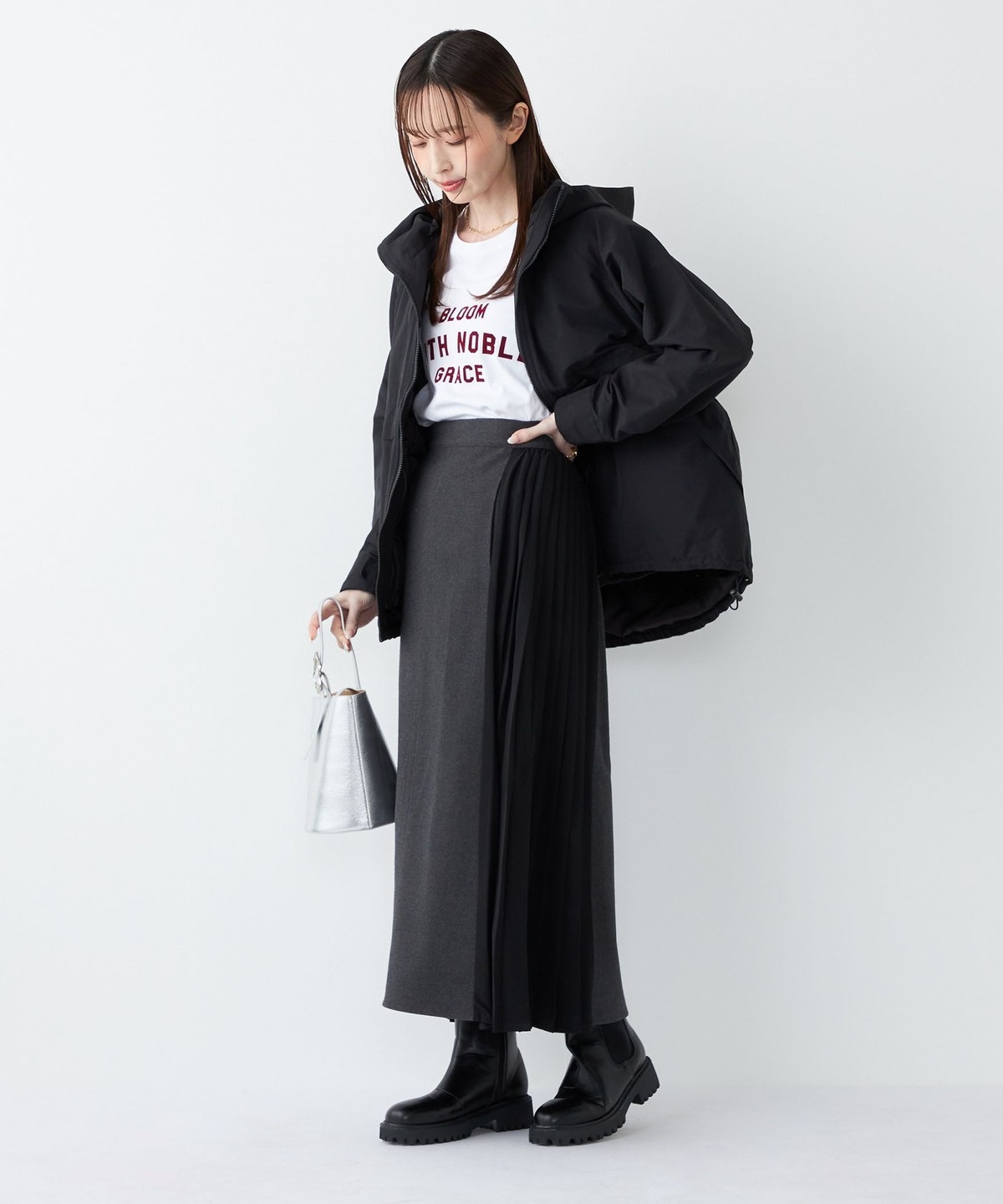 動くたびに揺れるプリーツが女性らしさを引き立てつつ、きれいめな雰囲気になりすぎずにカジュアルなスタイルにも着用していただけます。