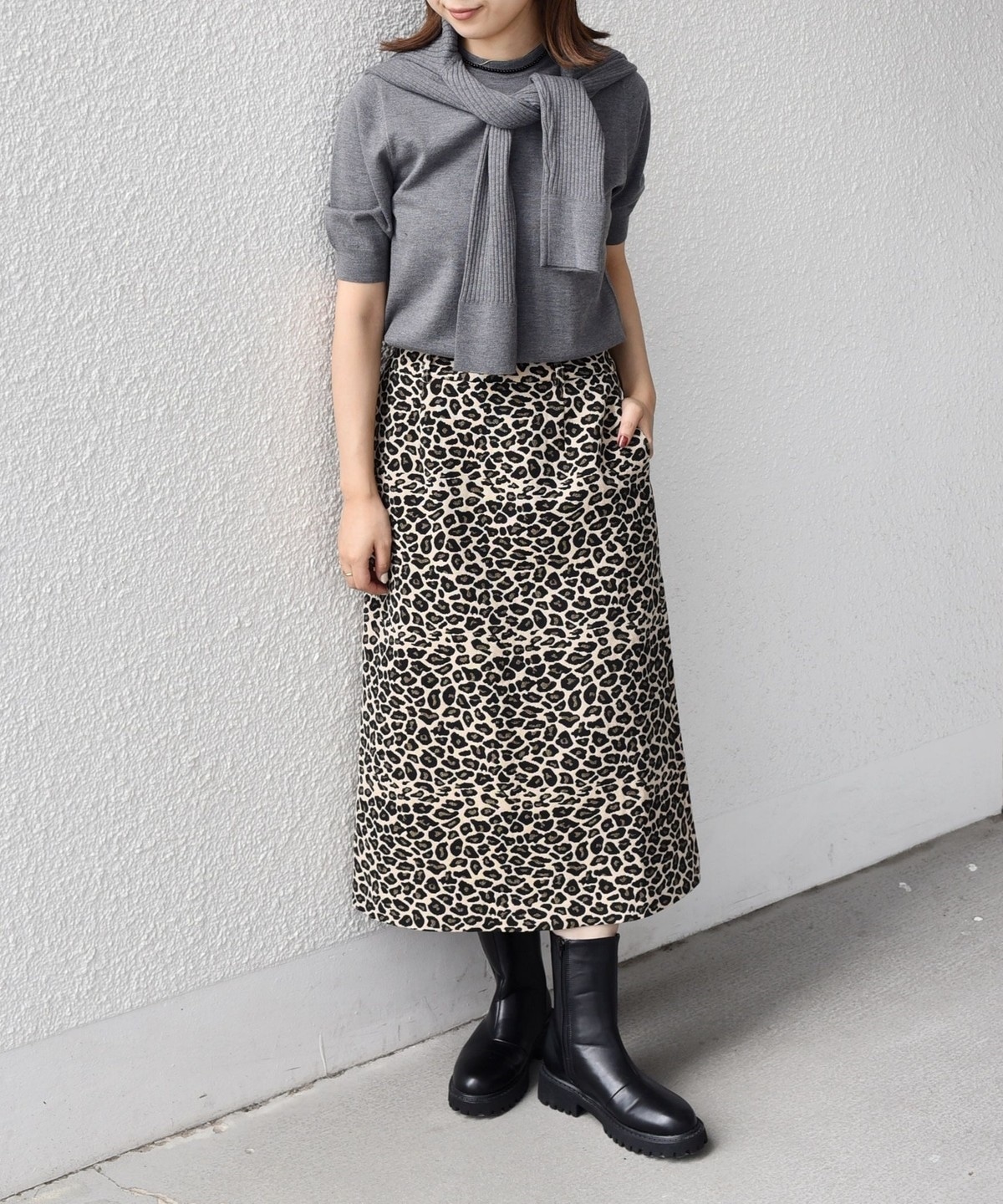20. SHIPS Colors:〈手洗い可能〉レオパード ジャカード スカート