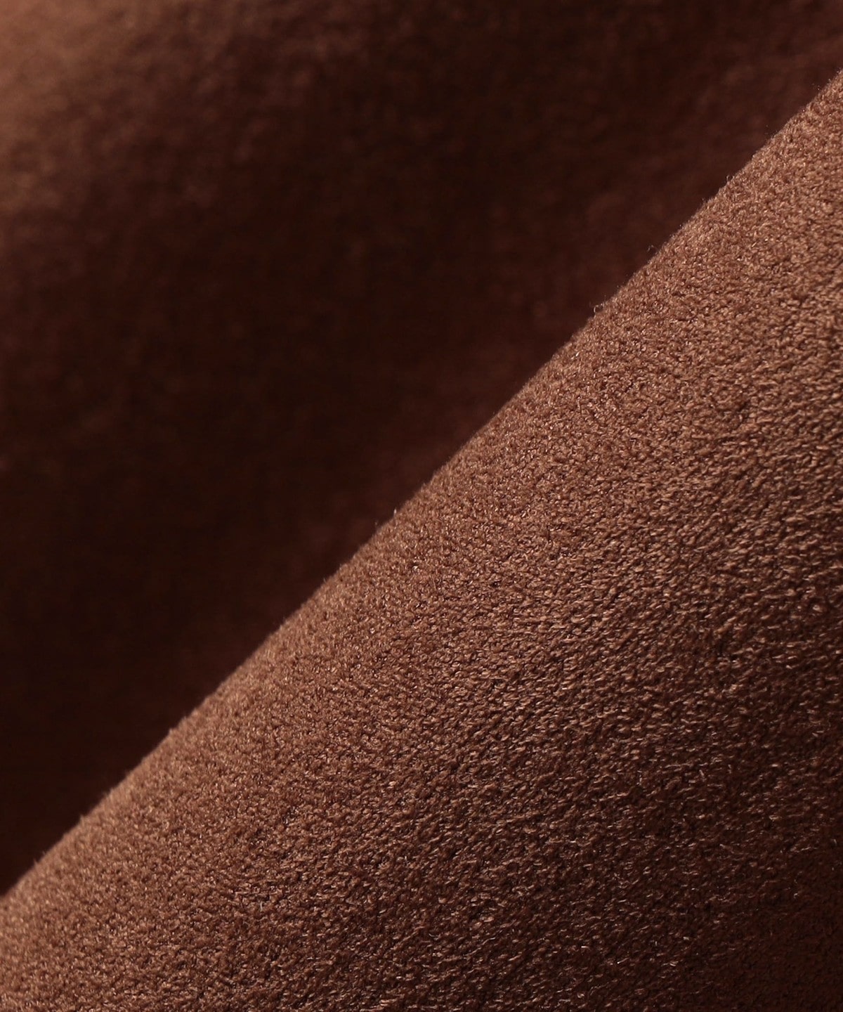やや光沢感のある生地感が上品な印象の、フェイクスエード(ポリエステル)素材を使用。