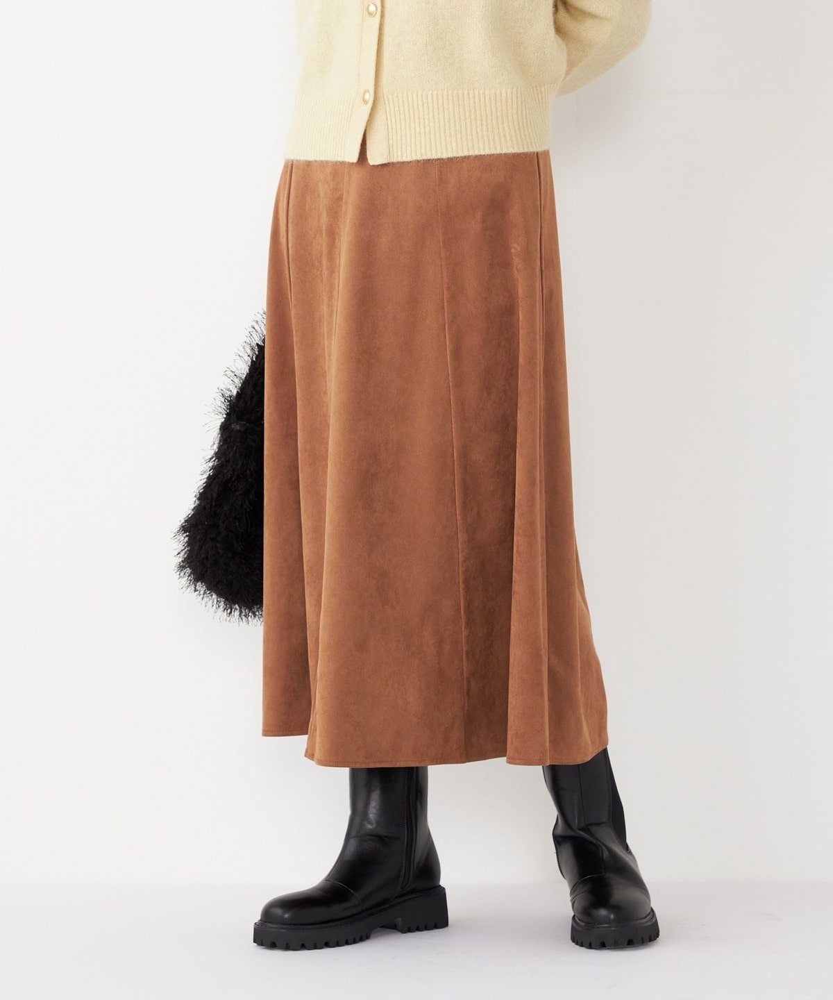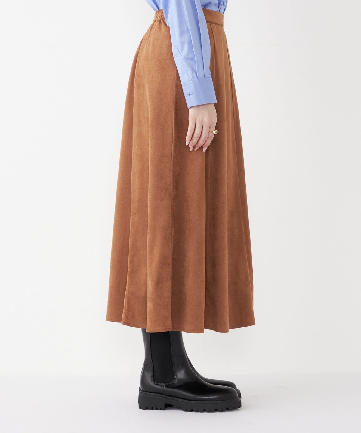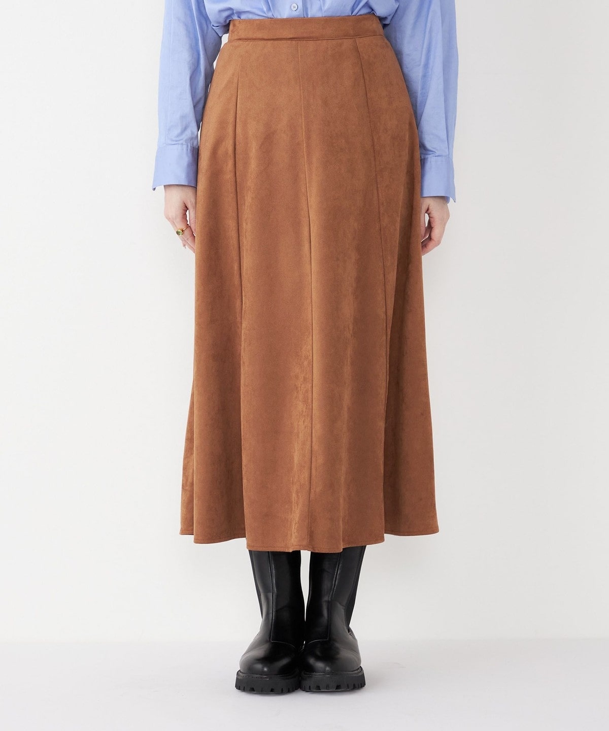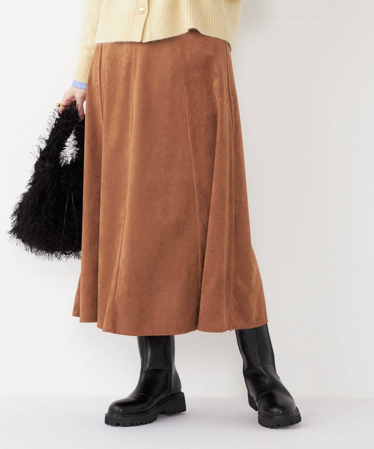 今季注目のフェイクスエード素材を使用したフレアスカート。
