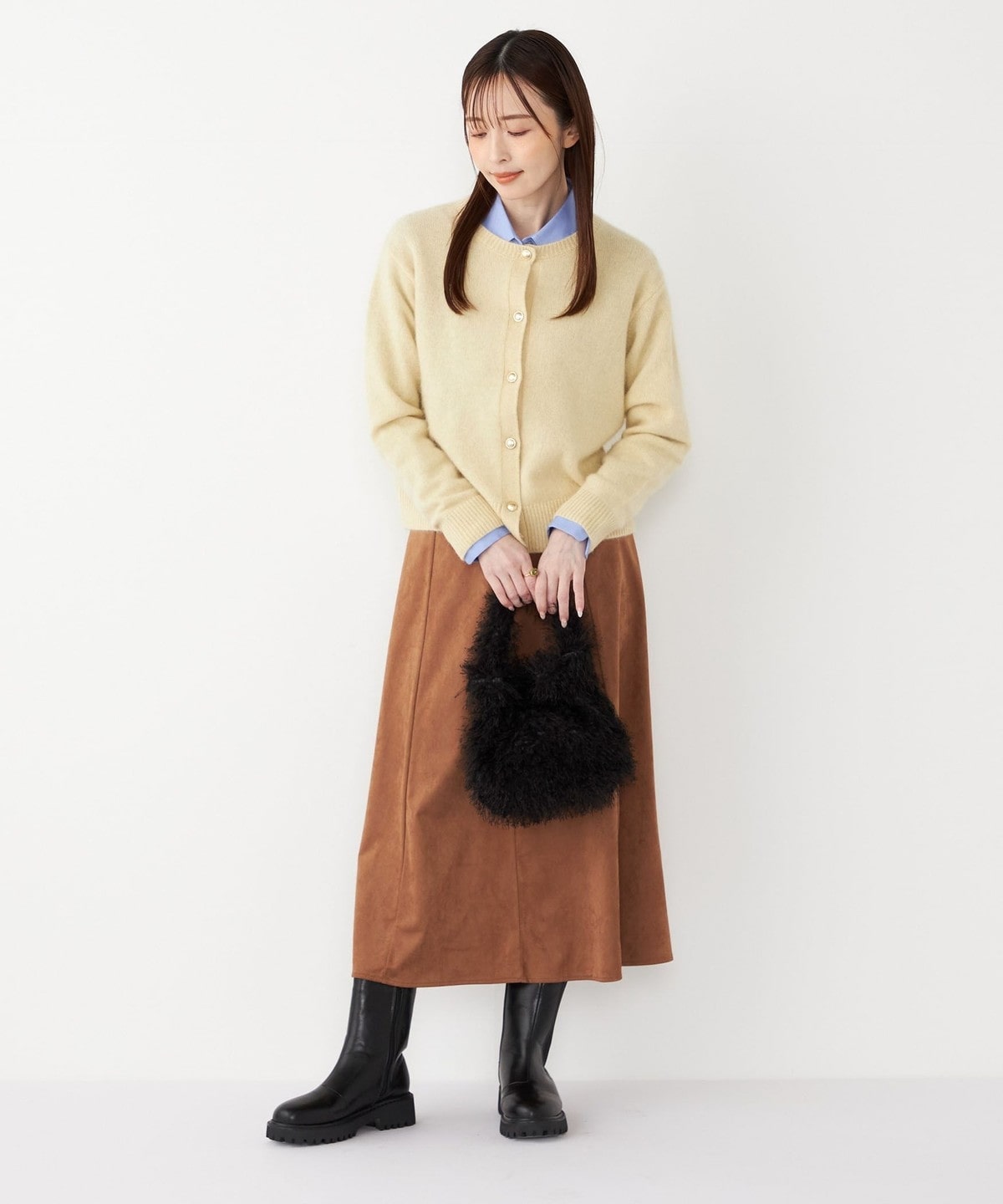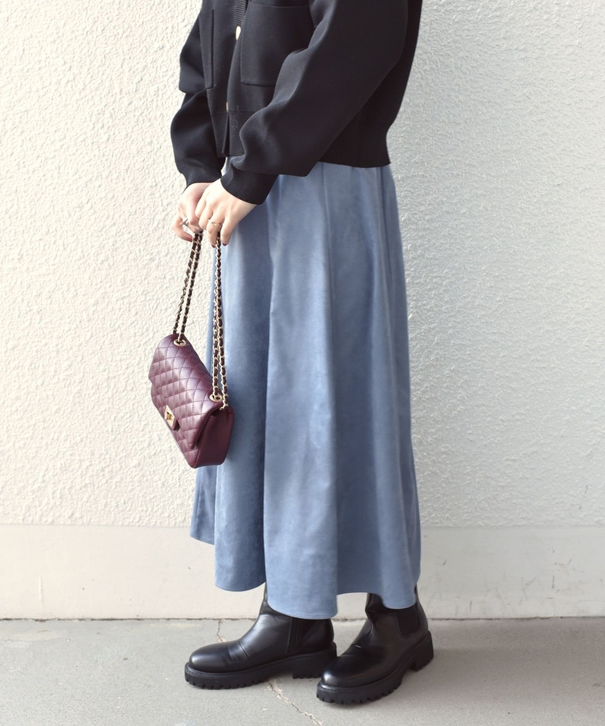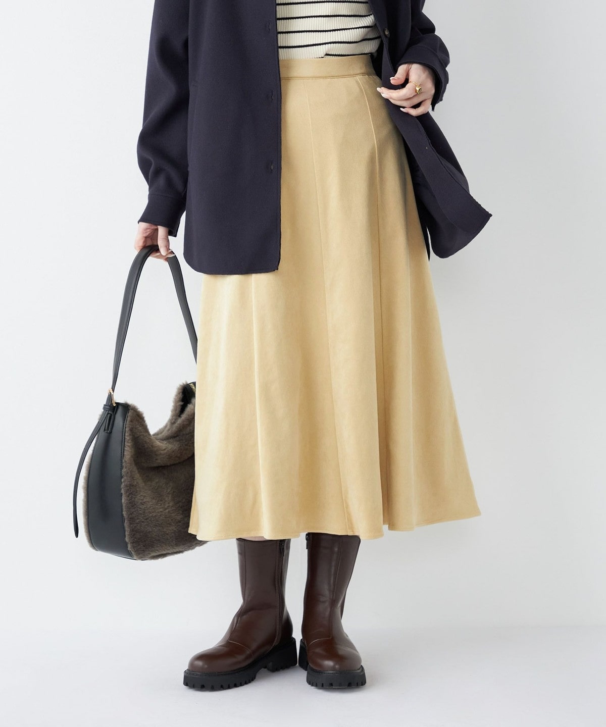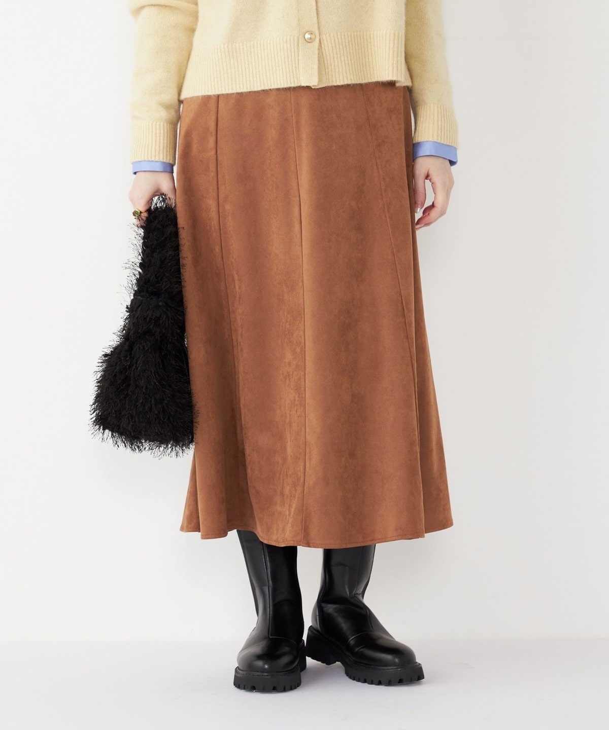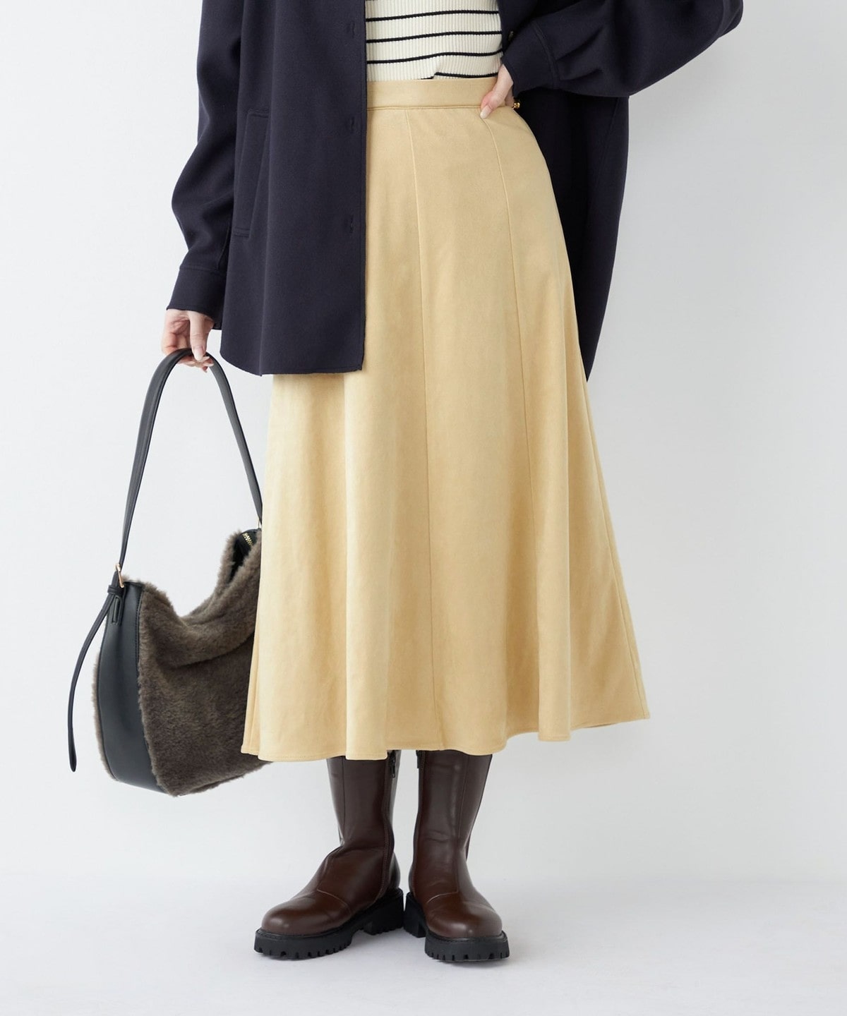 今季注目のフェイクスエード素材を使用したフレアスカート。