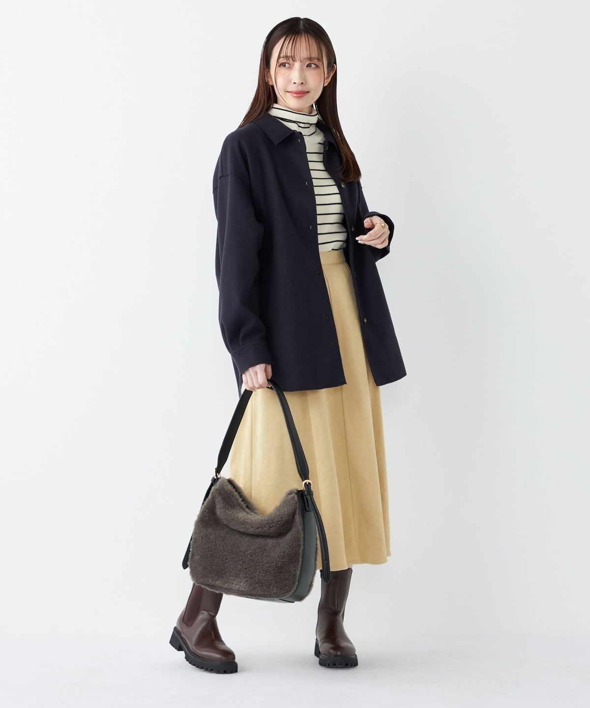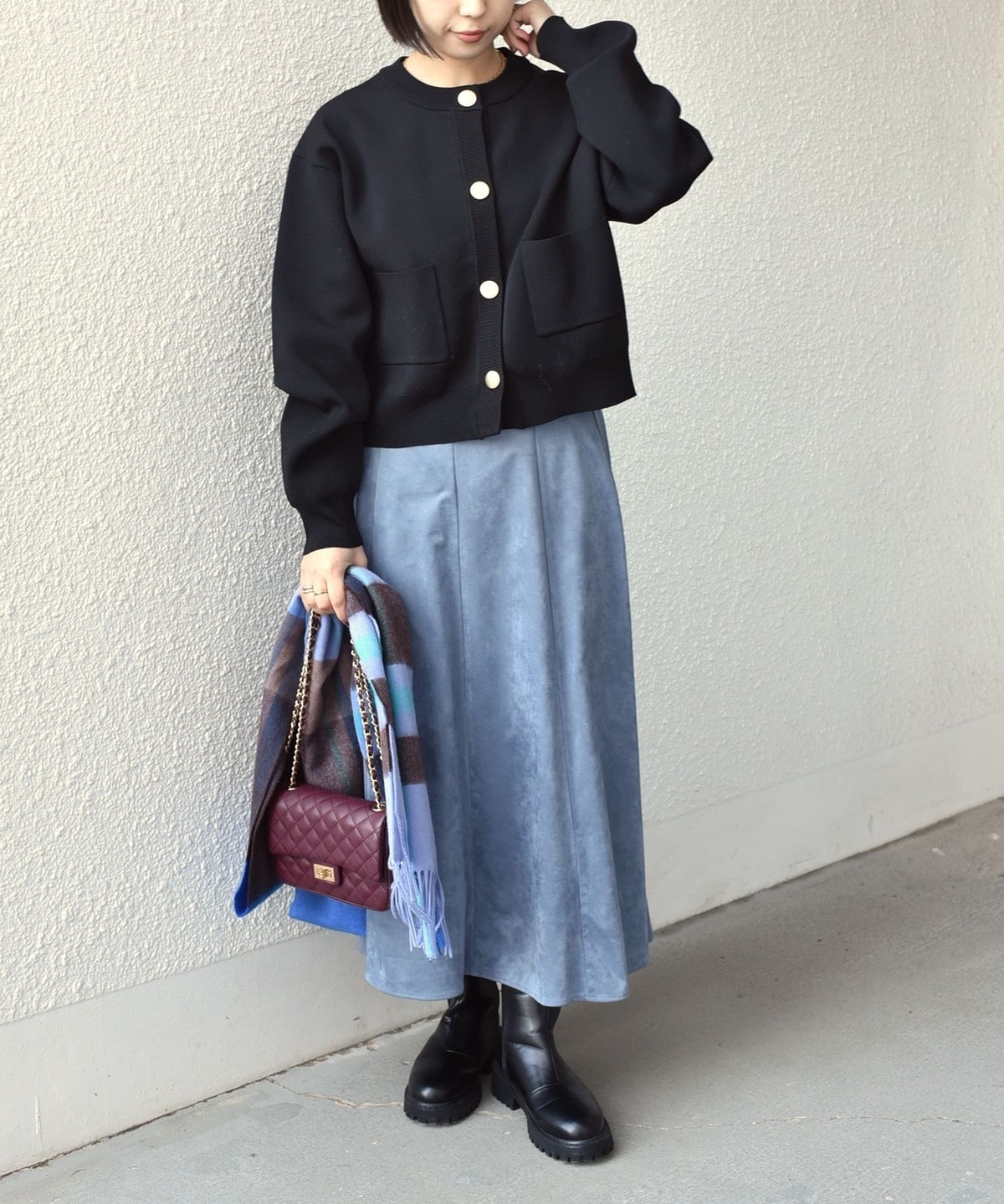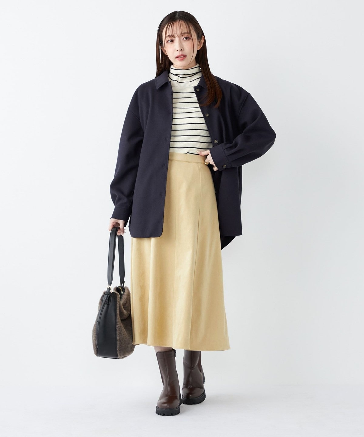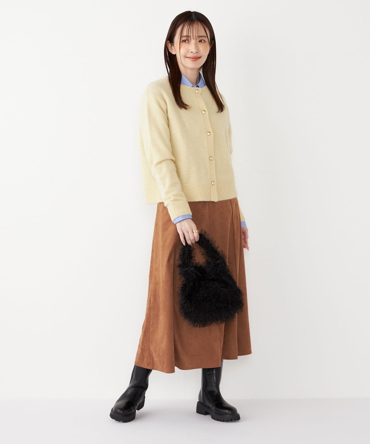 今季注目のフェイクスエード素材を使用したフレアスカート。