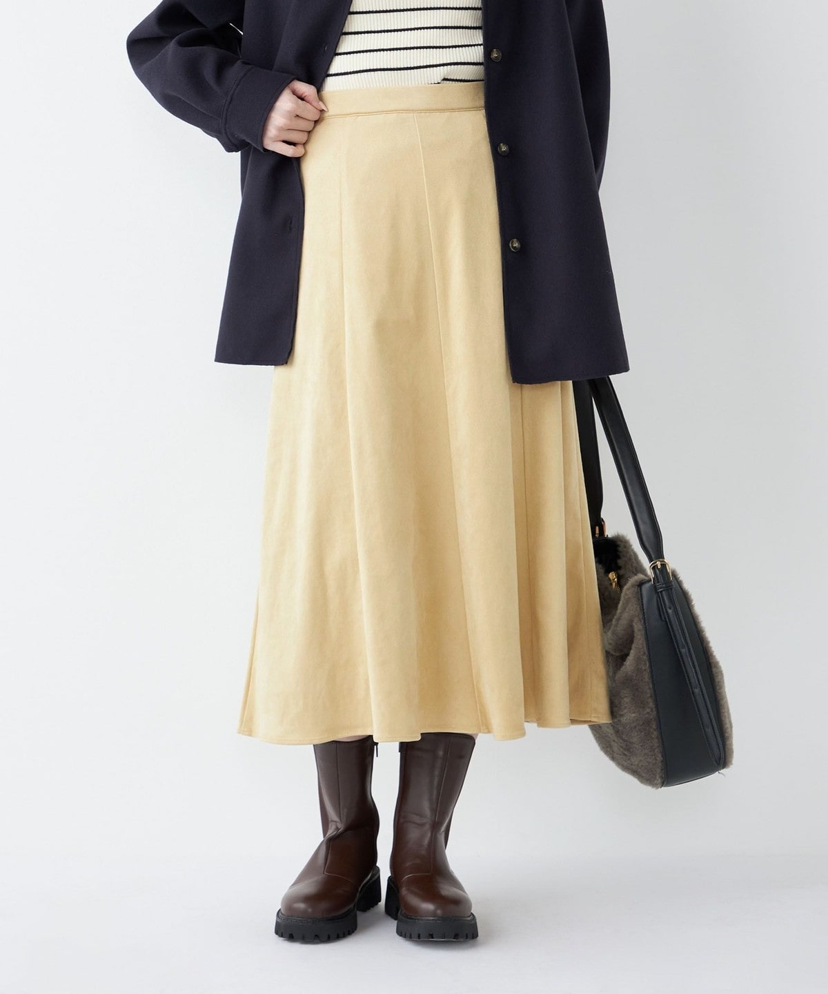 SHIPS Colors:〈手洗い可能〉フェイクスエード(ポリエステル)フレアスカート