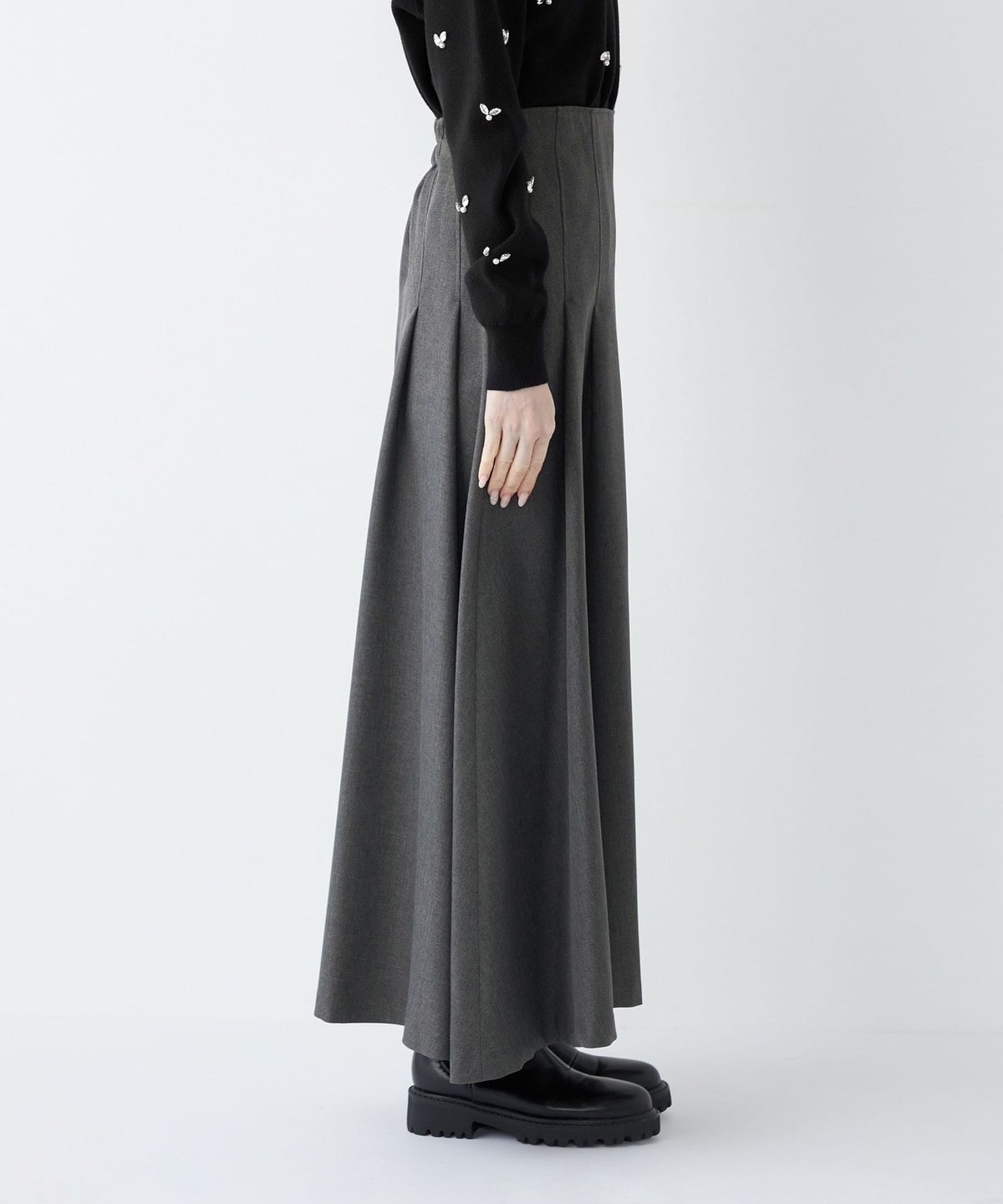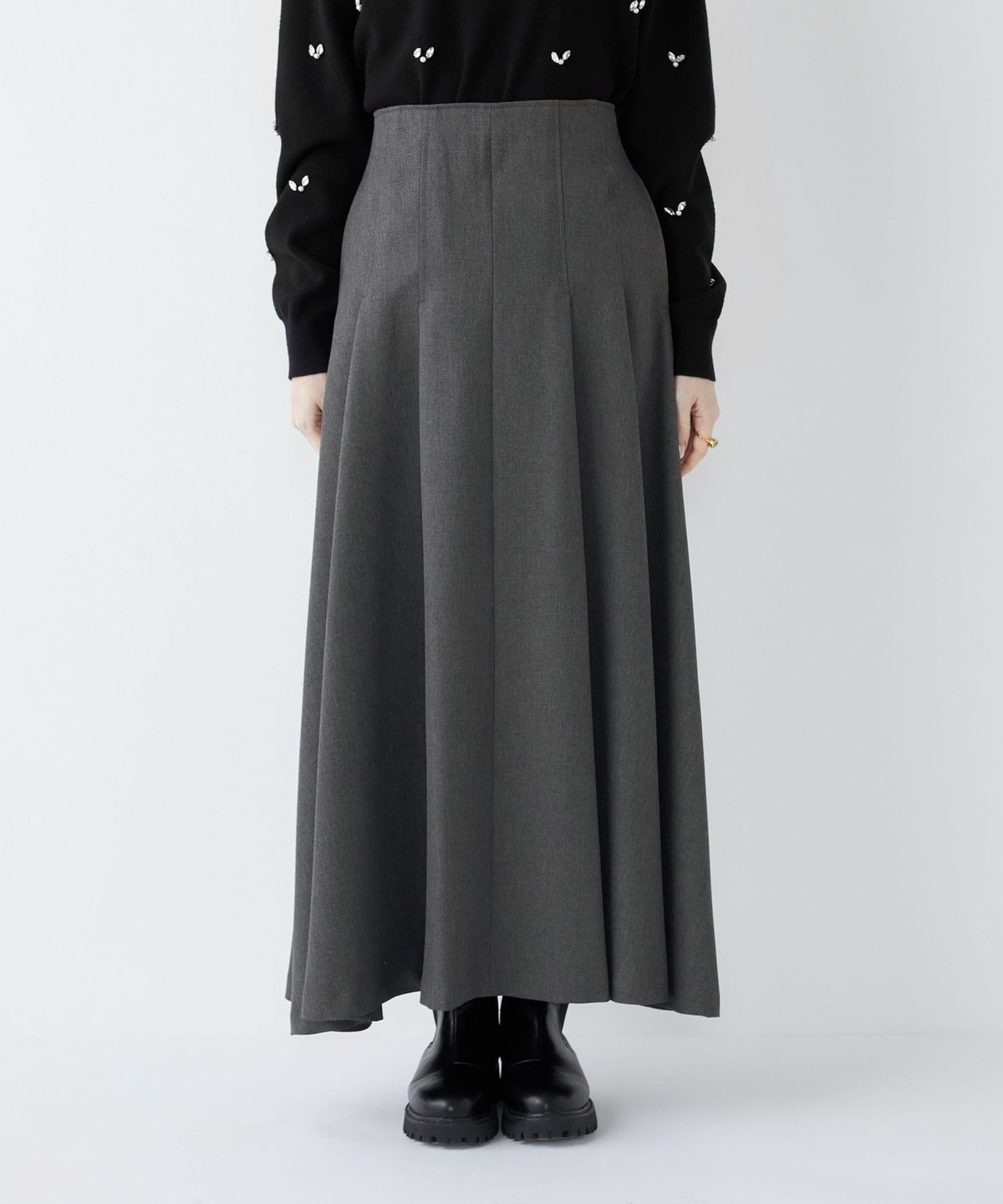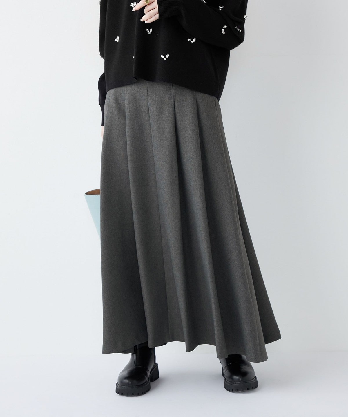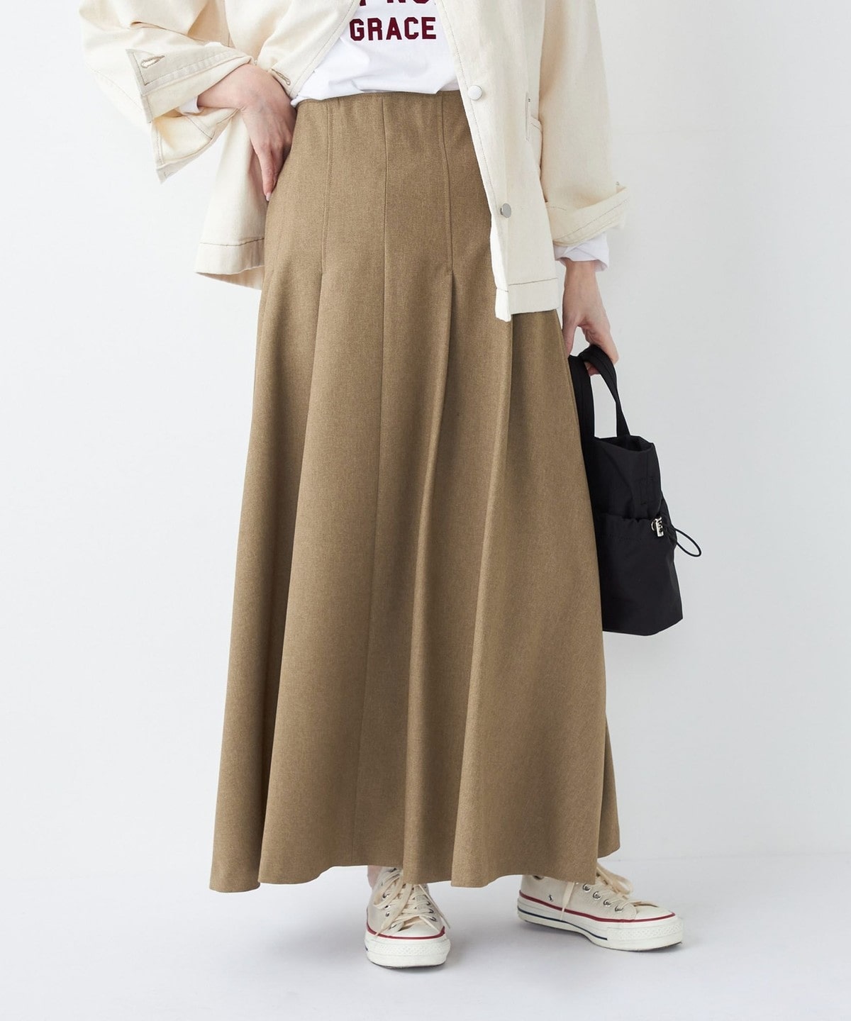 前後に抑えめのインタックを入れることで、すっきりとしたシルエットに仕上げたフレアスカート。