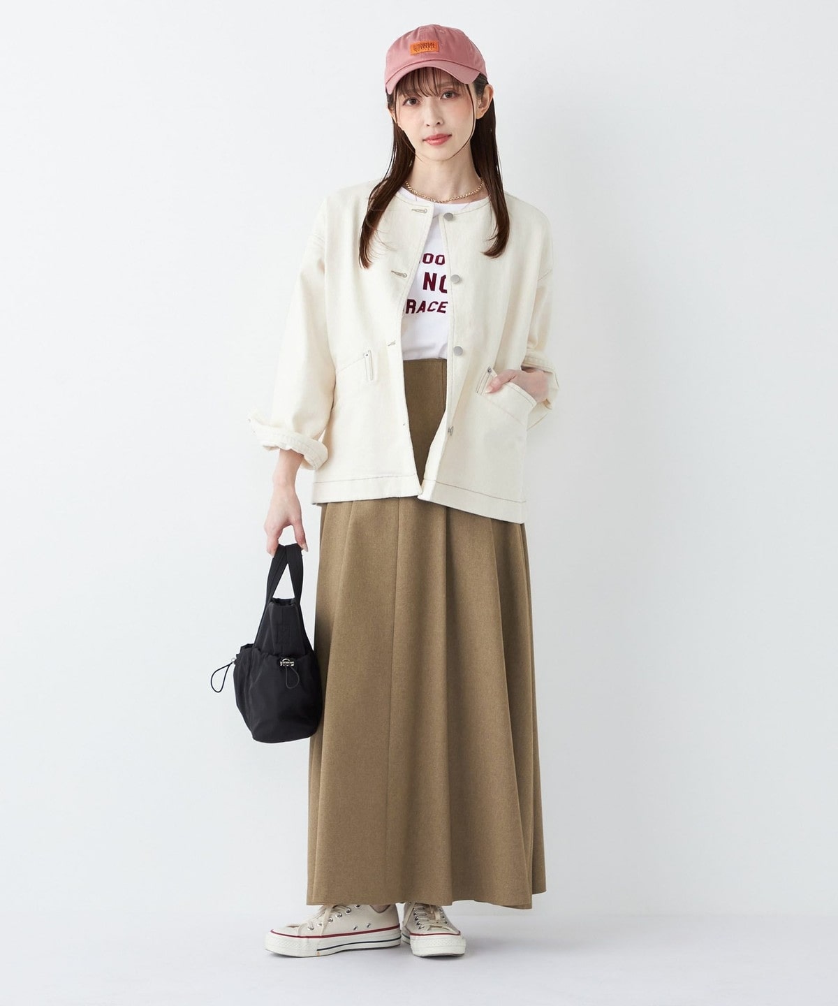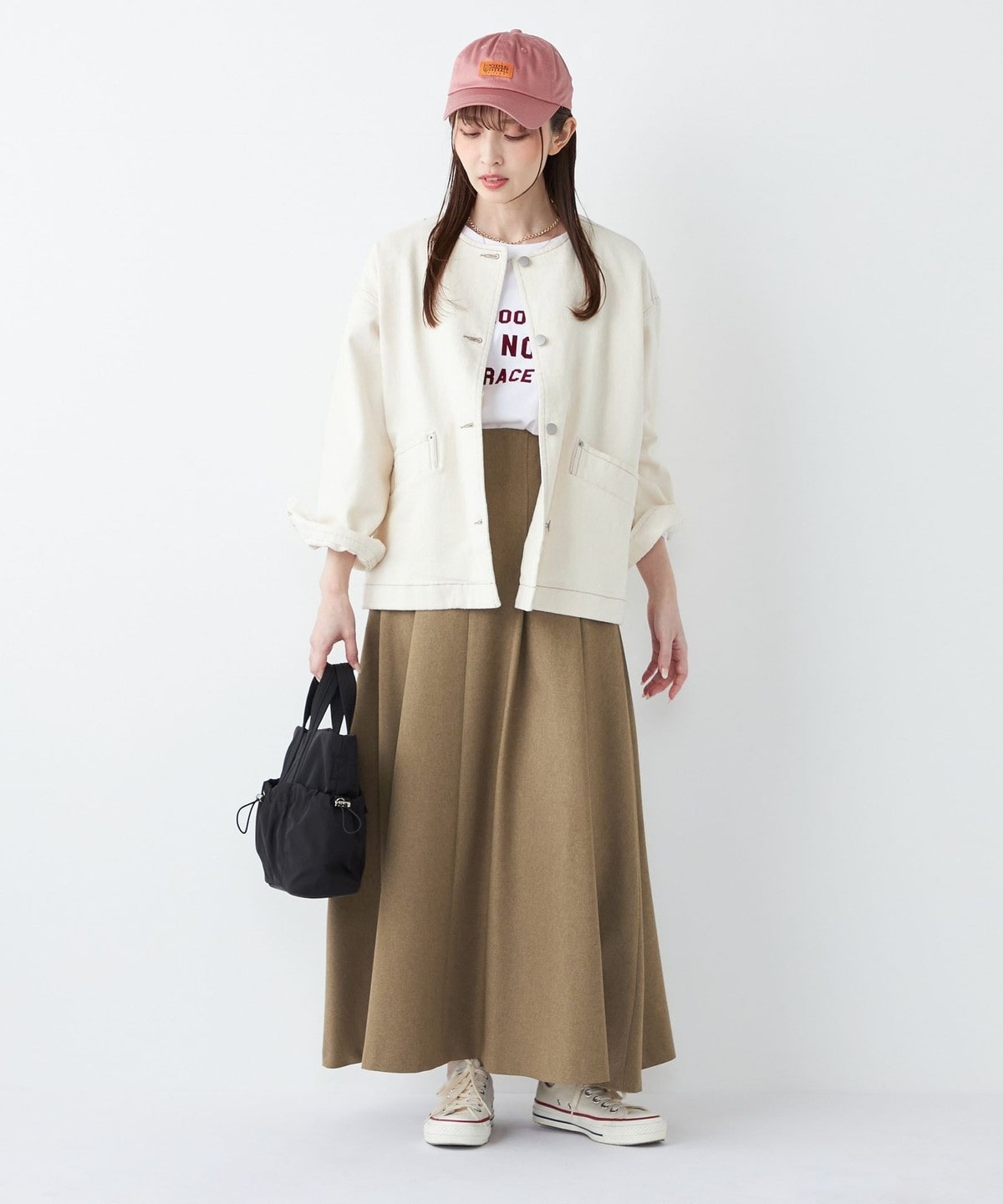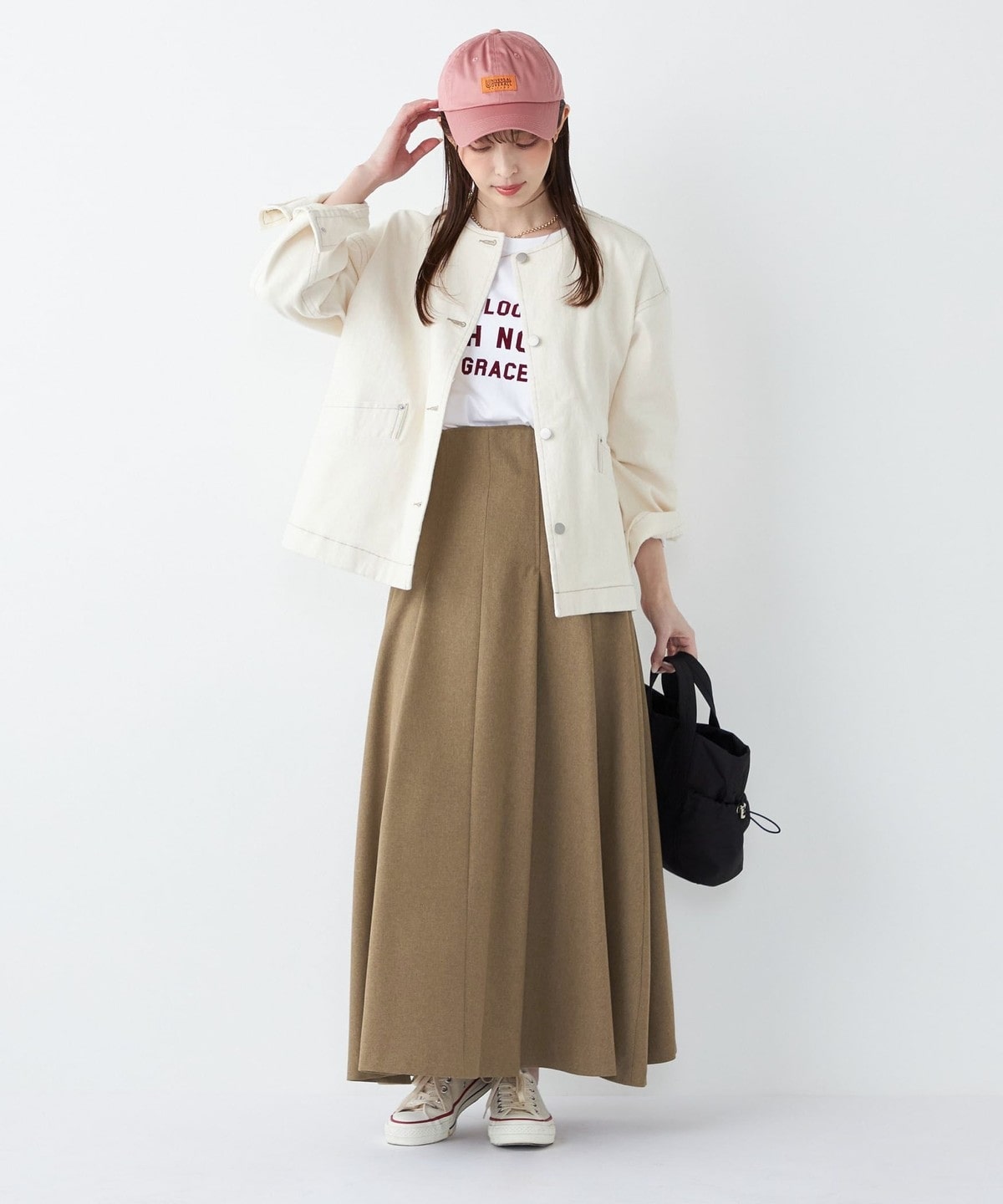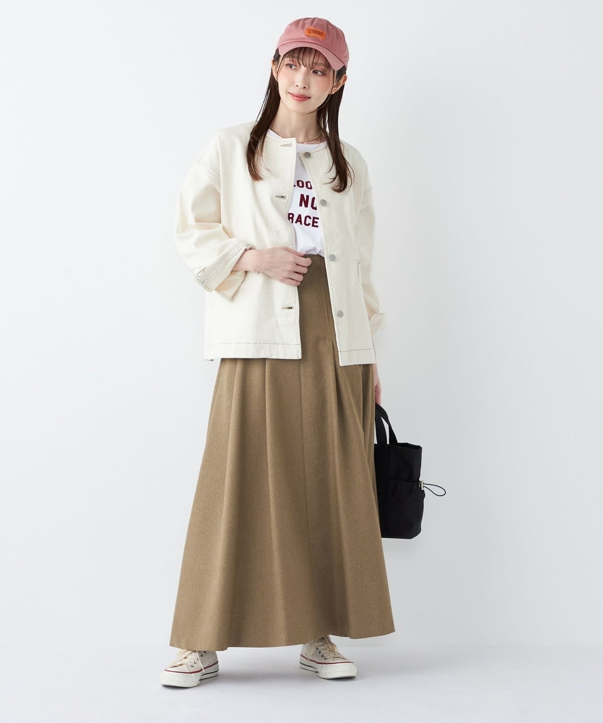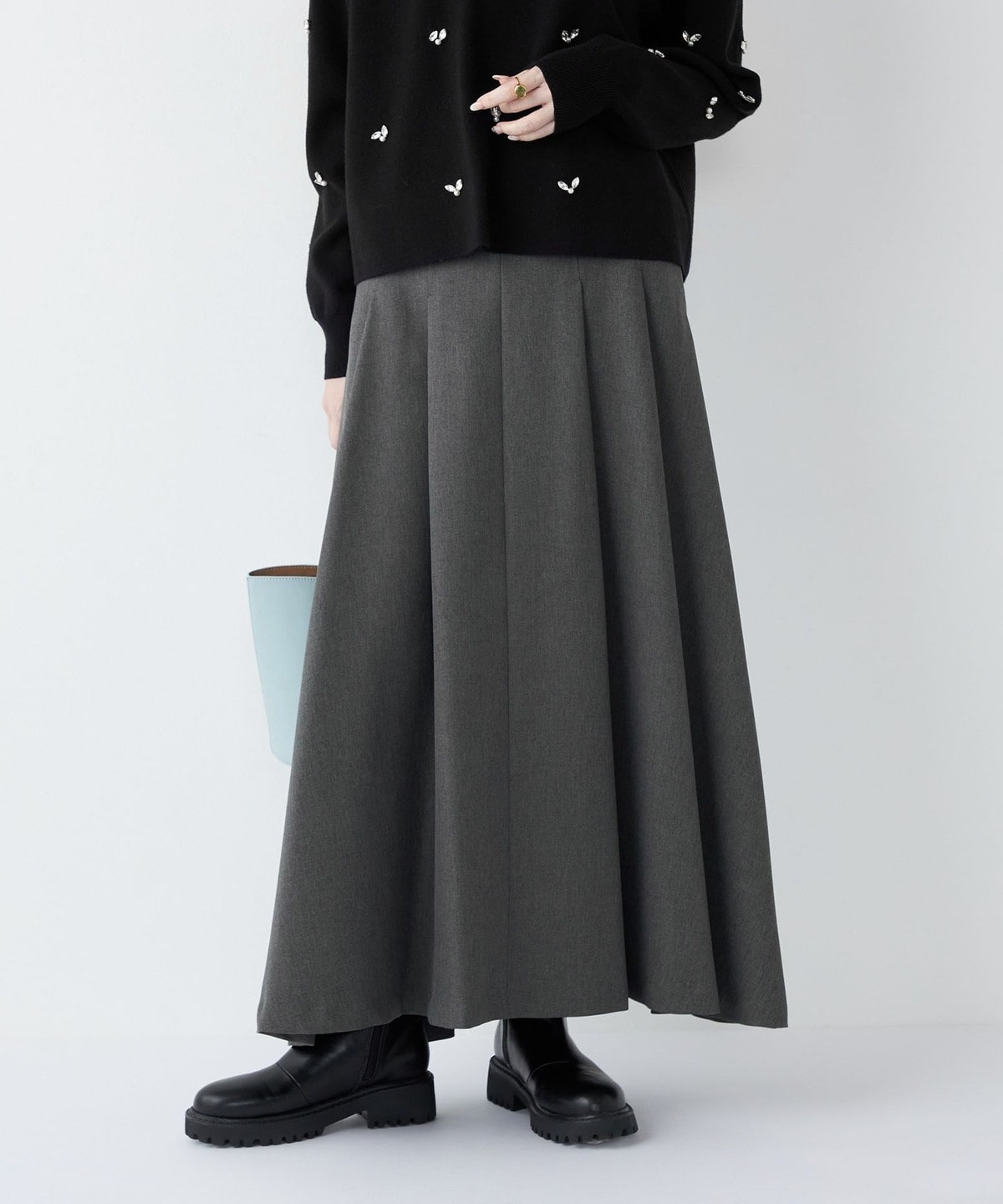前後に抑えめのインタックを入れることで、すっきりとしたシルエットに仕上げたフレアスカート。