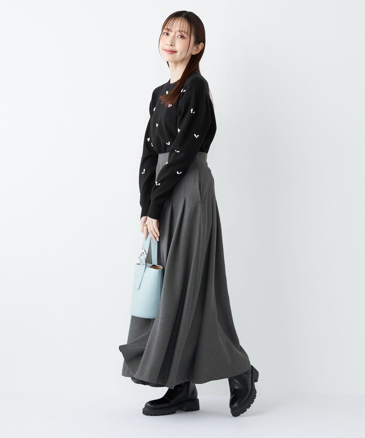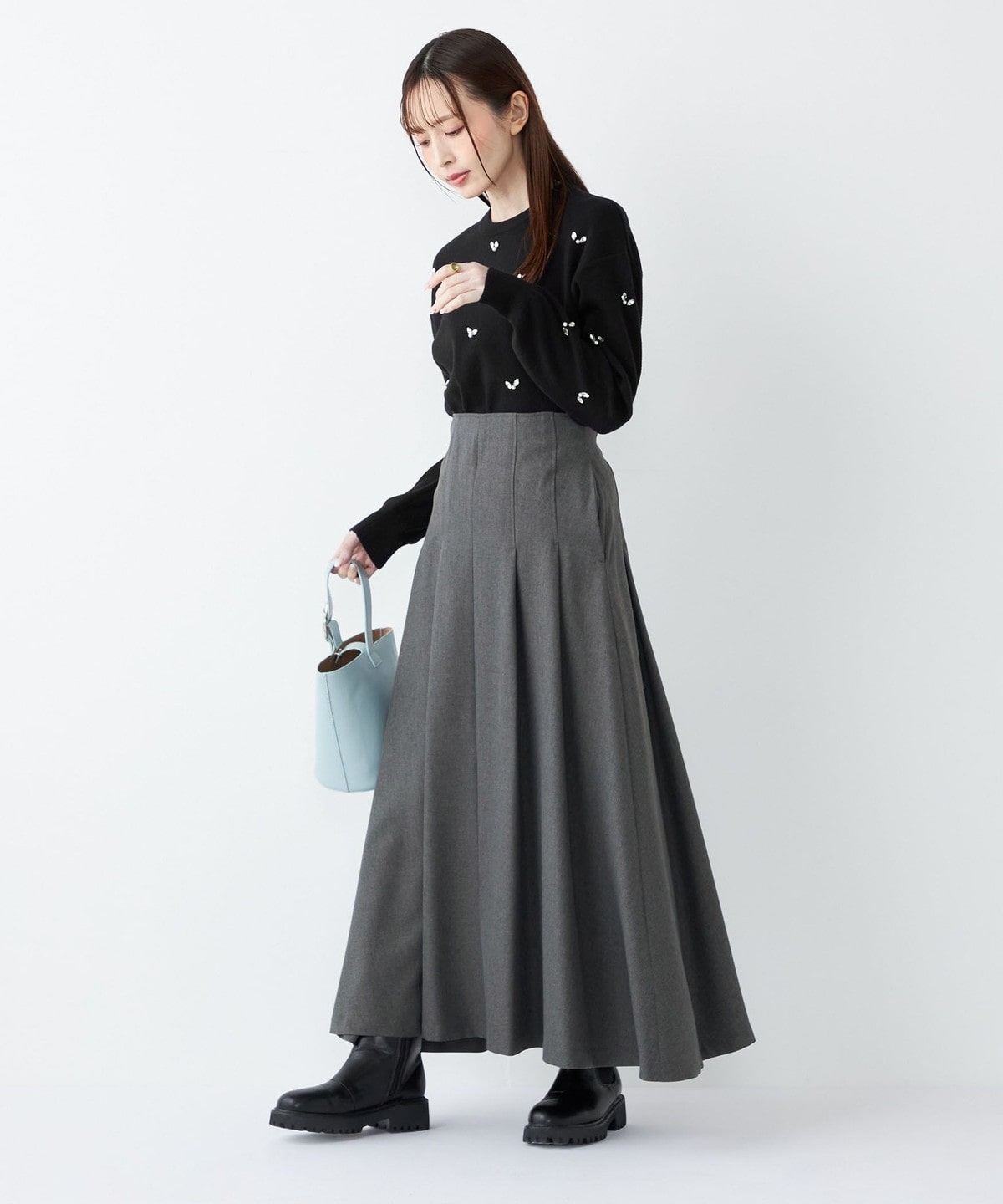 女性らしい揺れ感が魅力のマキシ丈フレアスカート。