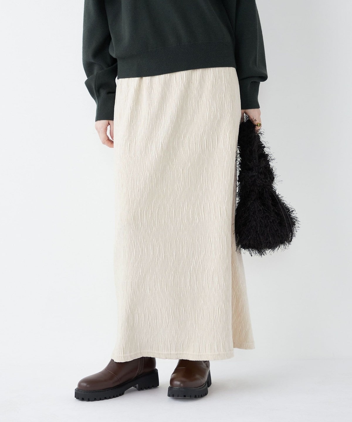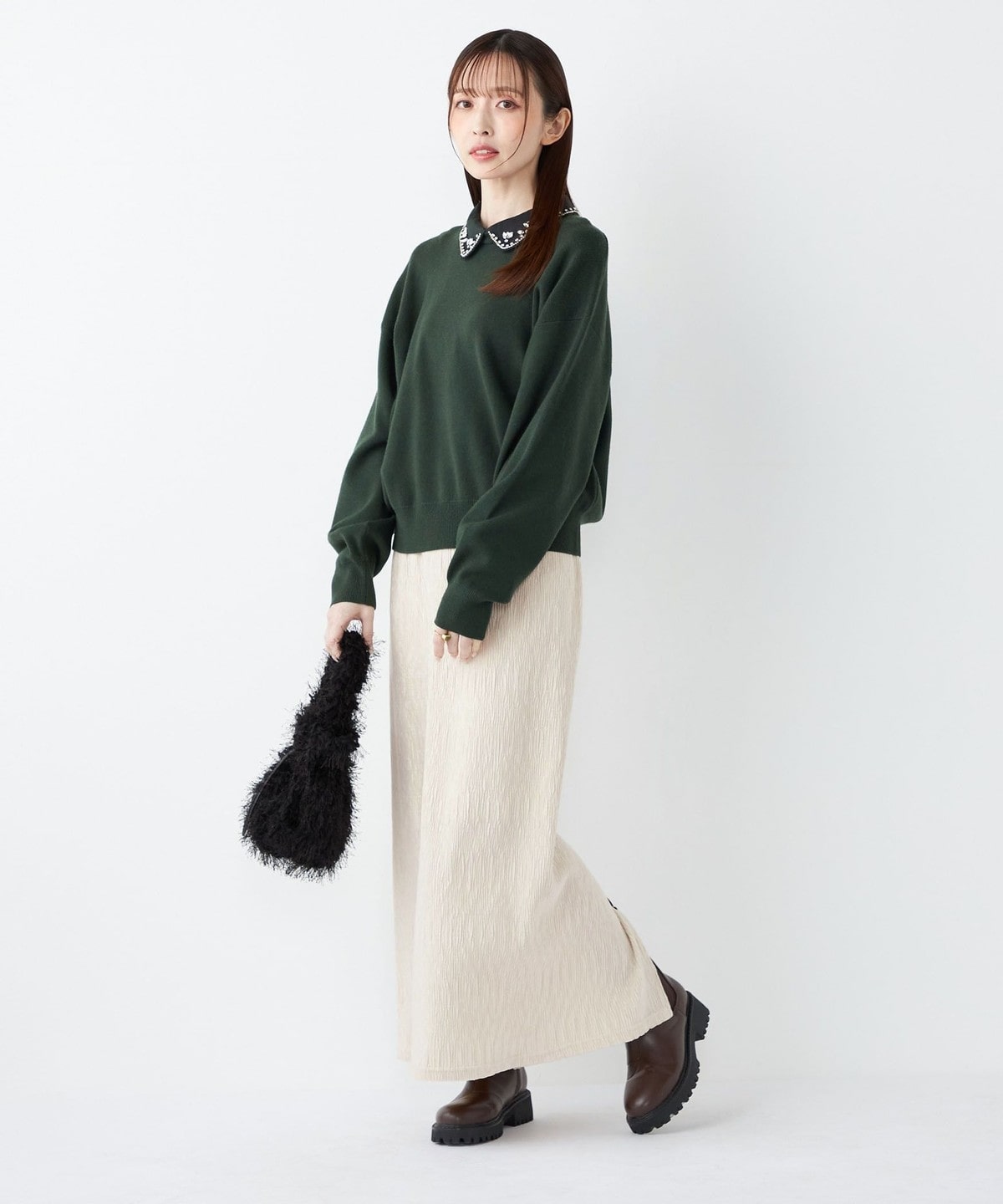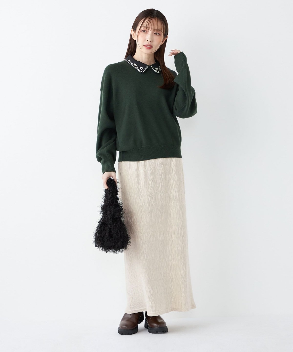 ブラックやブラウンはベーシックで着こなしやすく、オフホワイトとピンクは冬の差し色として華やかさをプラスしてくれます。