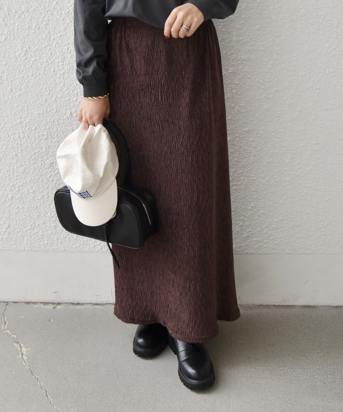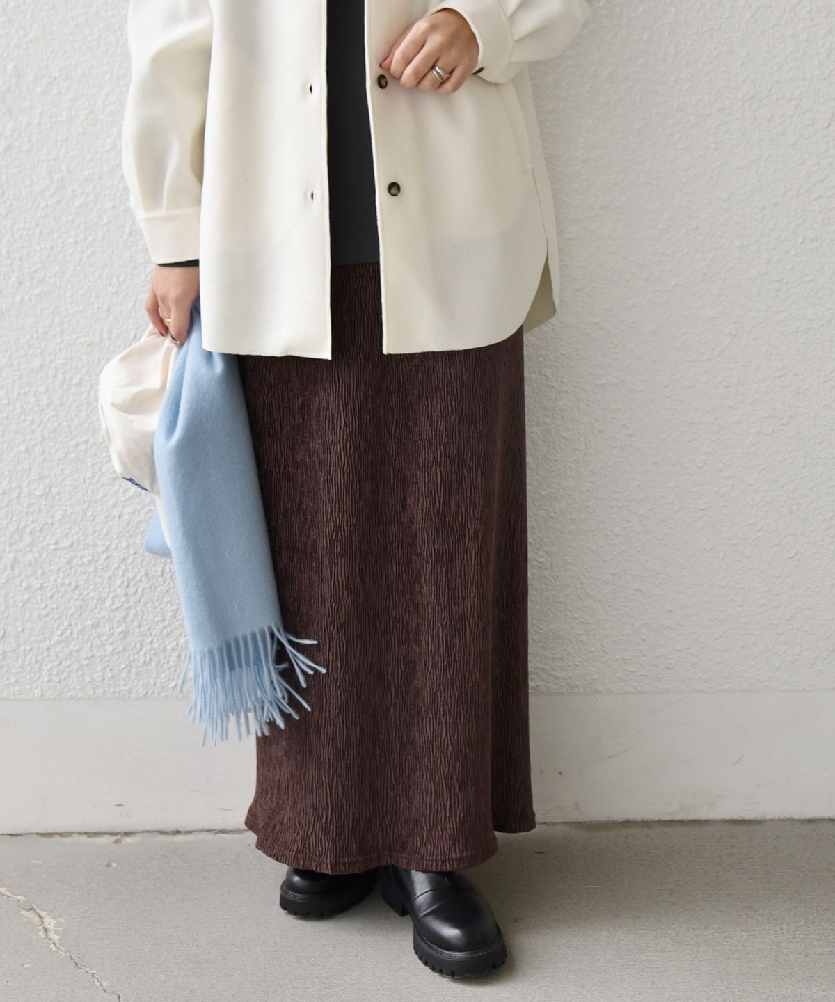お食事などのきれいめなスタイルから、スウェットやブーツを合わせた大人カジュアルまで幅広く着回せる1枚。