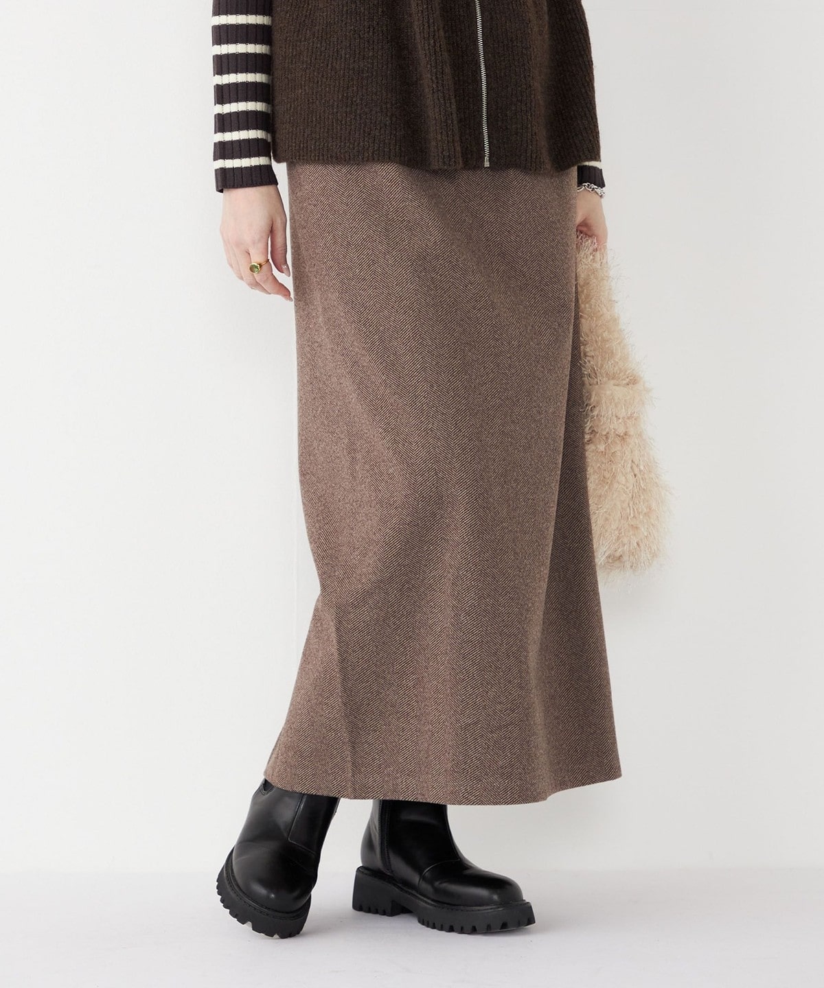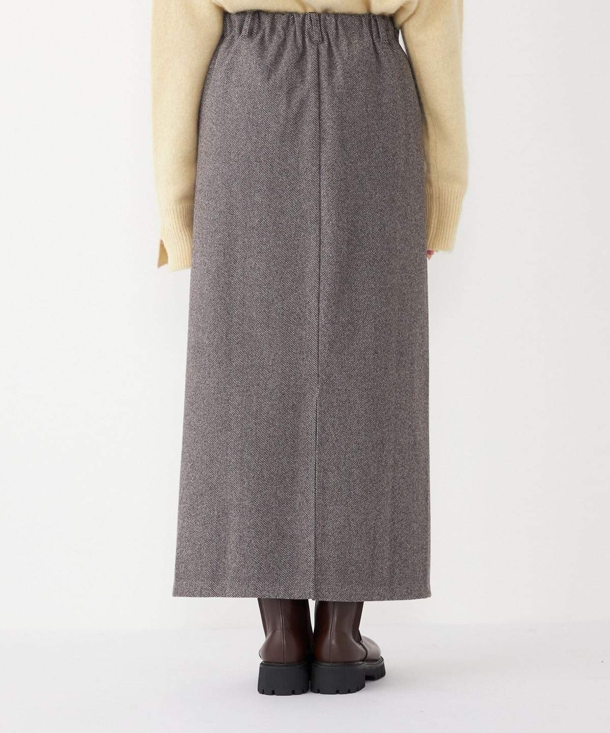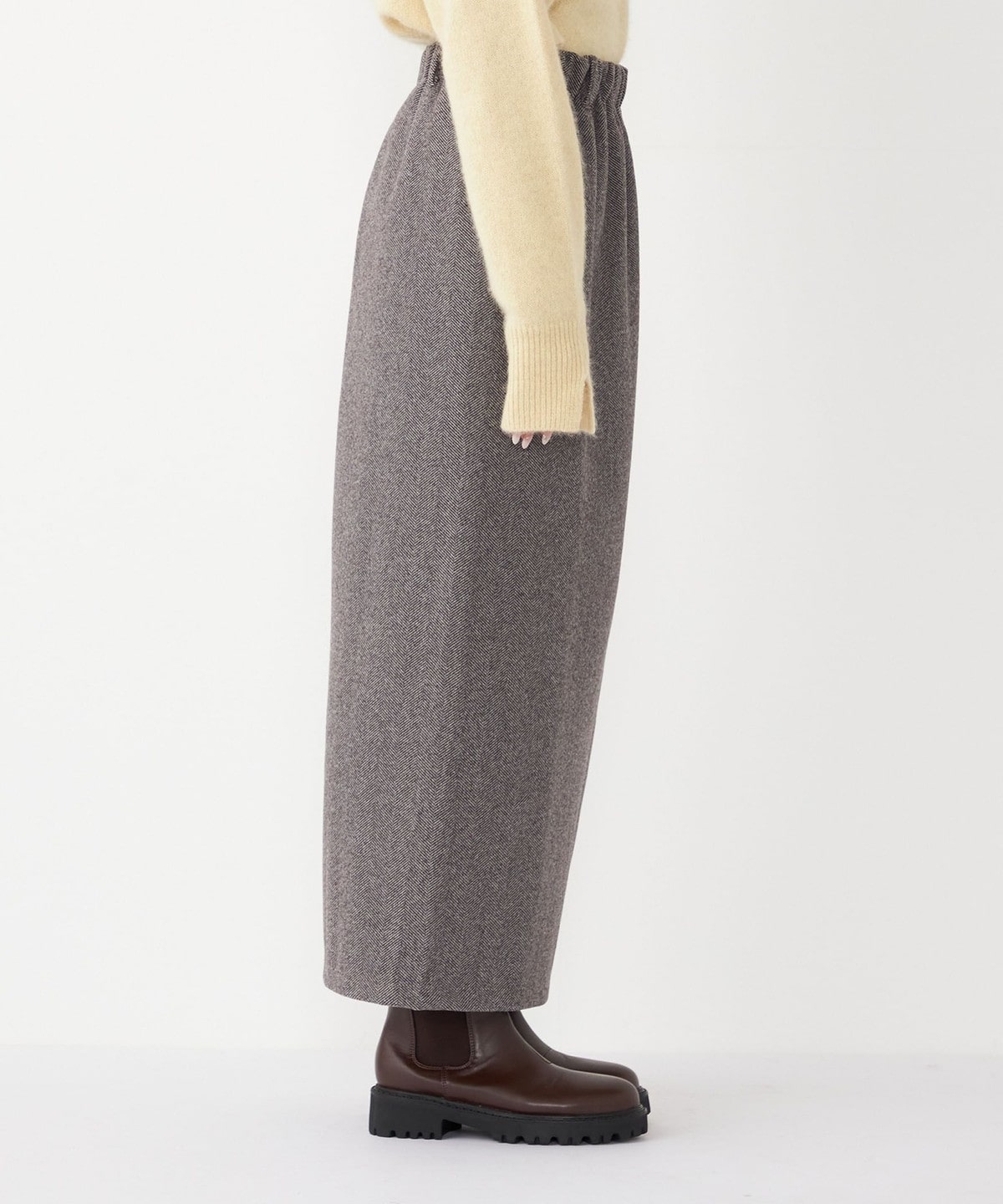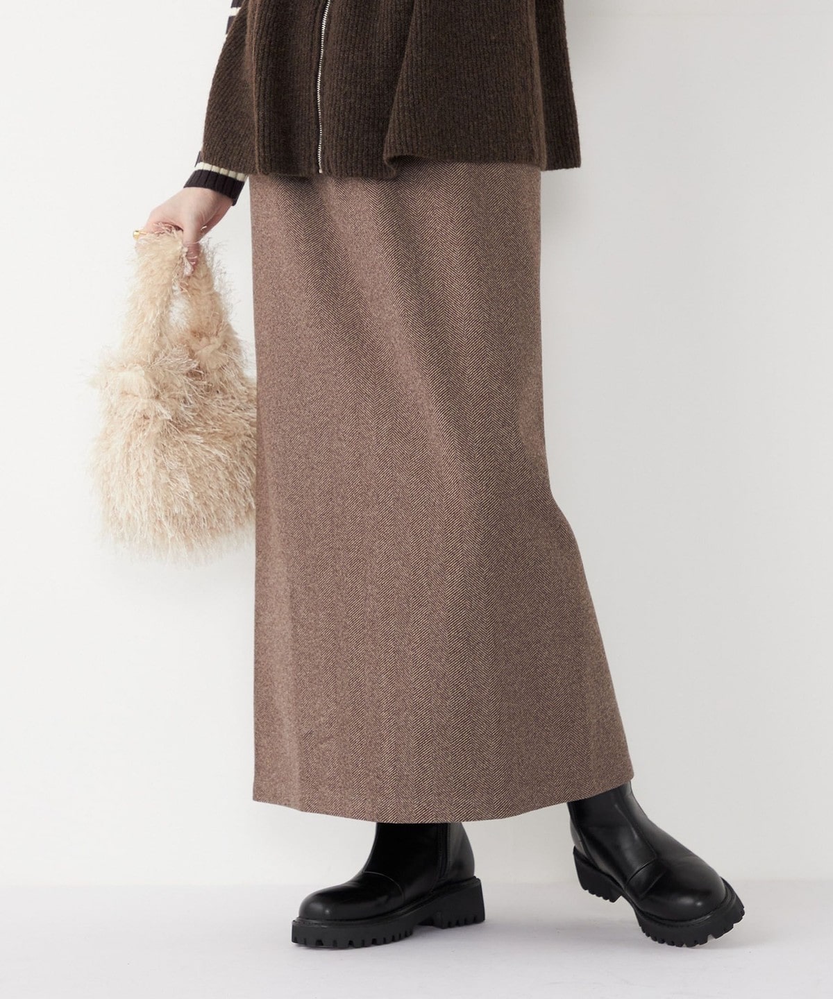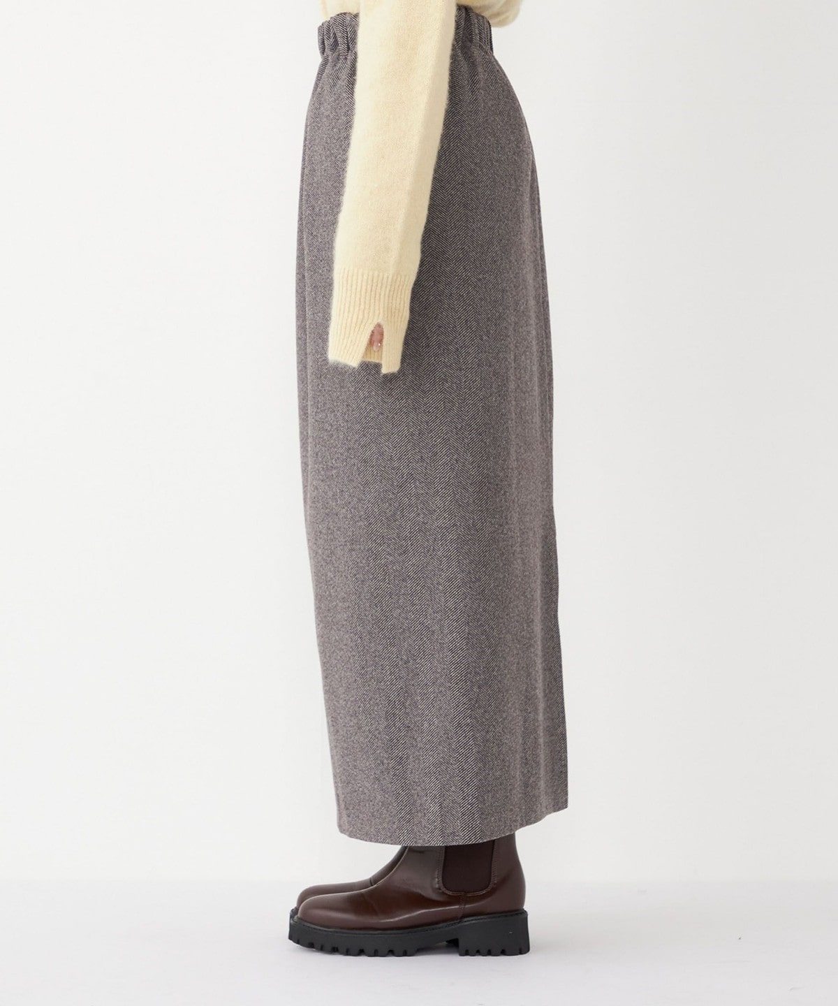 暖かみのある素材感と、ジャージー素材ならではの快適さを備えたタイトスカート。