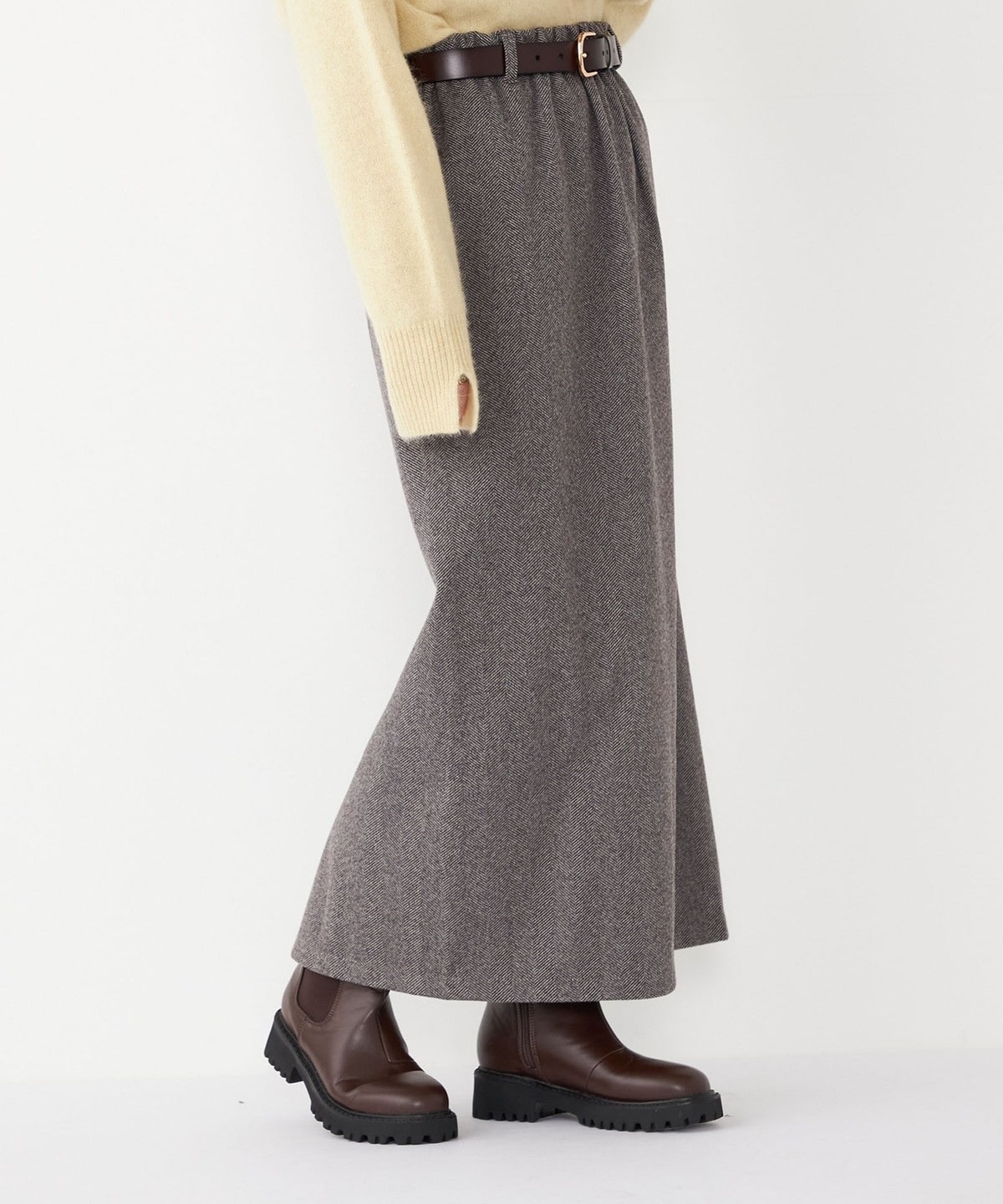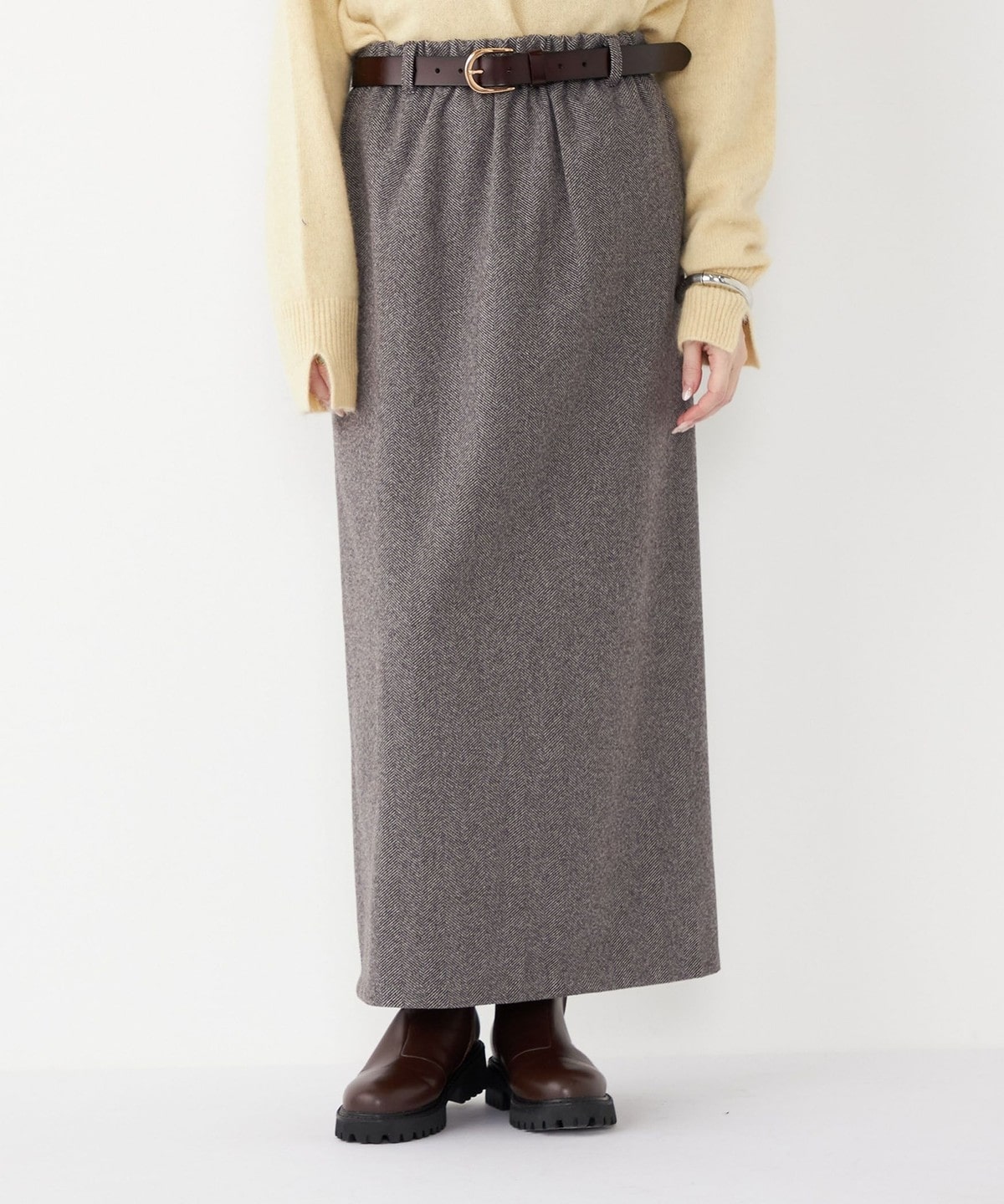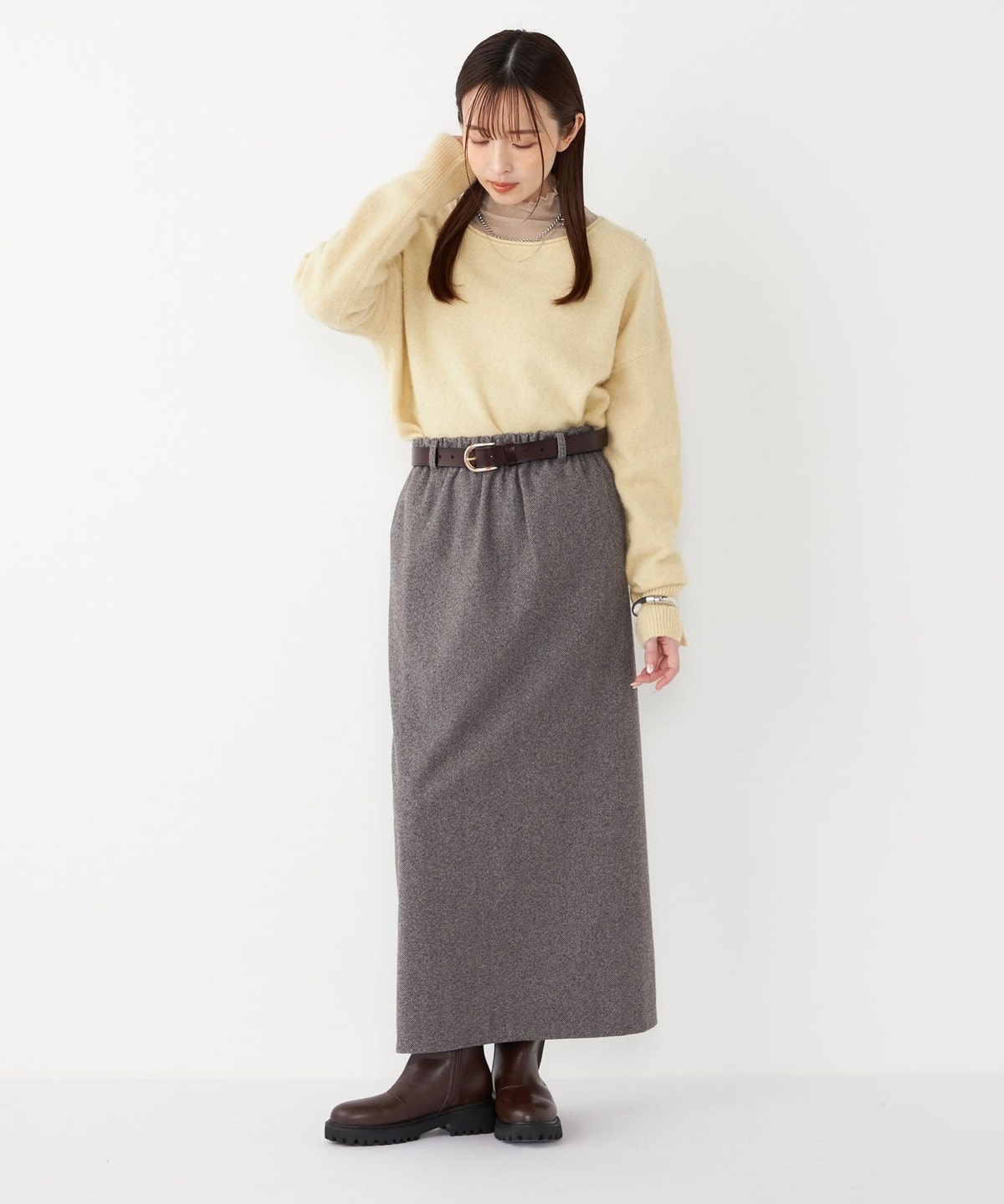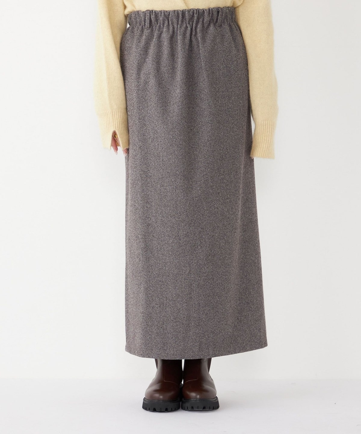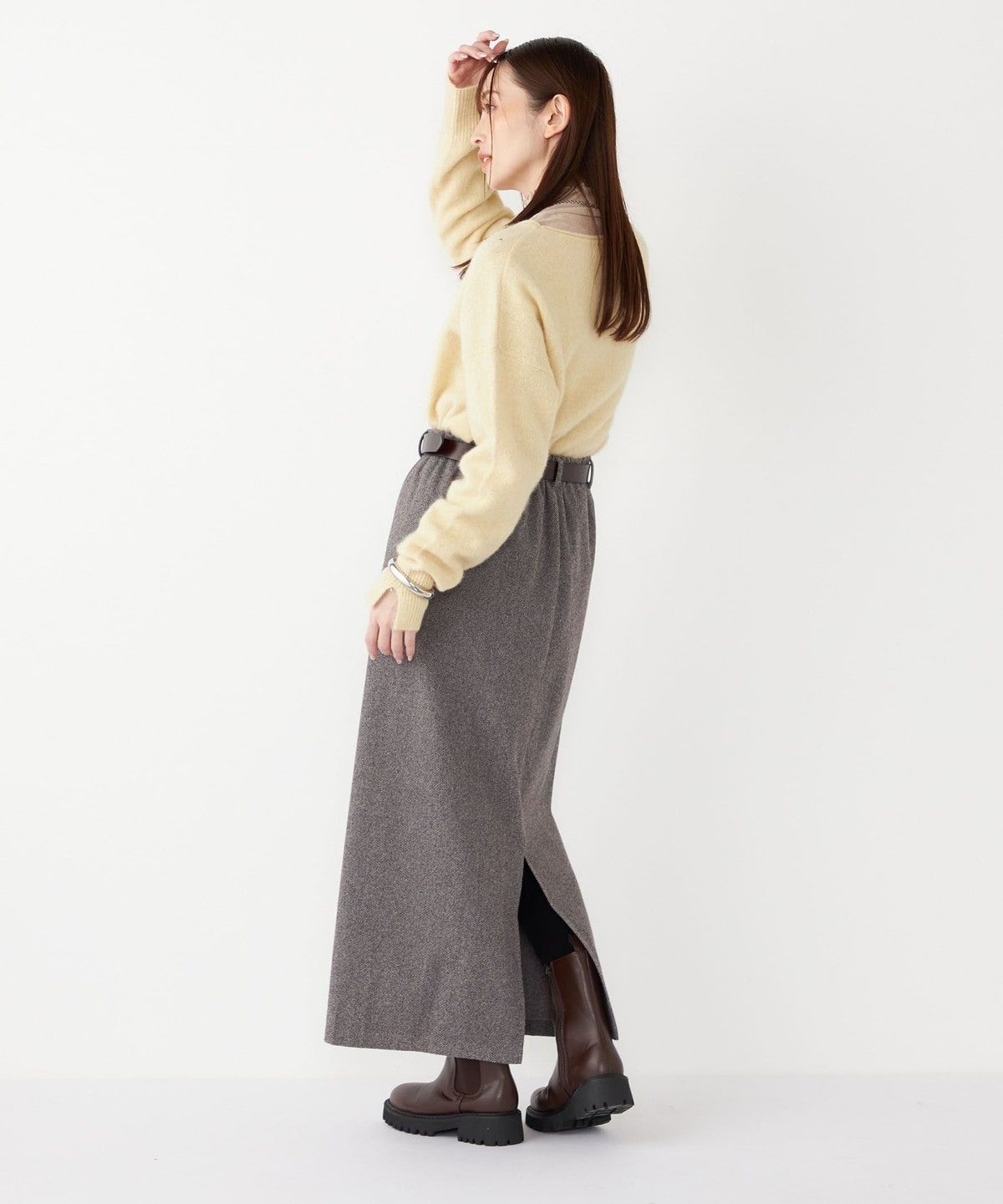 暖かみのある素材感と、ジャージー素材ならではの快適さを備えたタイトスカート。