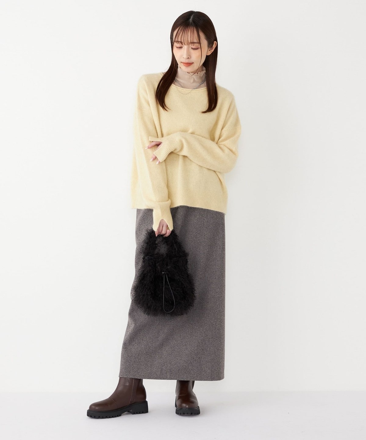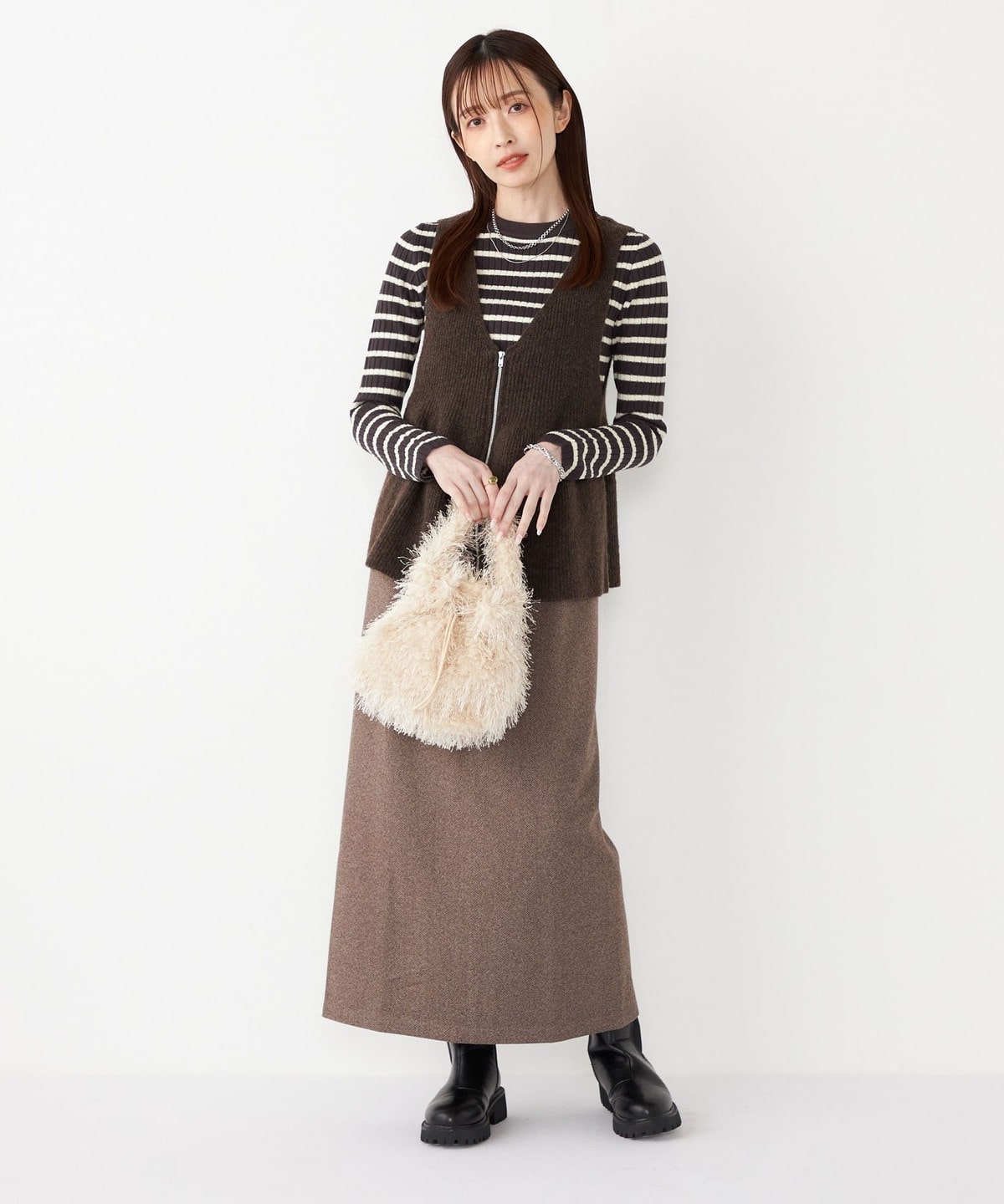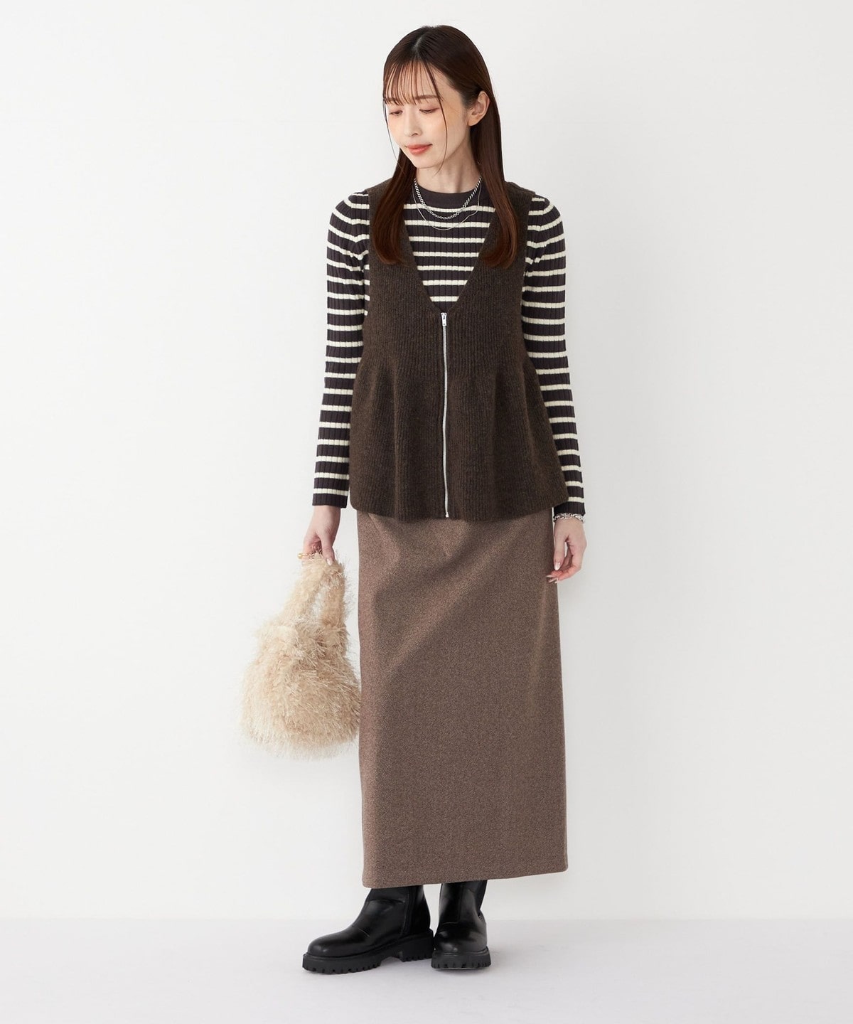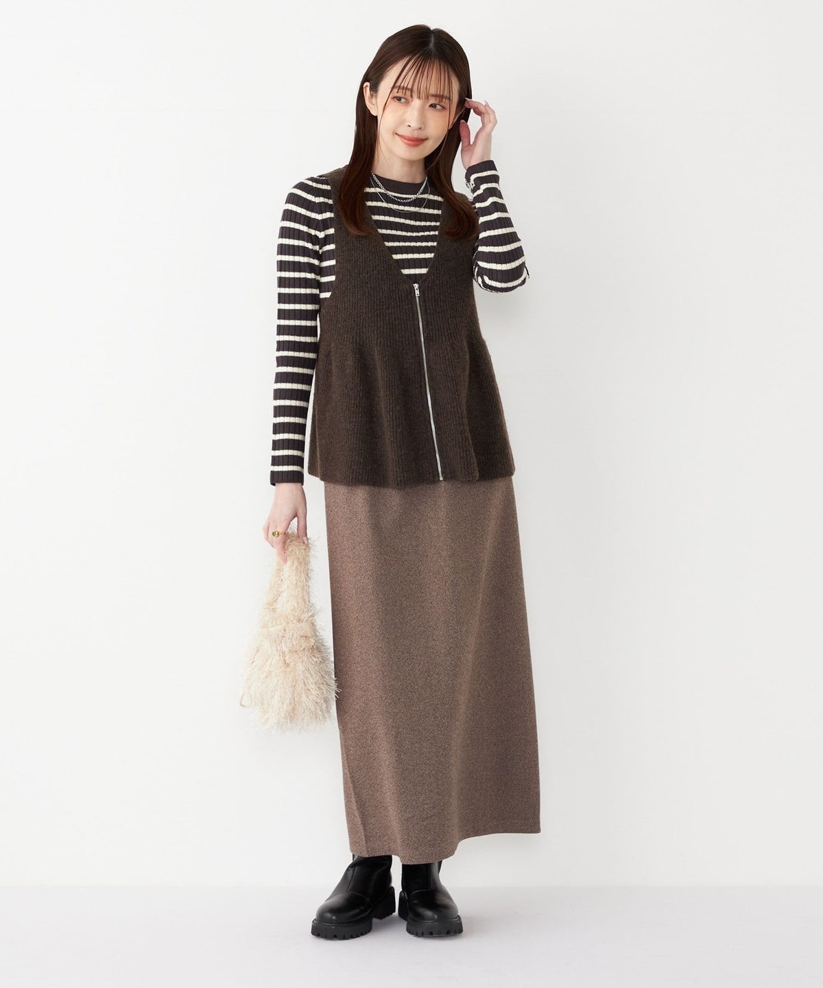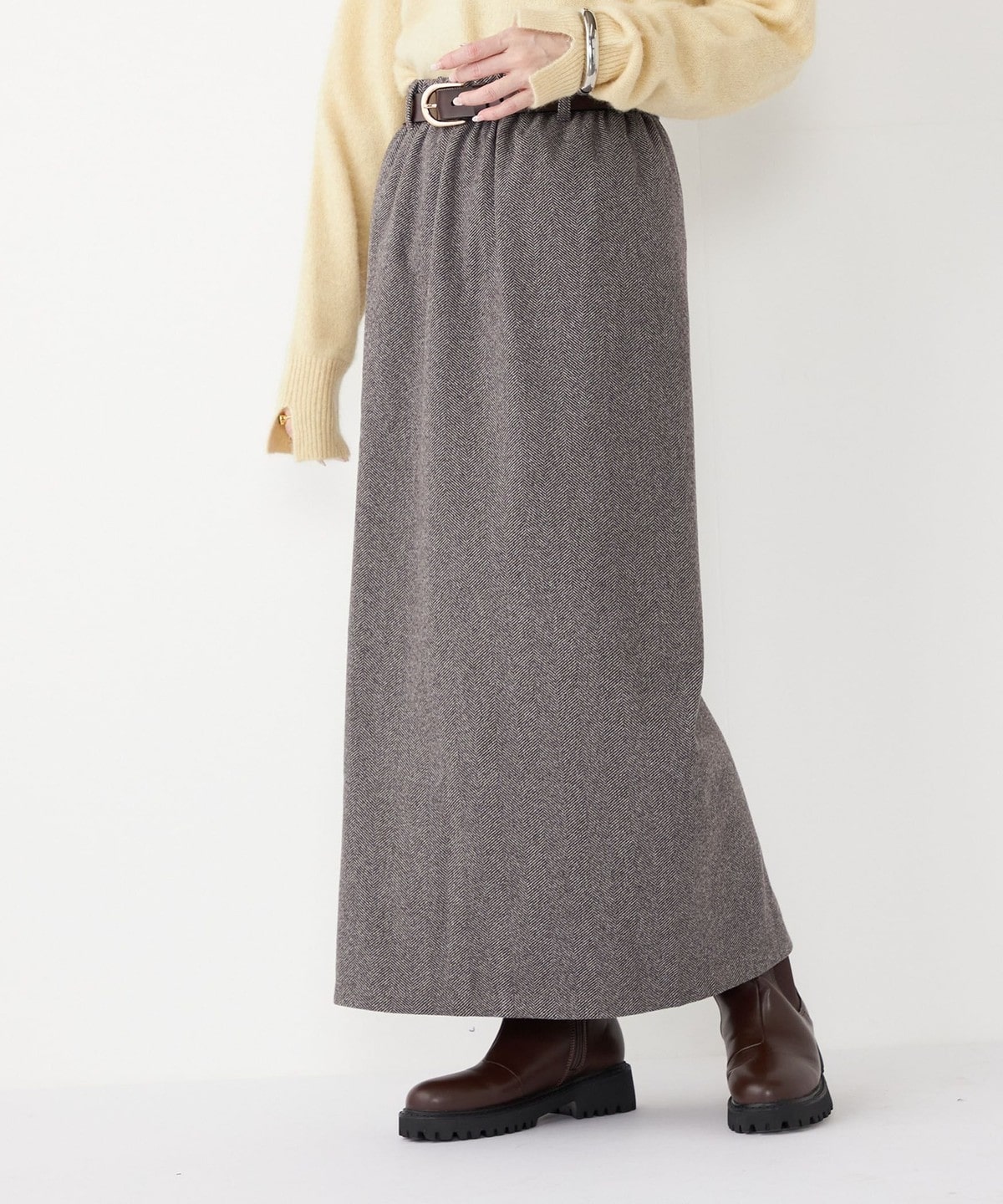 暖かみのある素材感と、ジャージー素材ならではの快適さを備えたタイトスカート。