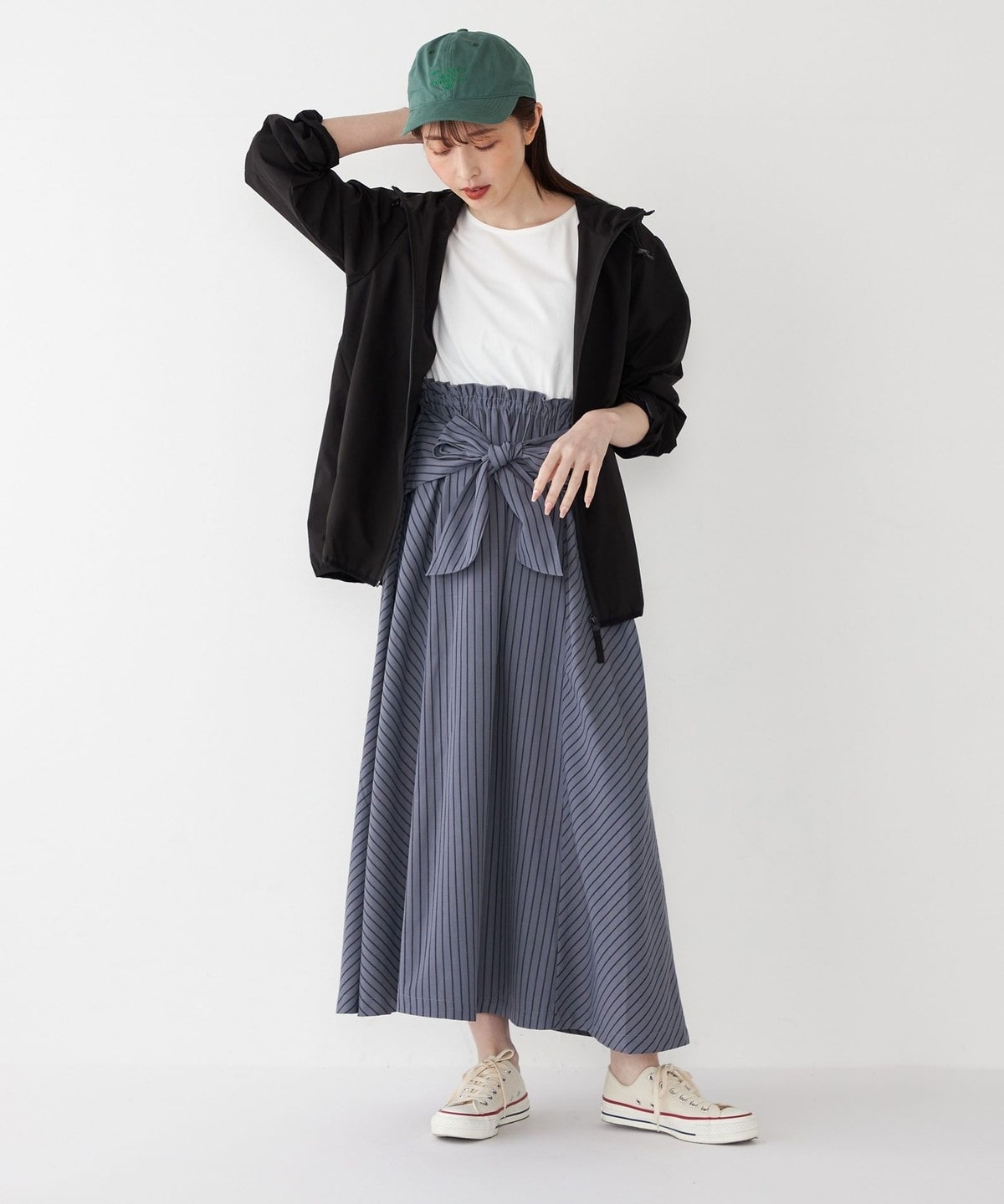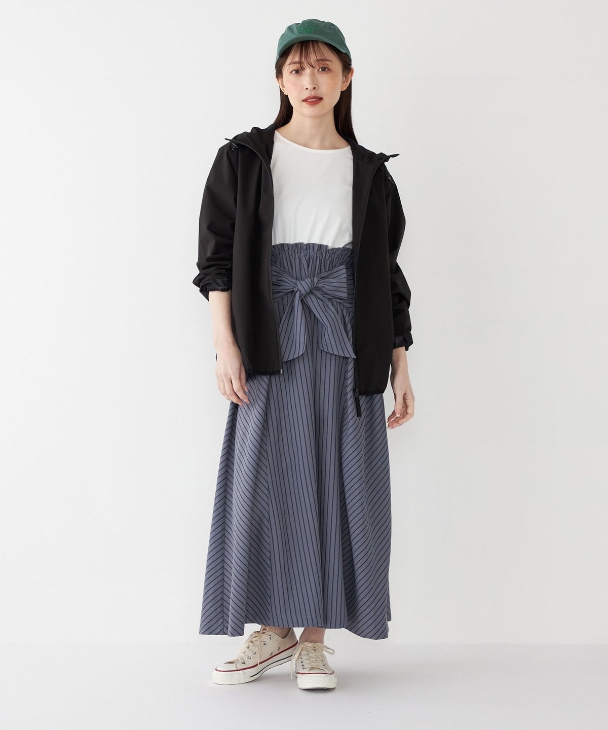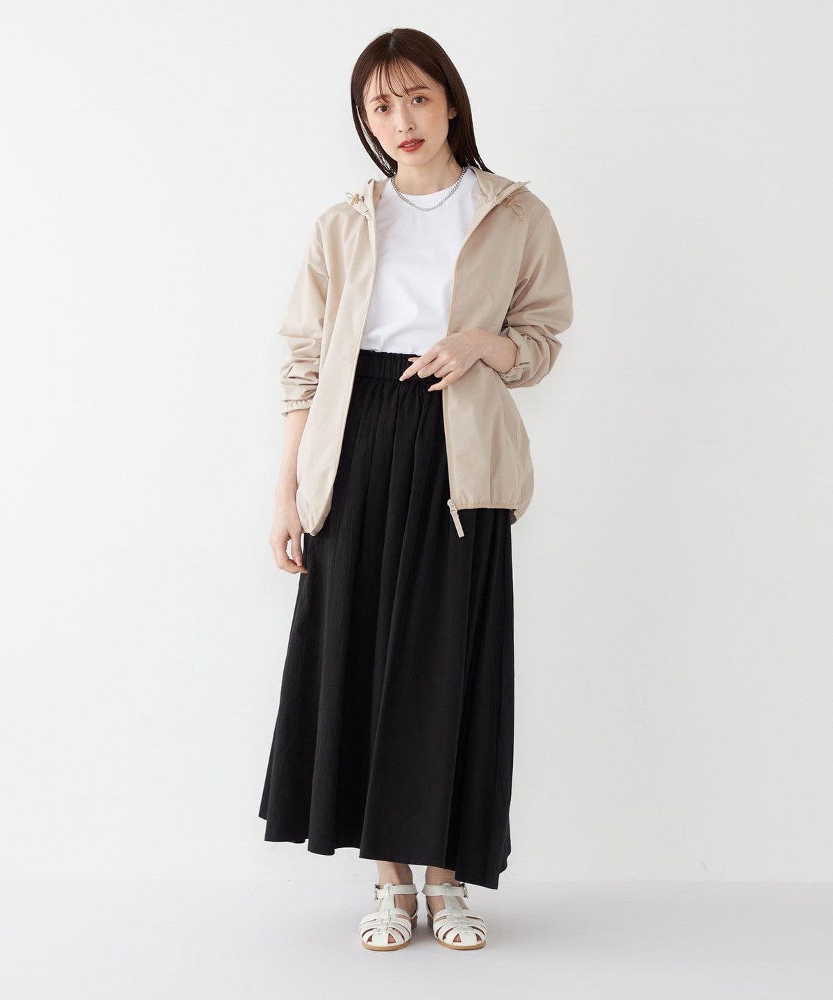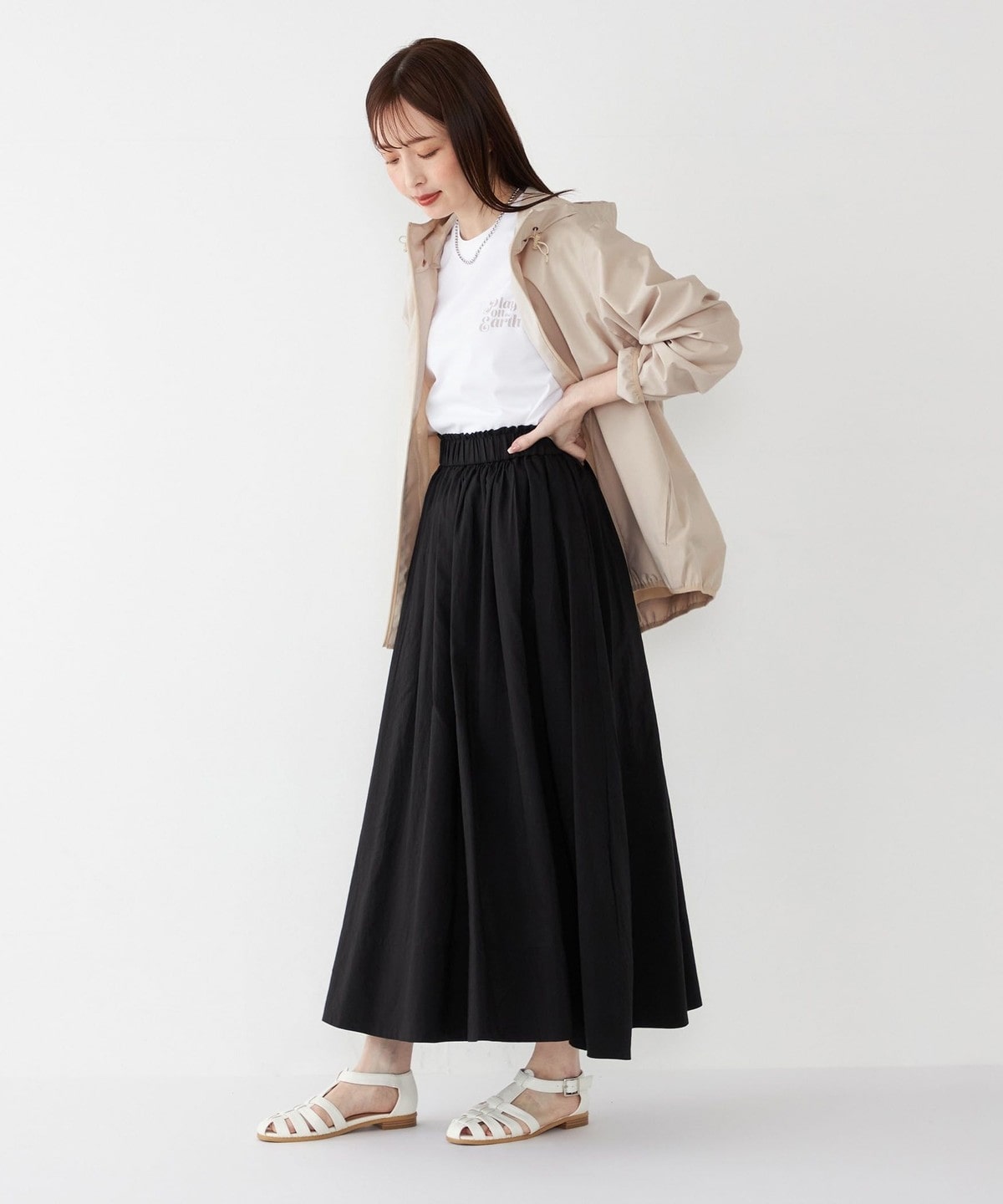 コクーンシルエットになるように後ろの裾部分にギャザーを入れ、女性らしさもプラスしています。