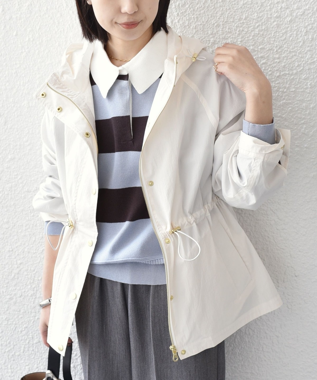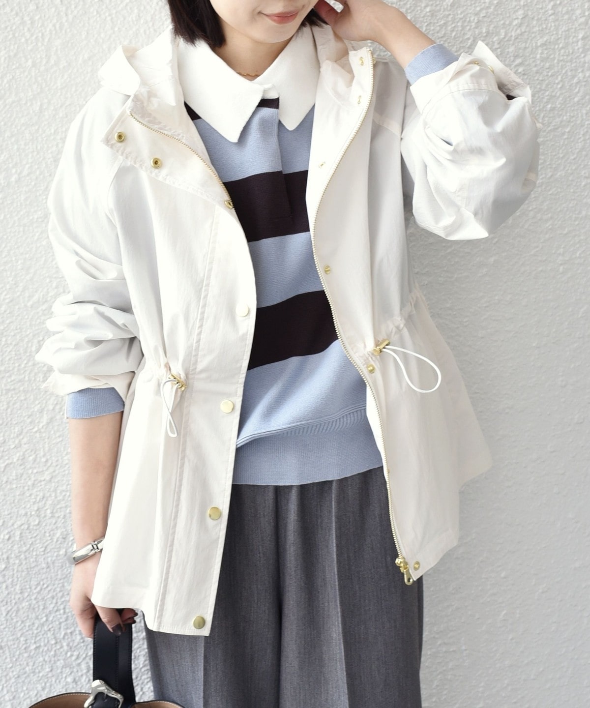 ゆったりとしたサイズ感と軽やかな着心地で、春のお出かけにぴったりの1枚。