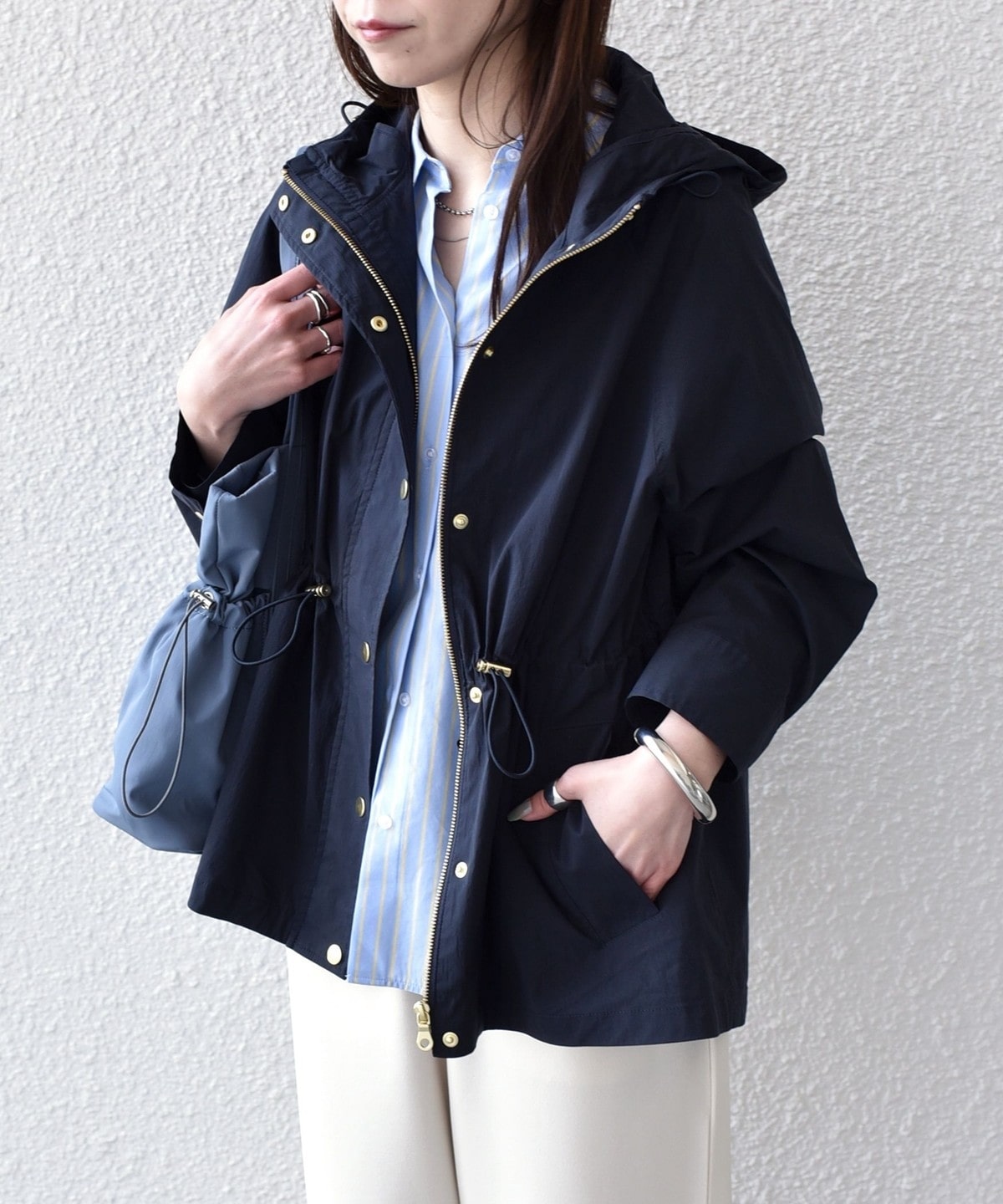 裏地を付けないことで軽やかな着心地が叶い、気温差のある季節に取り入れていただきやすいアウターです。