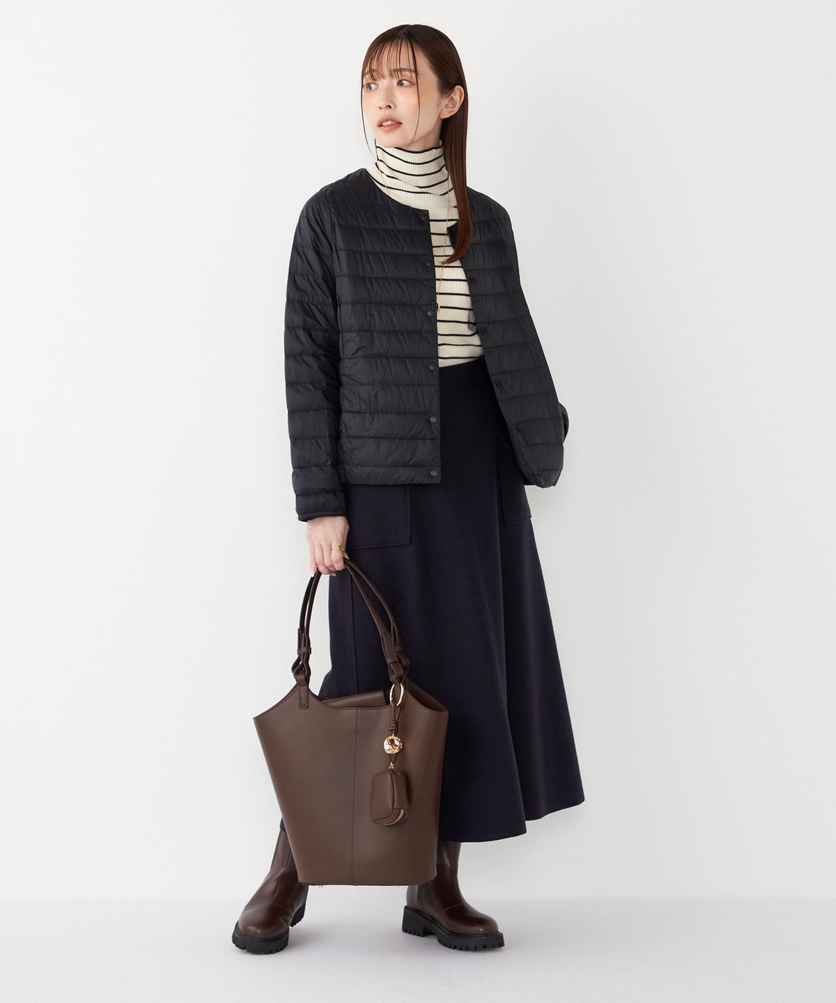 アウターと重ねても着ぶくれしにくく仕上げています。