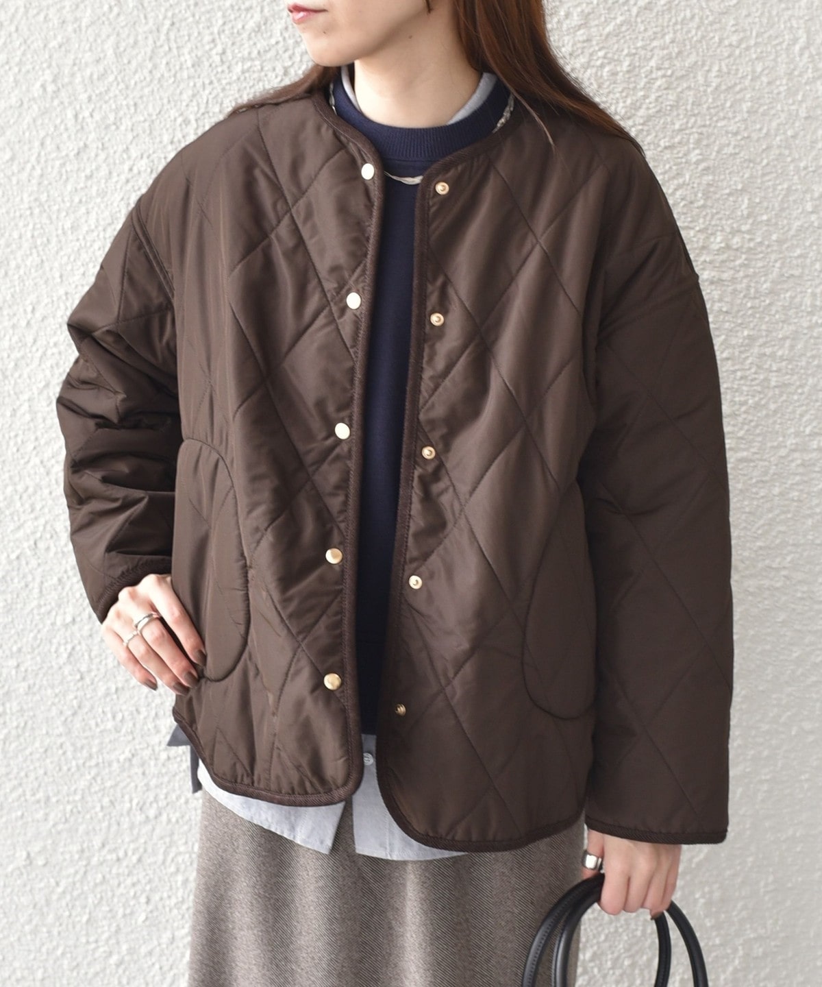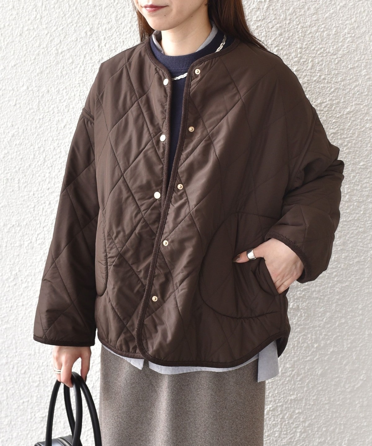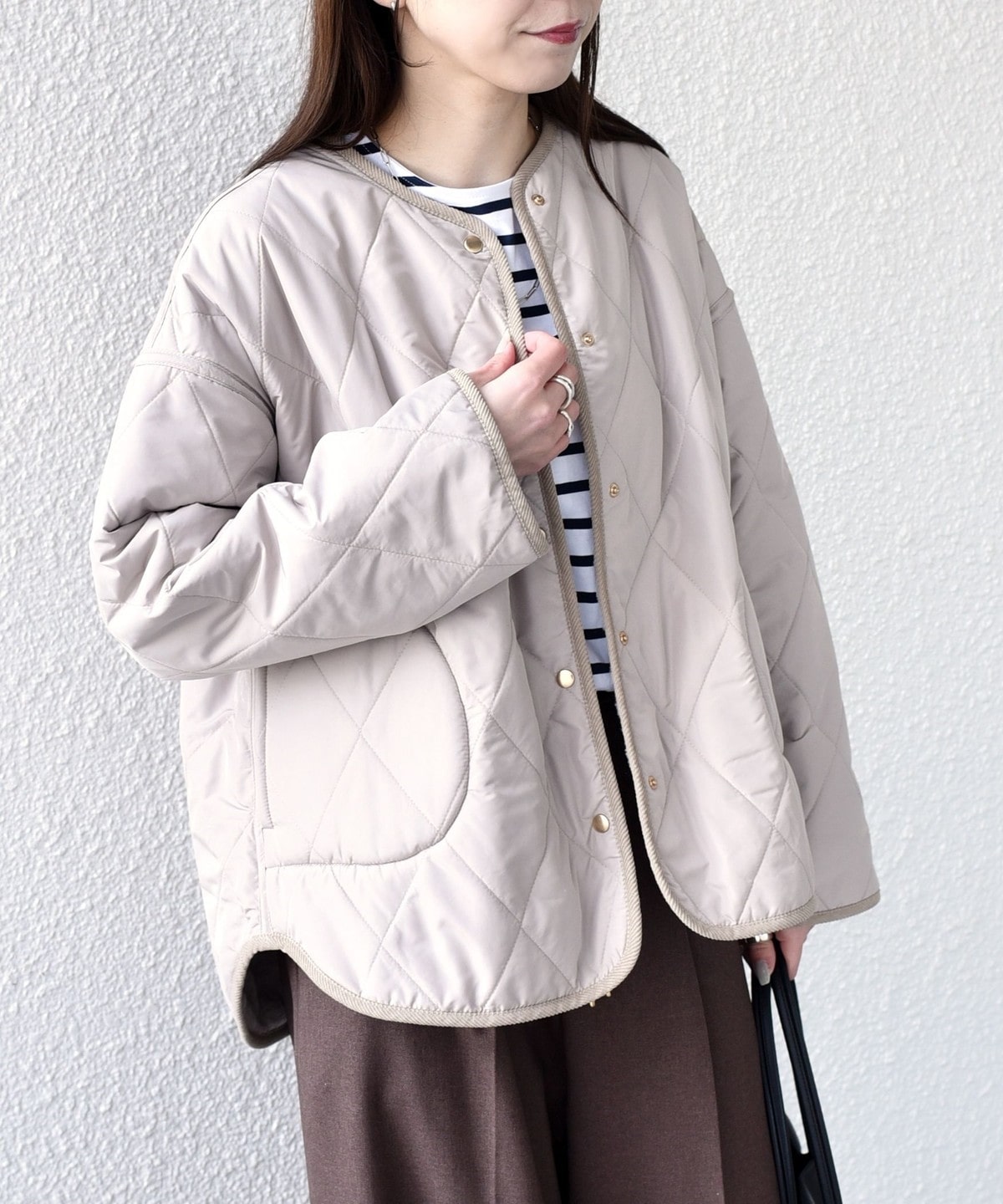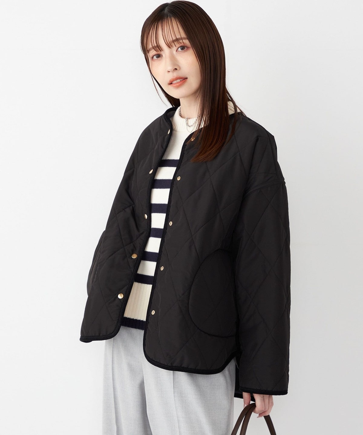 光沢感のある合繊面とフェイクファー面、表情の異なる2つの素材を楽しめるキルティングコート。
