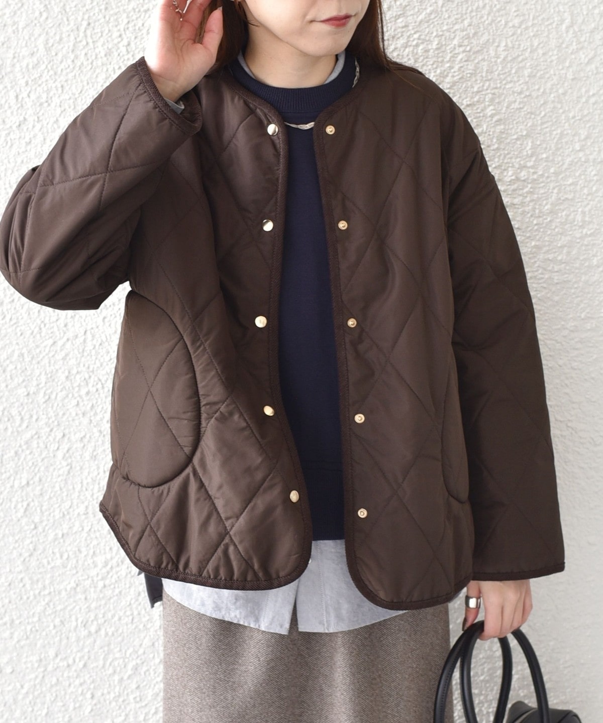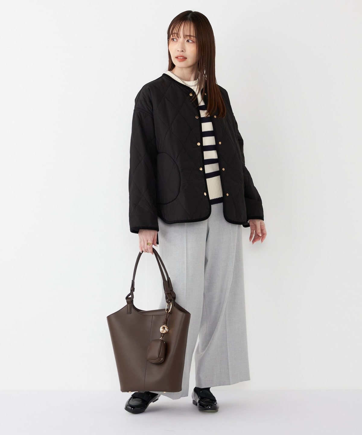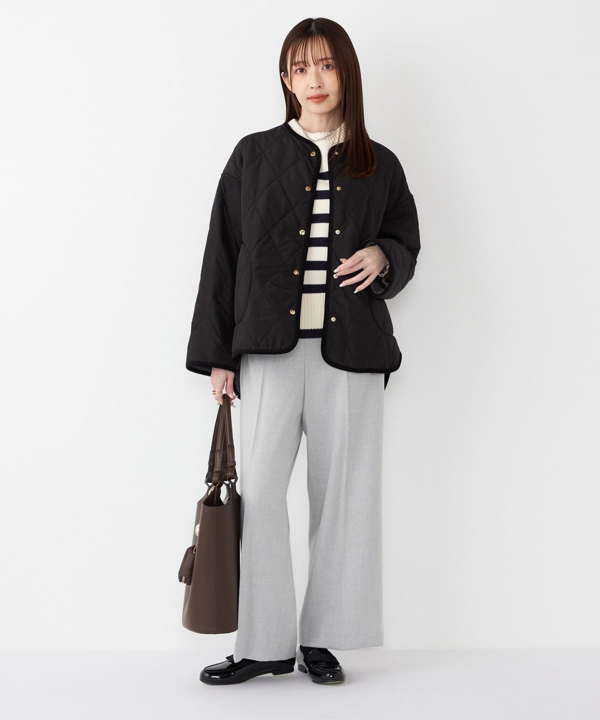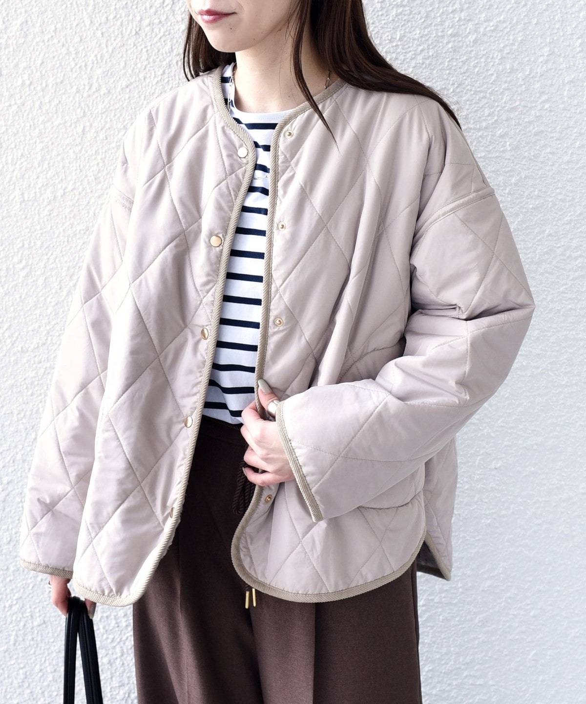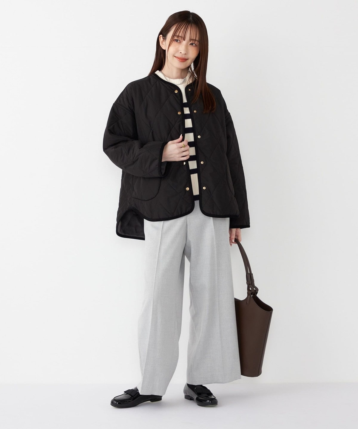 光沢感のある合繊面とフェイクファー面、表情の異なる2つの素材を楽しめるキルティングコート。