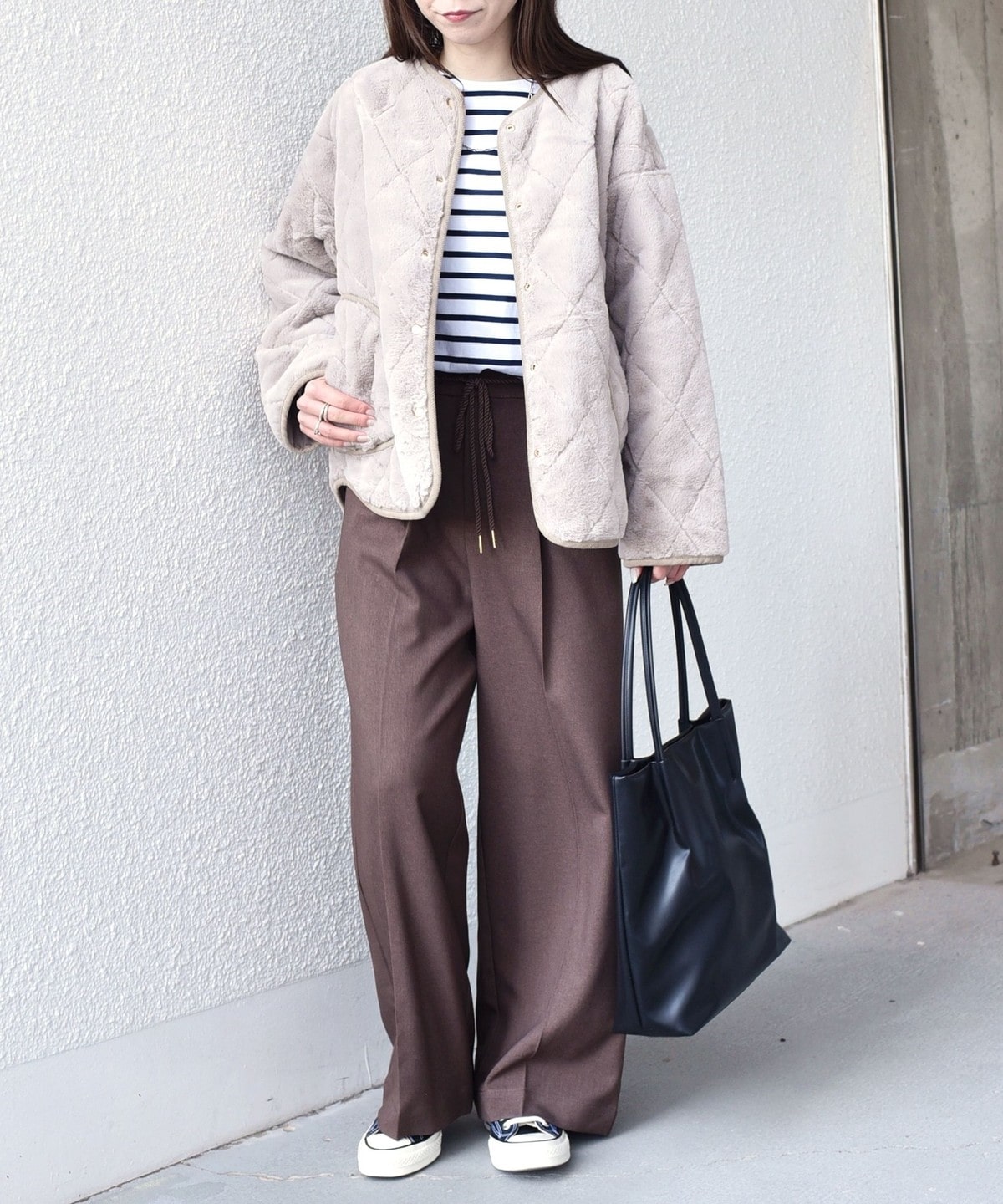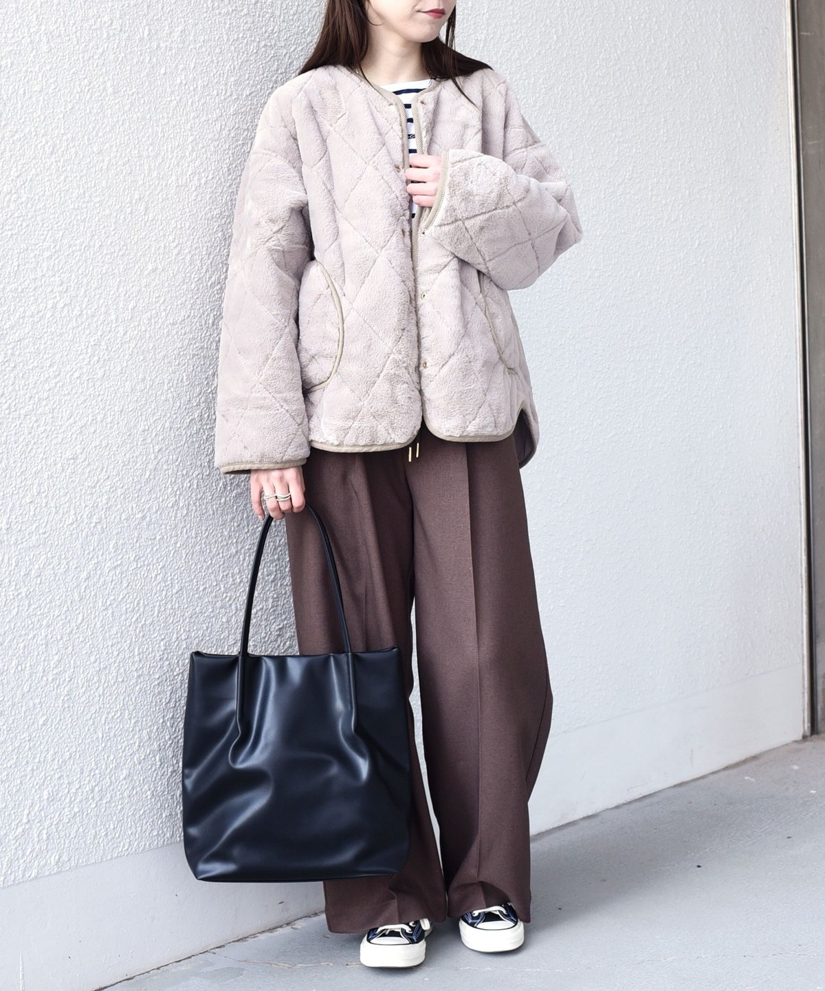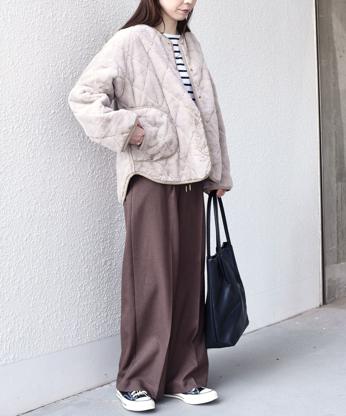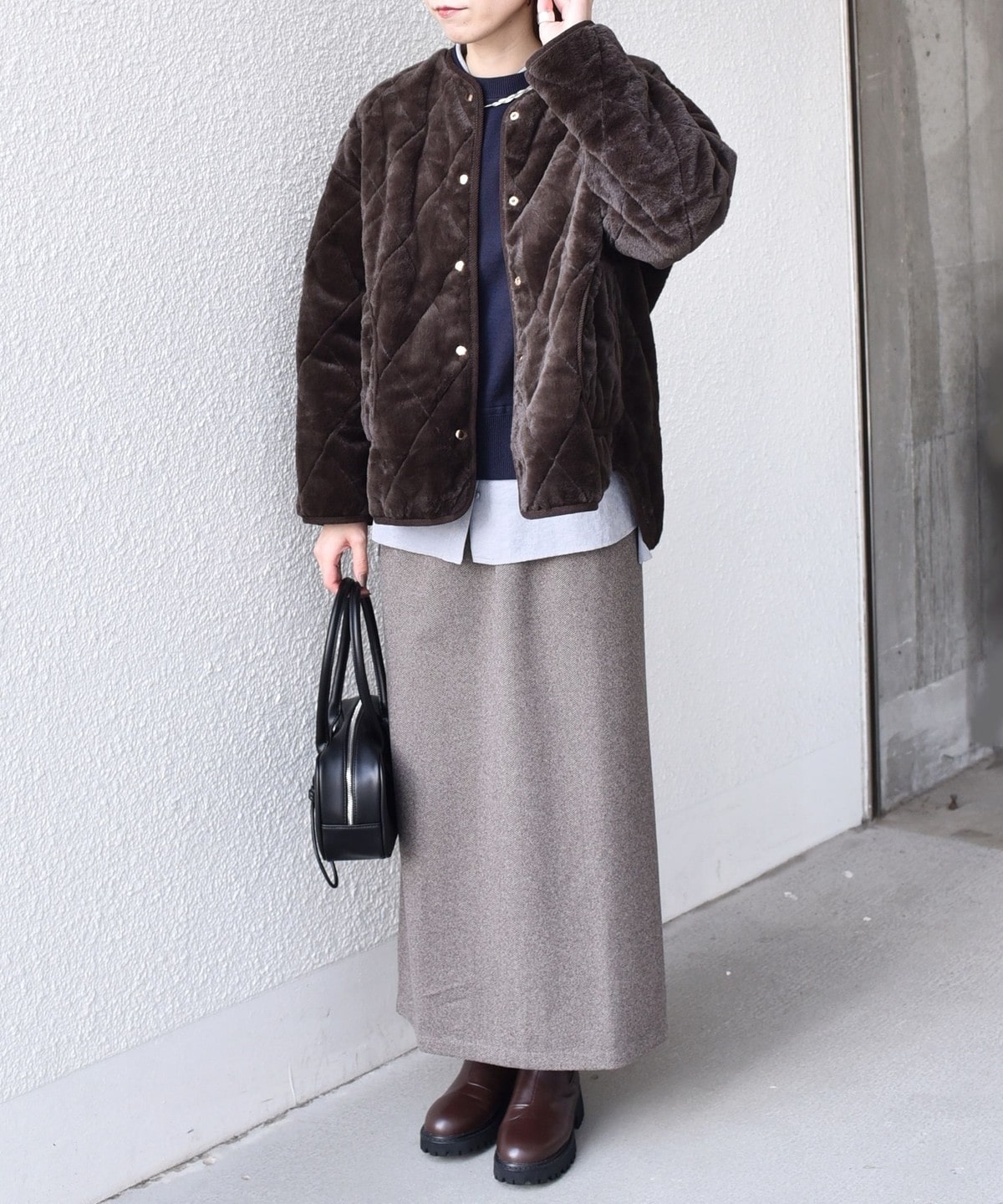 フェイクファー面は華やかな雰囲気もあり、スカートやワンピースなどと合わせた女性らしい着こなしもおすすめです。