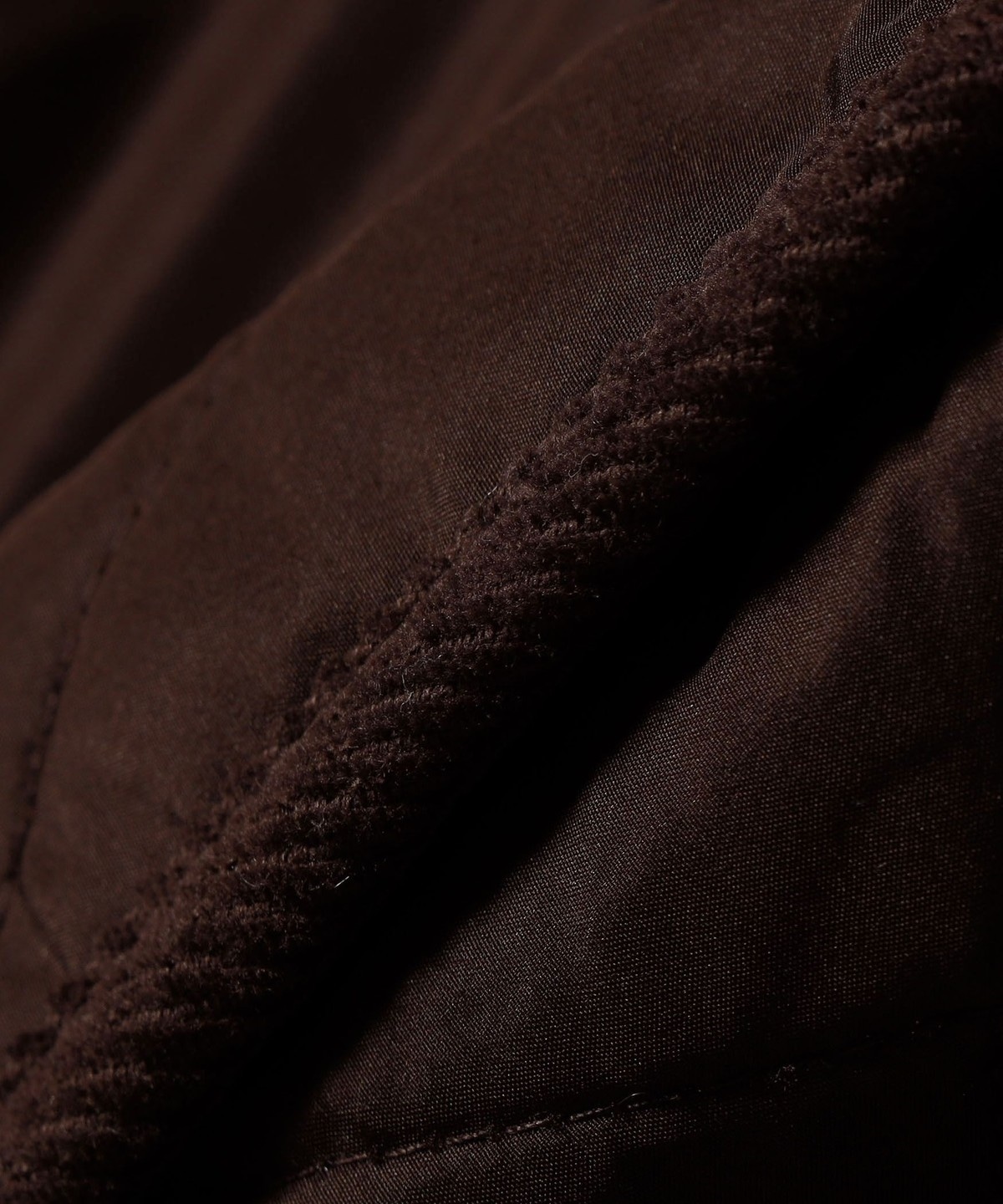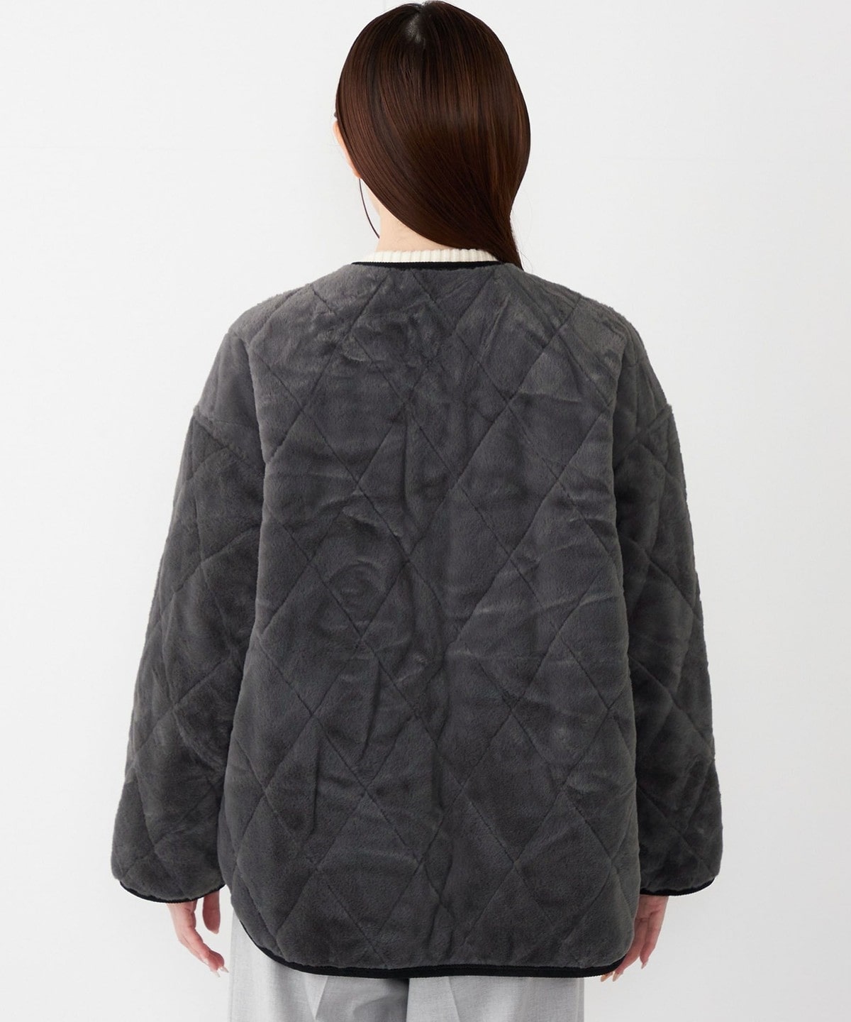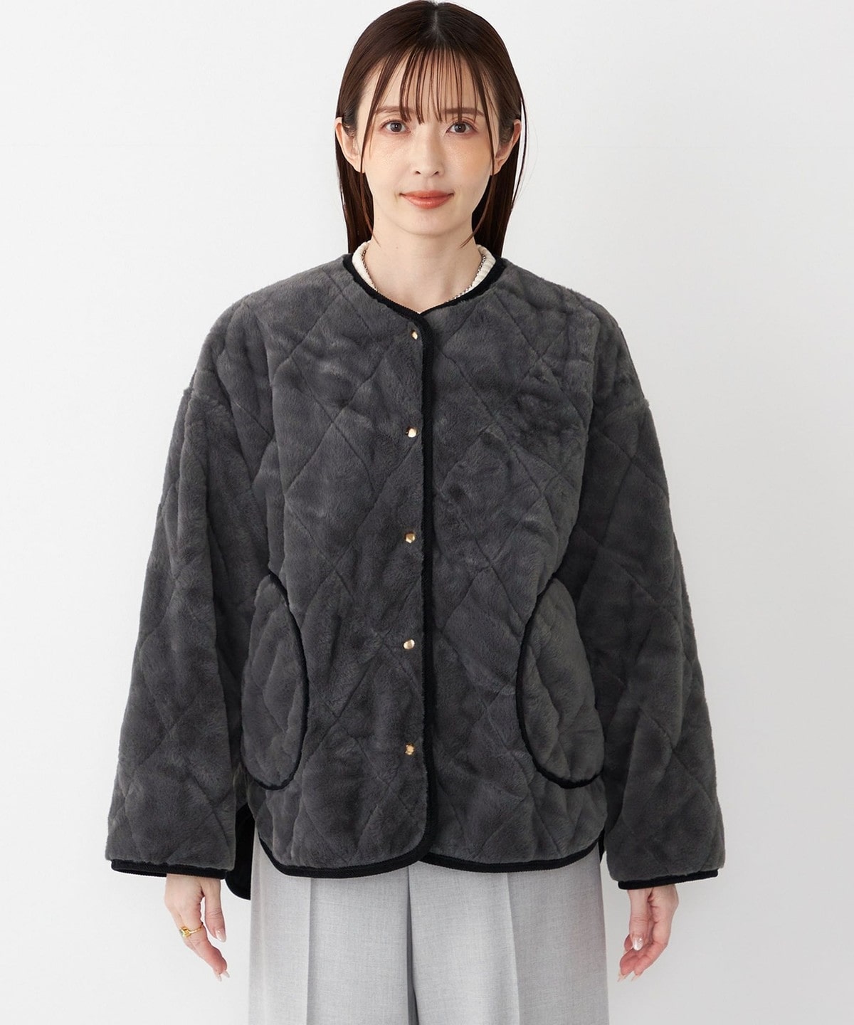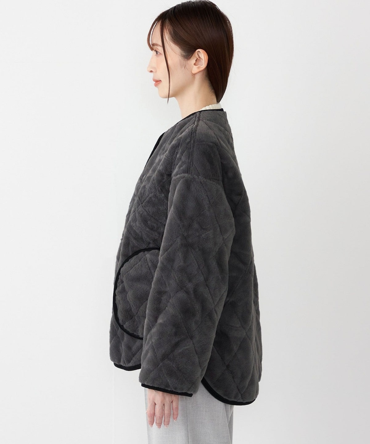 光沢感のある合繊面とフェイクファー面、表情の異なる2つの素材を楽しめるキルティングコート。