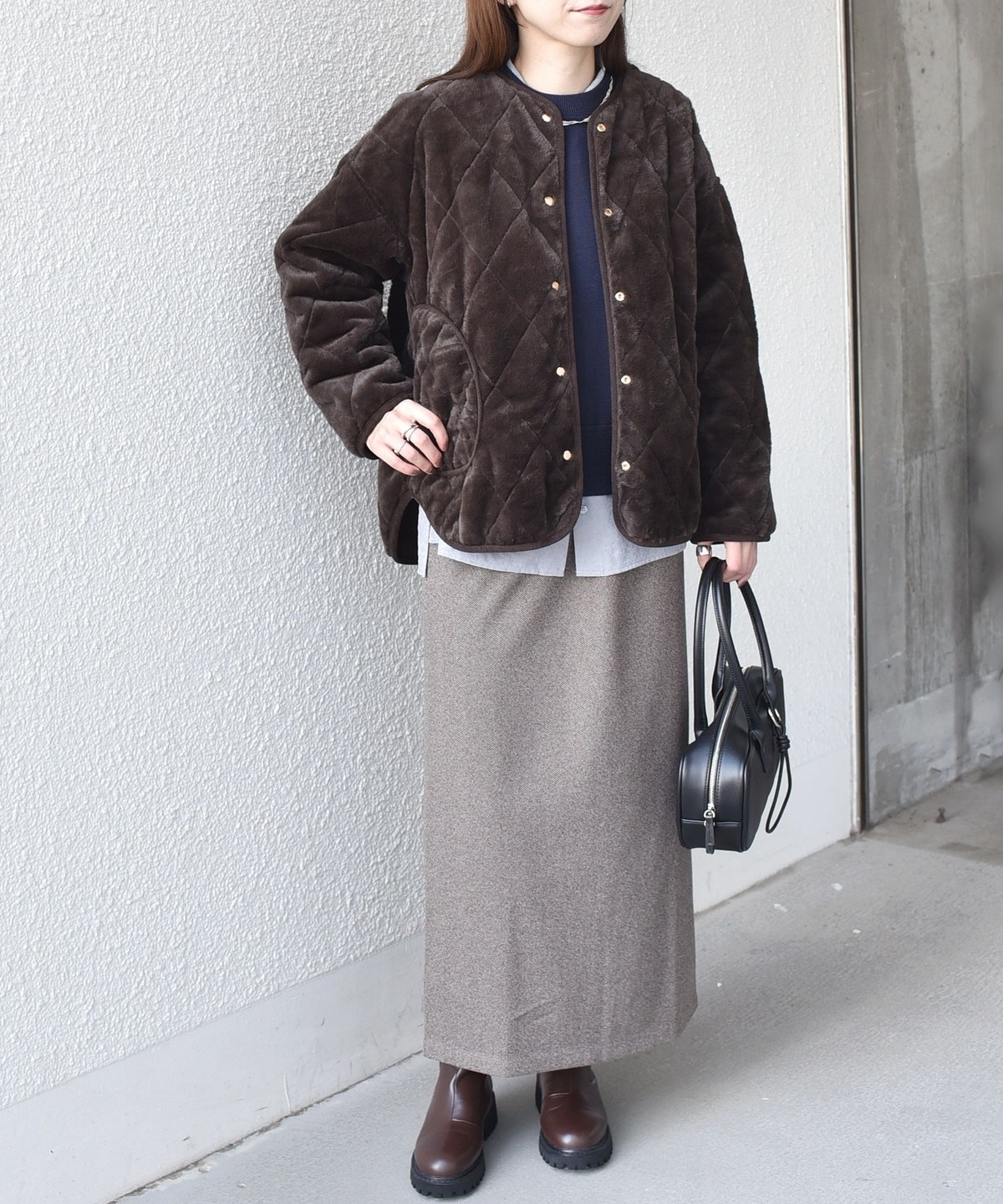 フェイクファー面は華やかな雰囲気もあり、スカートやワンピースなどと合わせた女性らしい着こなしもおすすめです。