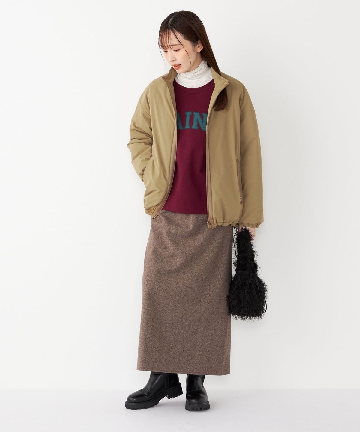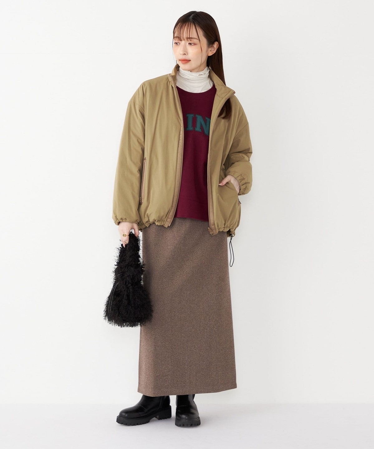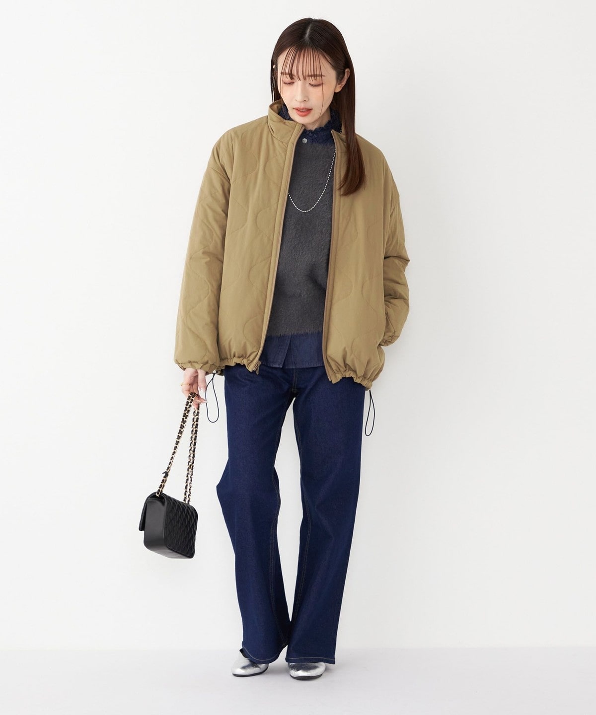 ショート丈でボトムを選ばず、ワイドパンツやスカートなどボリュームのあるアイテムとも好相性。
