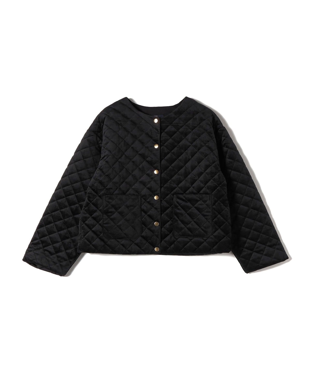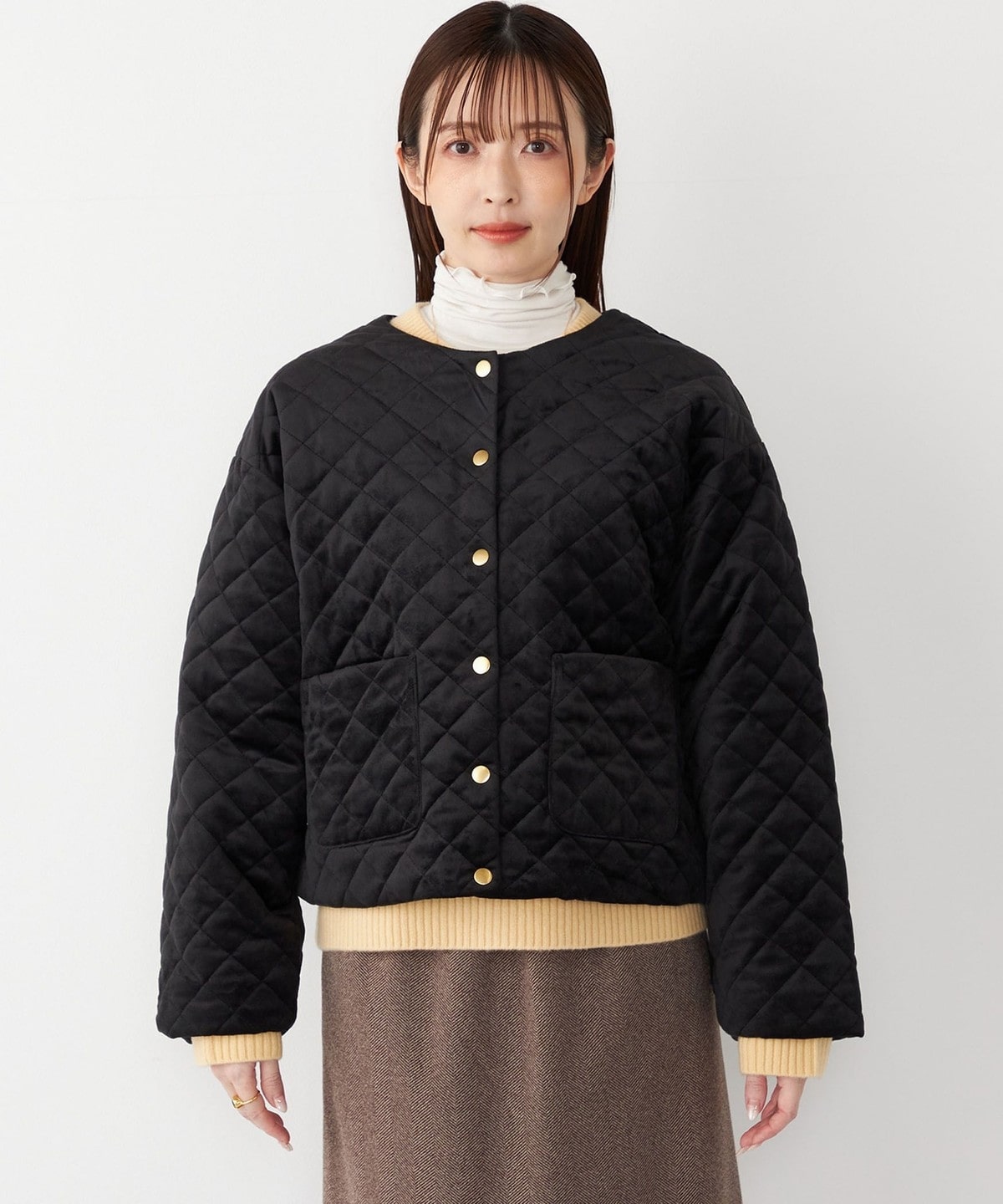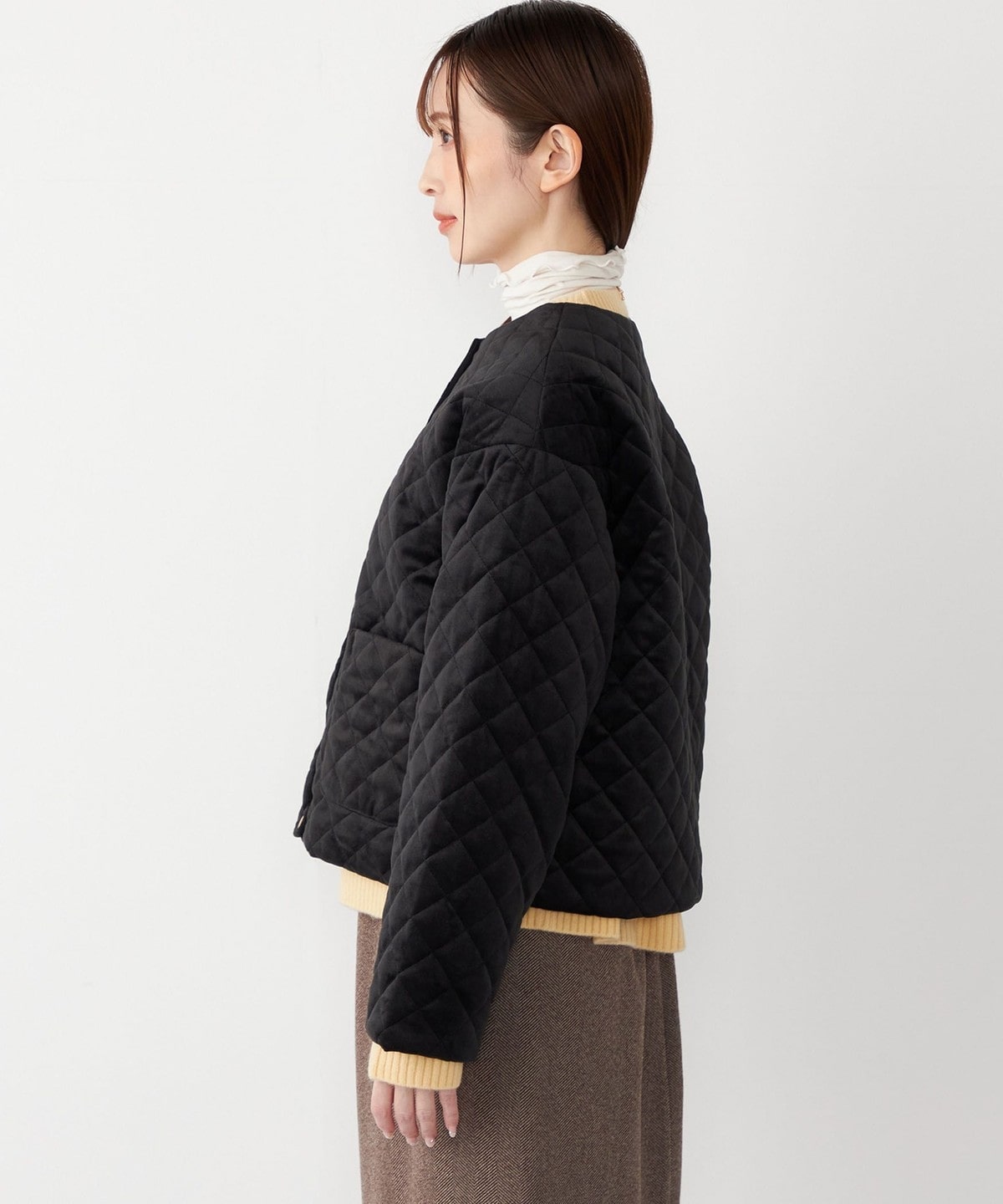 SHIPS Colors:ポリエステルベロア ノーカラー キルティング ジャケット
