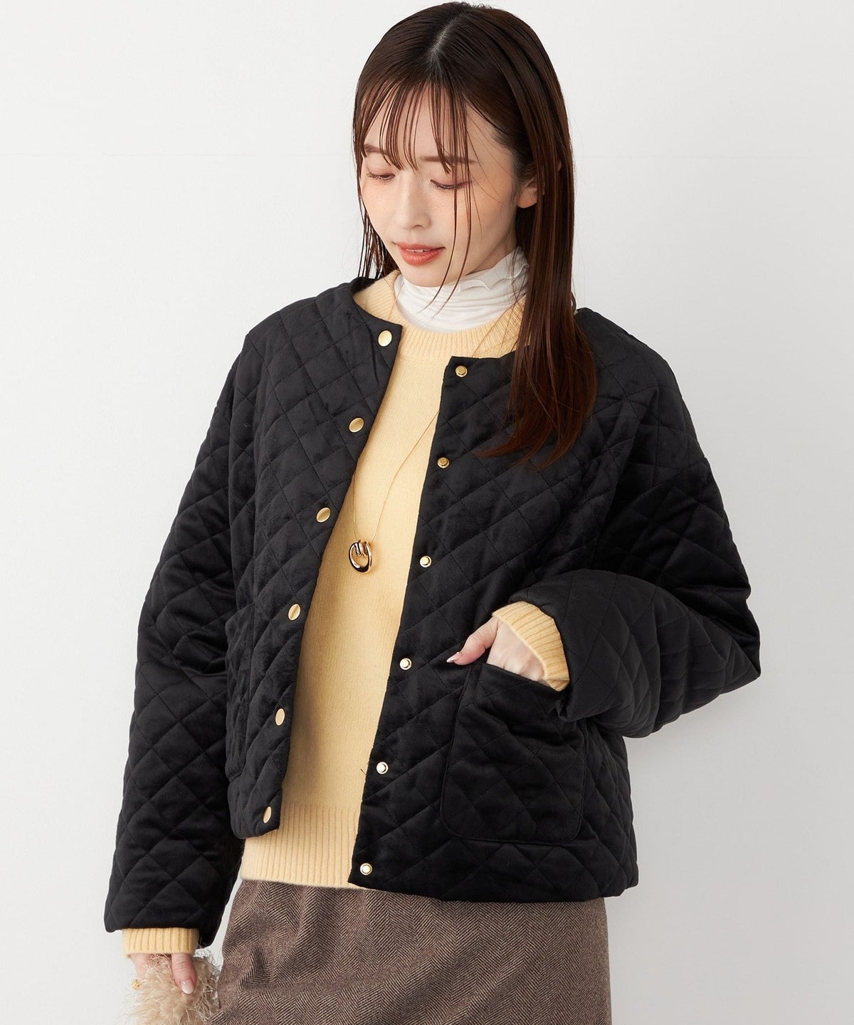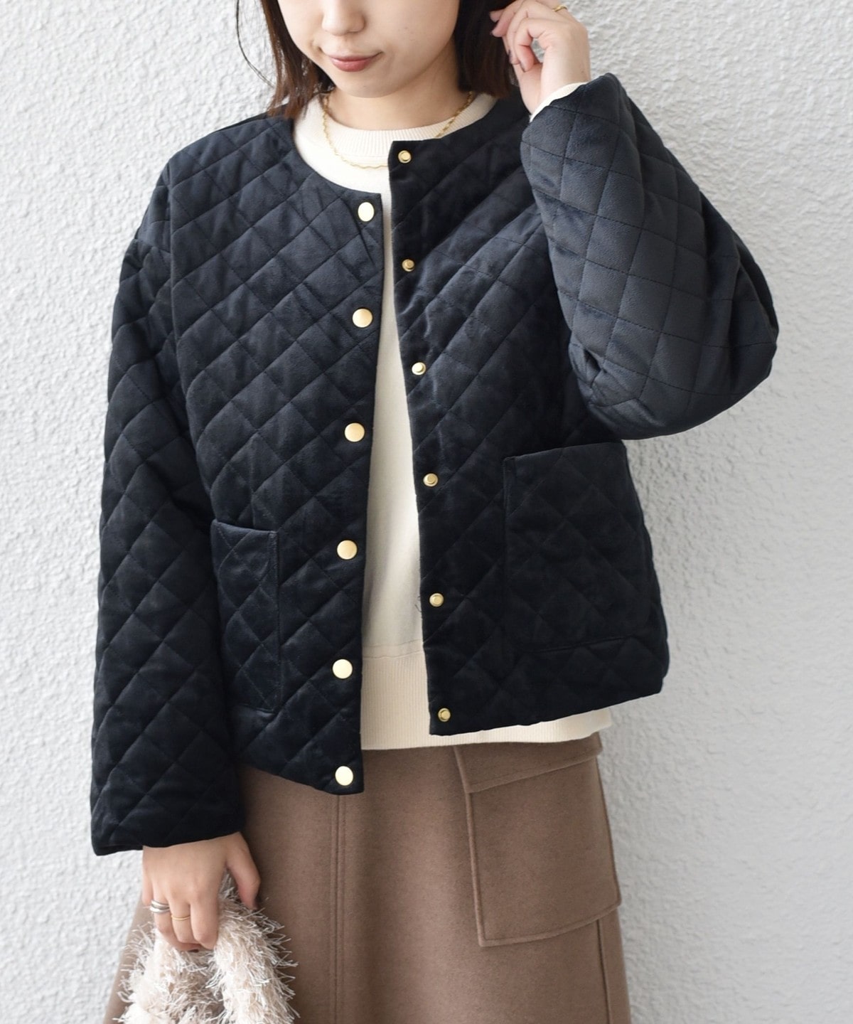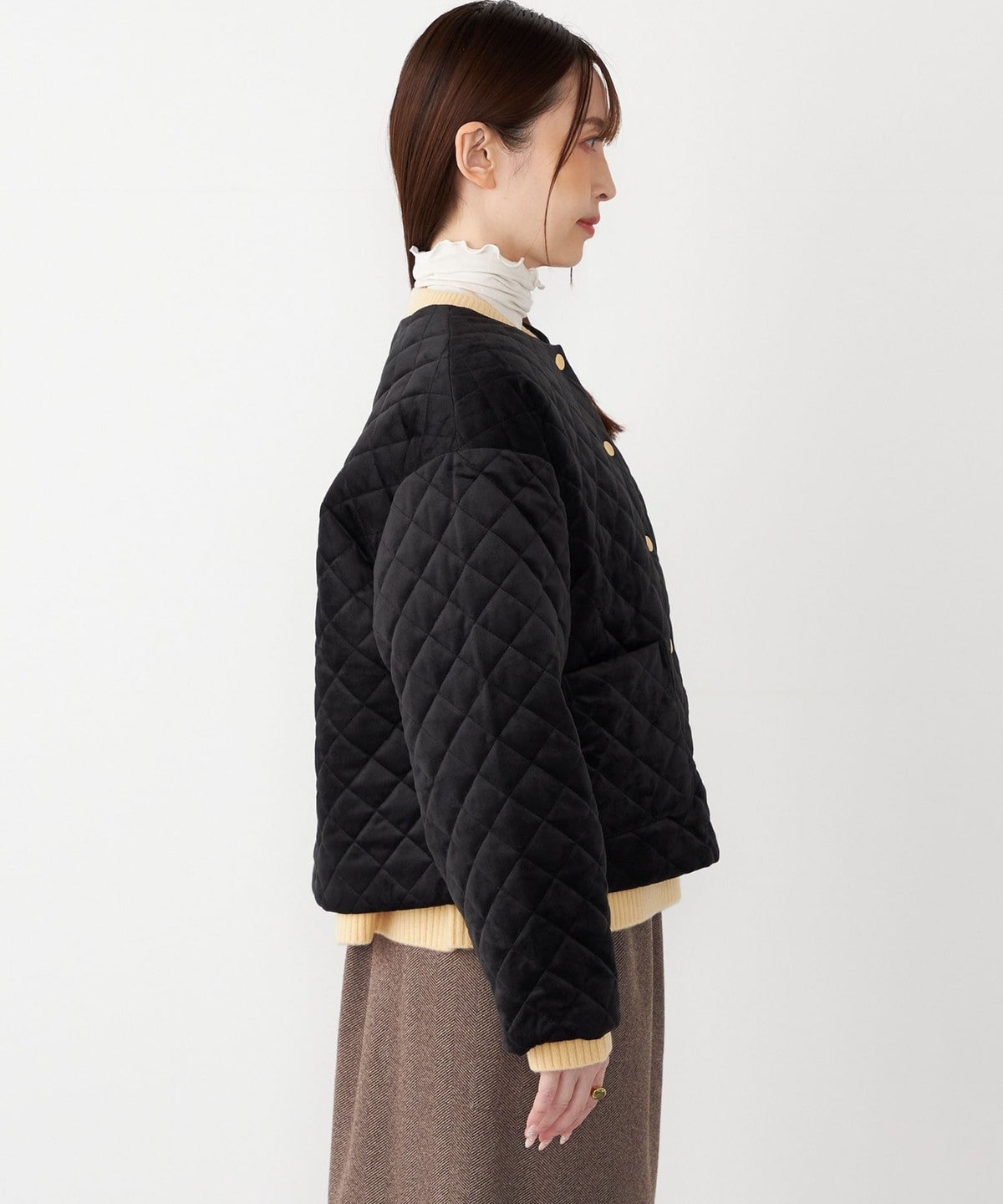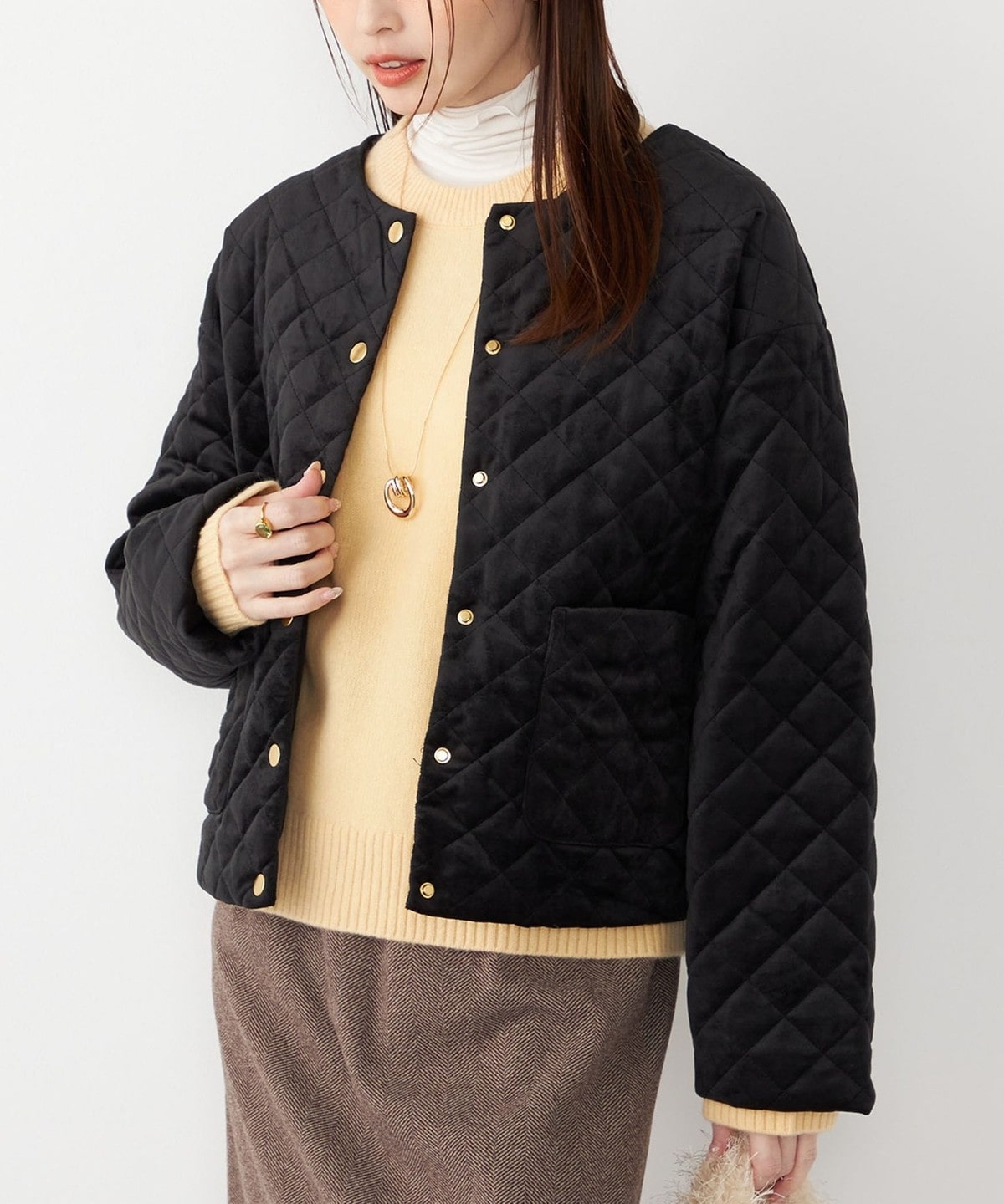 上品な大人の雰囲気を引き立てる、ベロアキルティングジャケット。