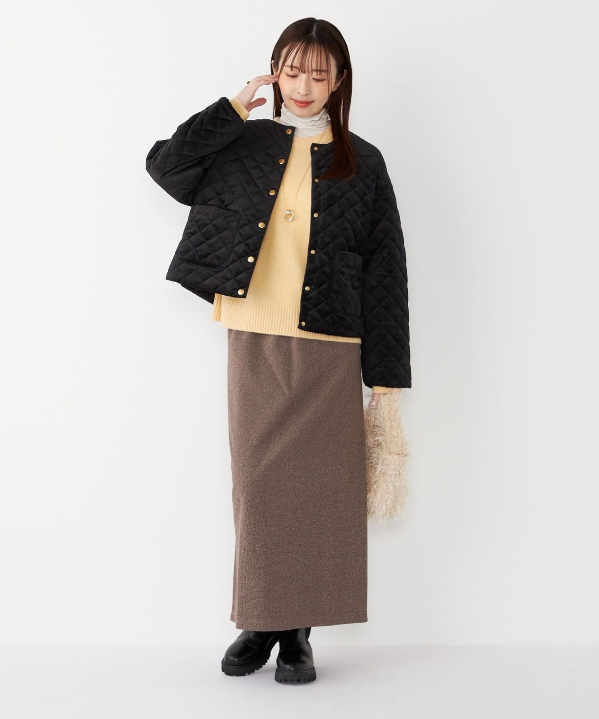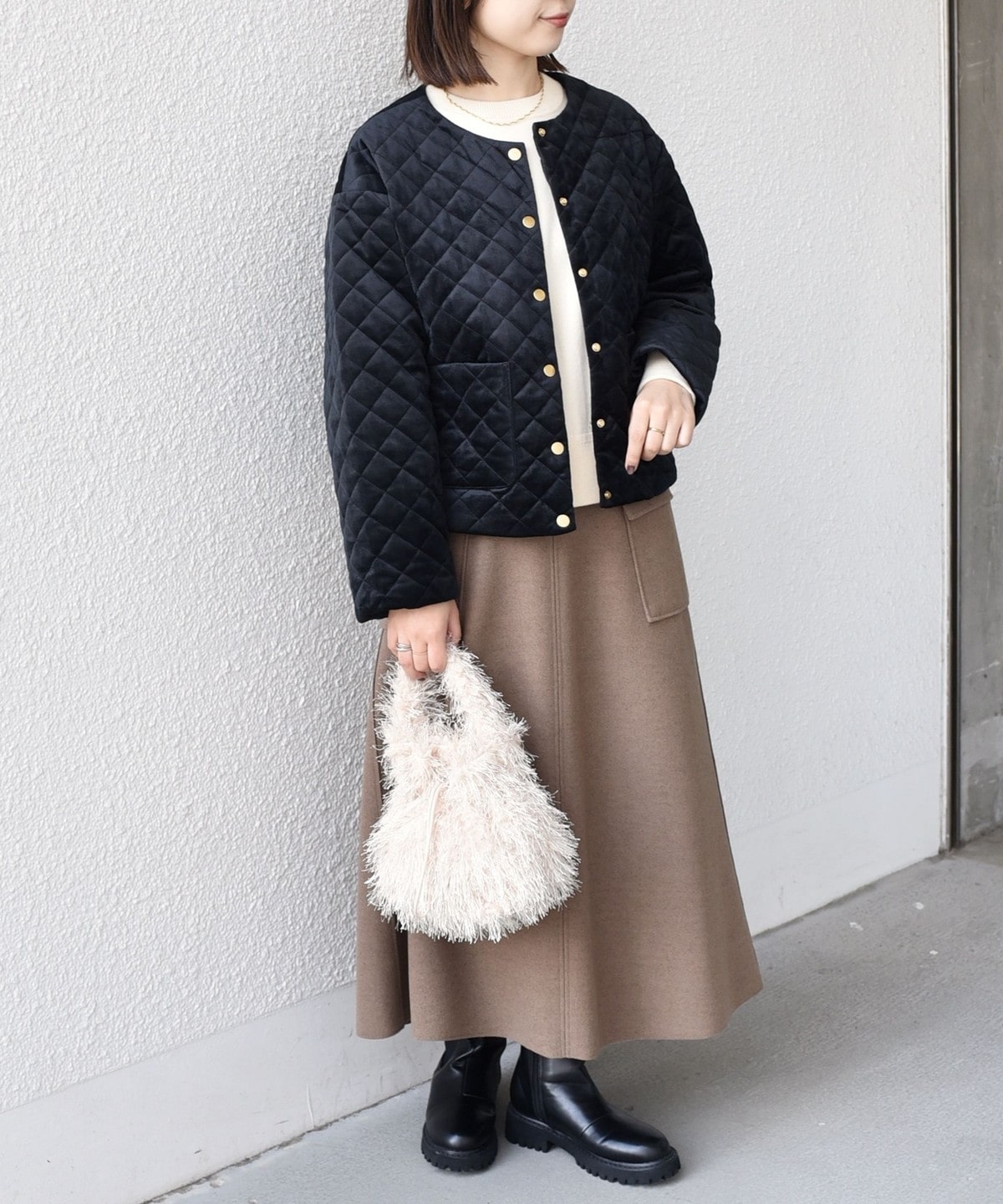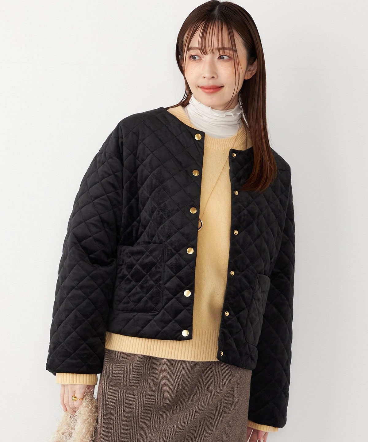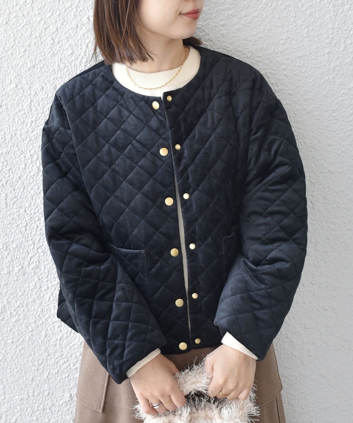 上品な大人の雰囲気を引き立てる、ベロアキルティングジャケット。
