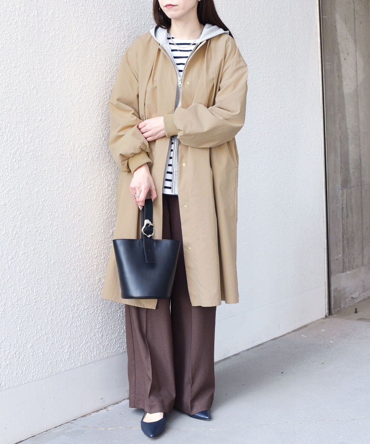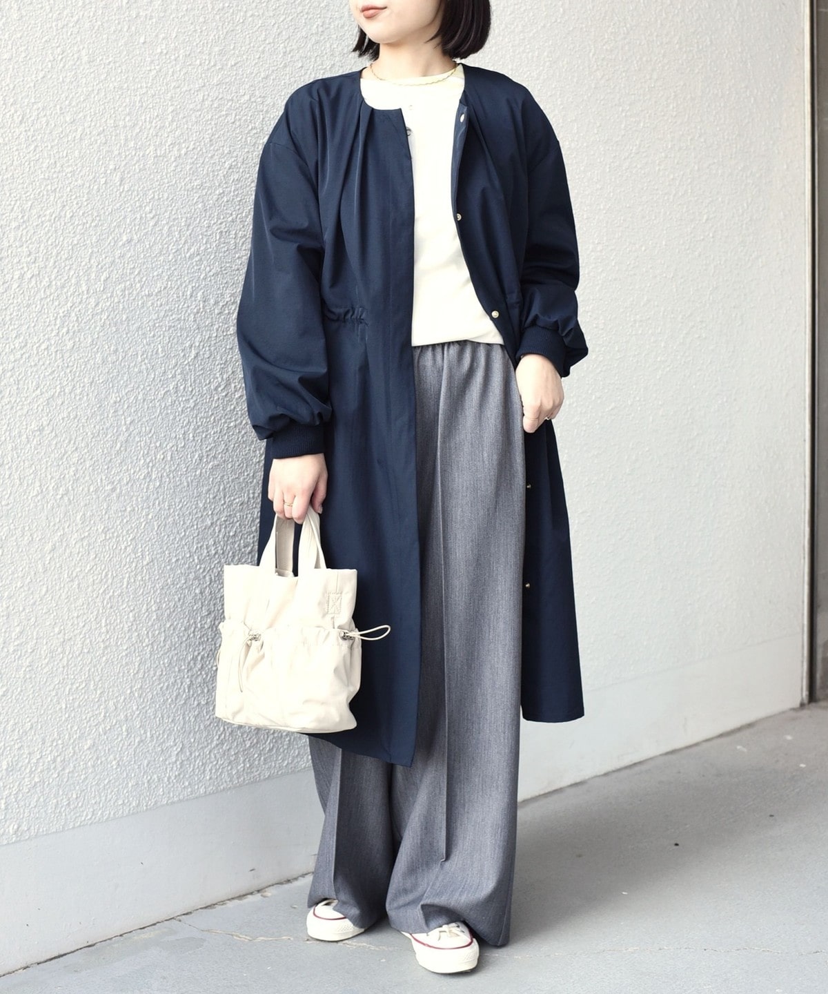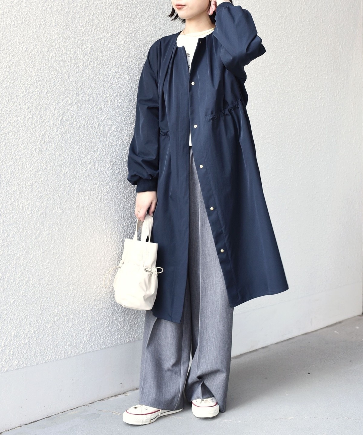 厚手すぎず、春のお出かけに重宝する一枚です。