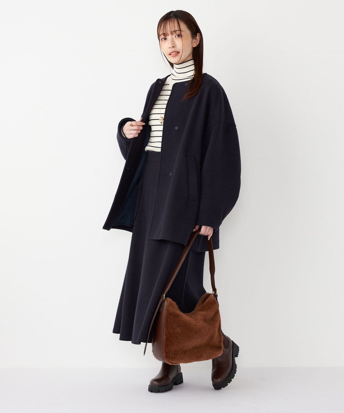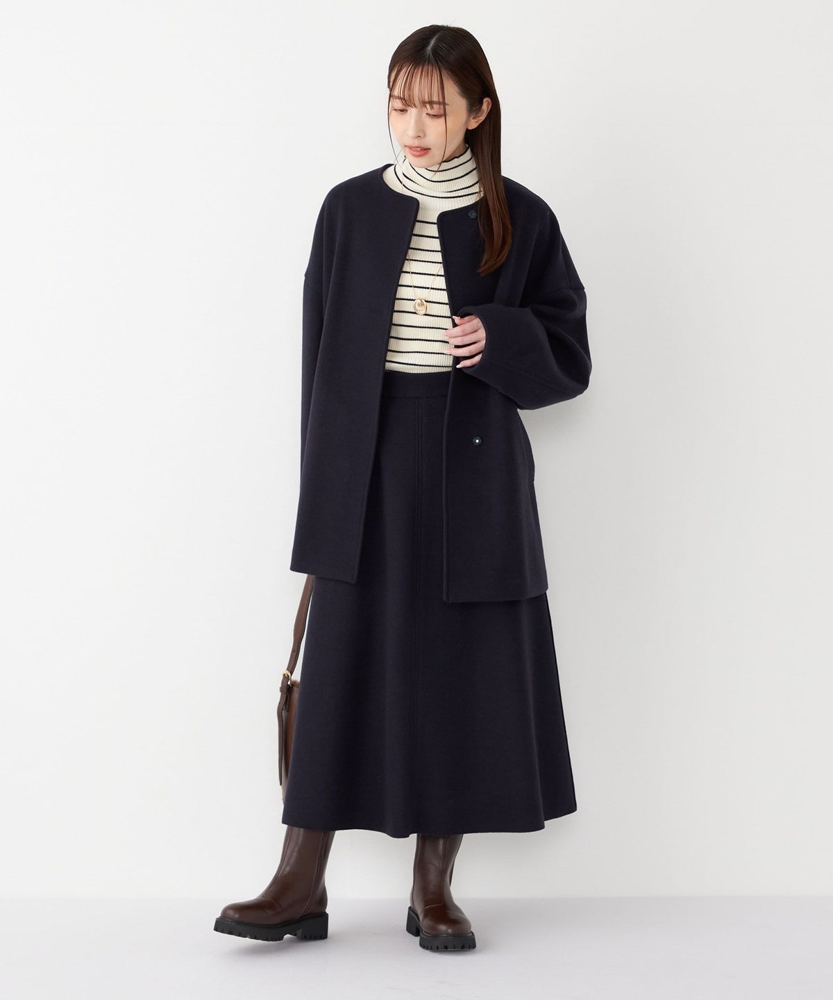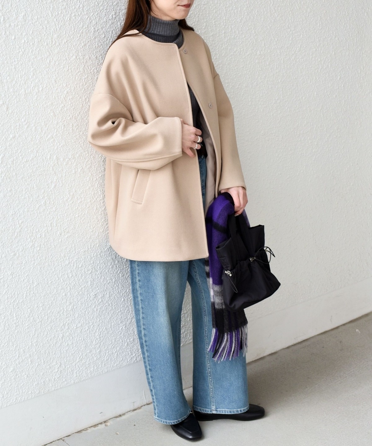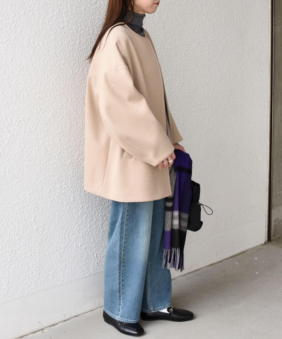 ご好評のジャージーメルトンシリーズに、上品なノーカラーコート