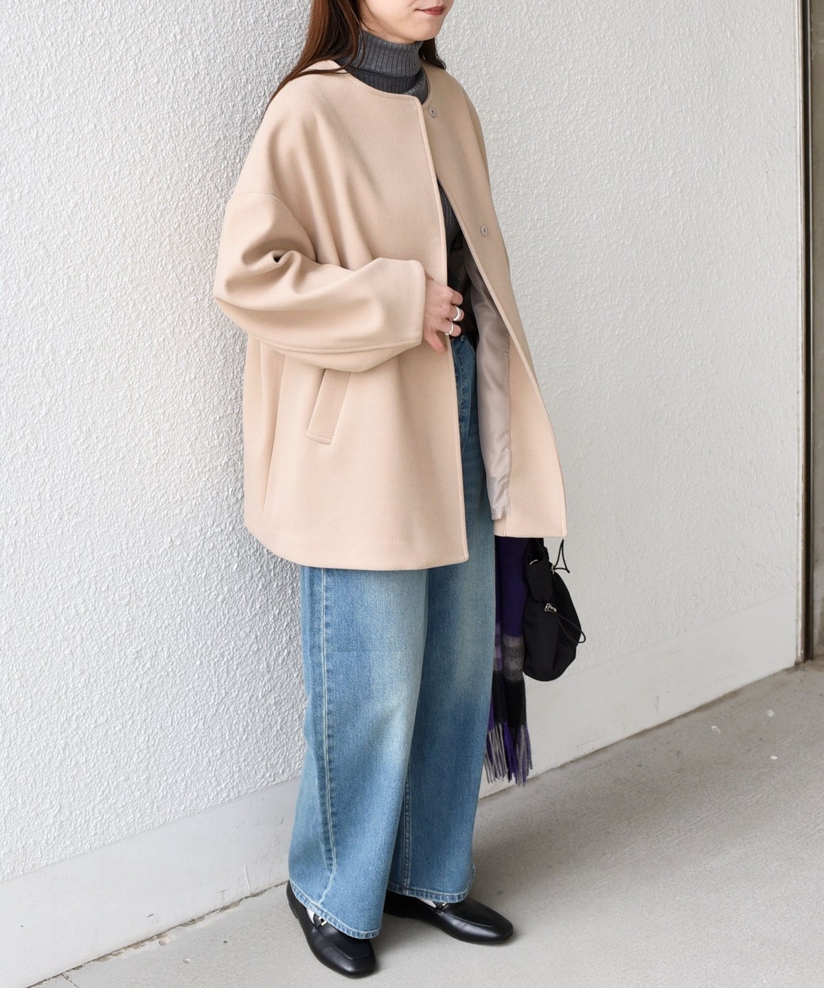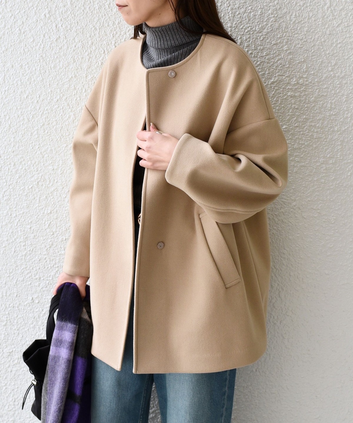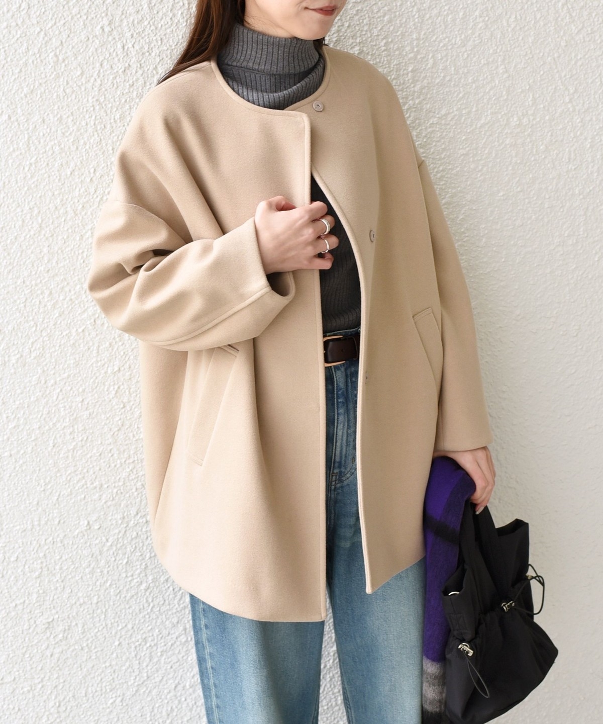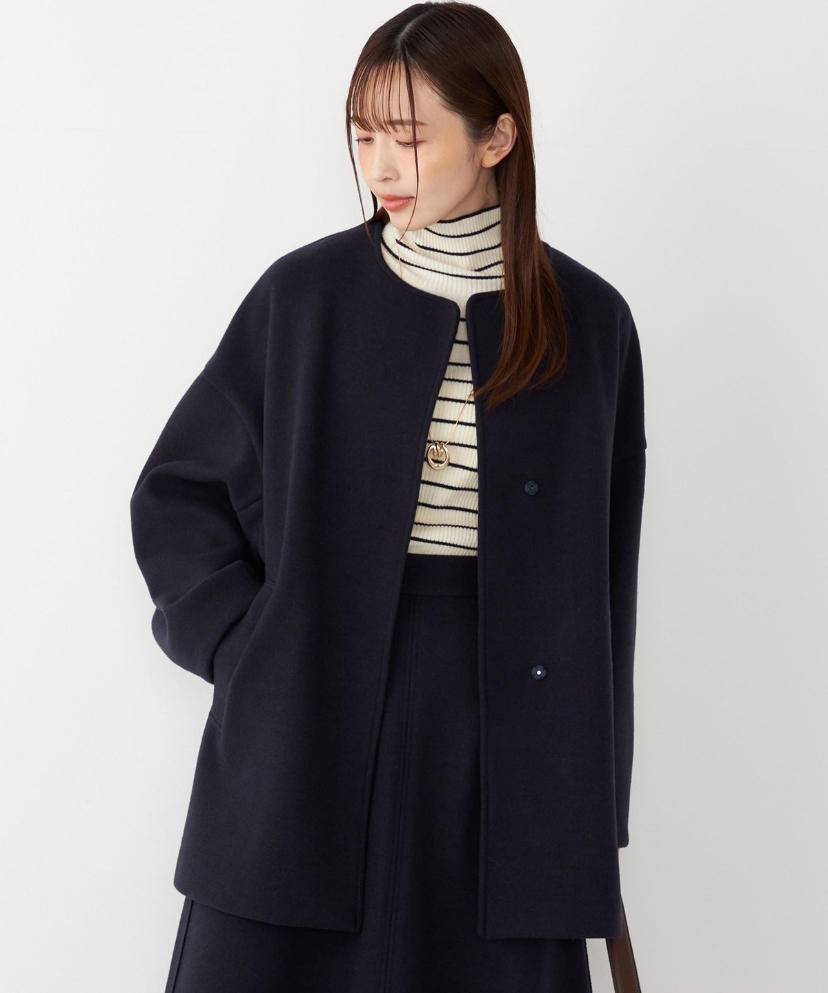 ご好評のジャージーメルトンシリーズに、上品なノーカラーコート